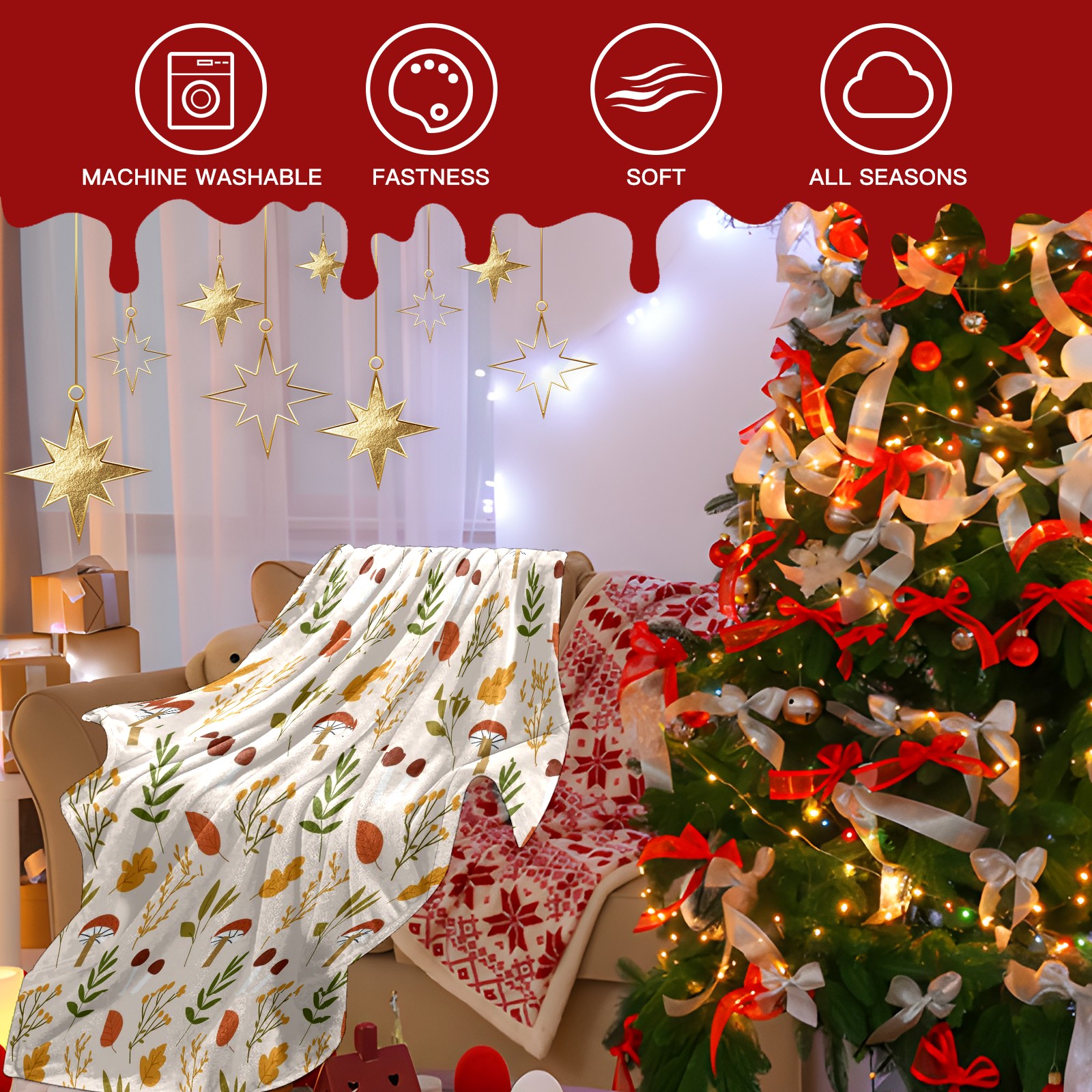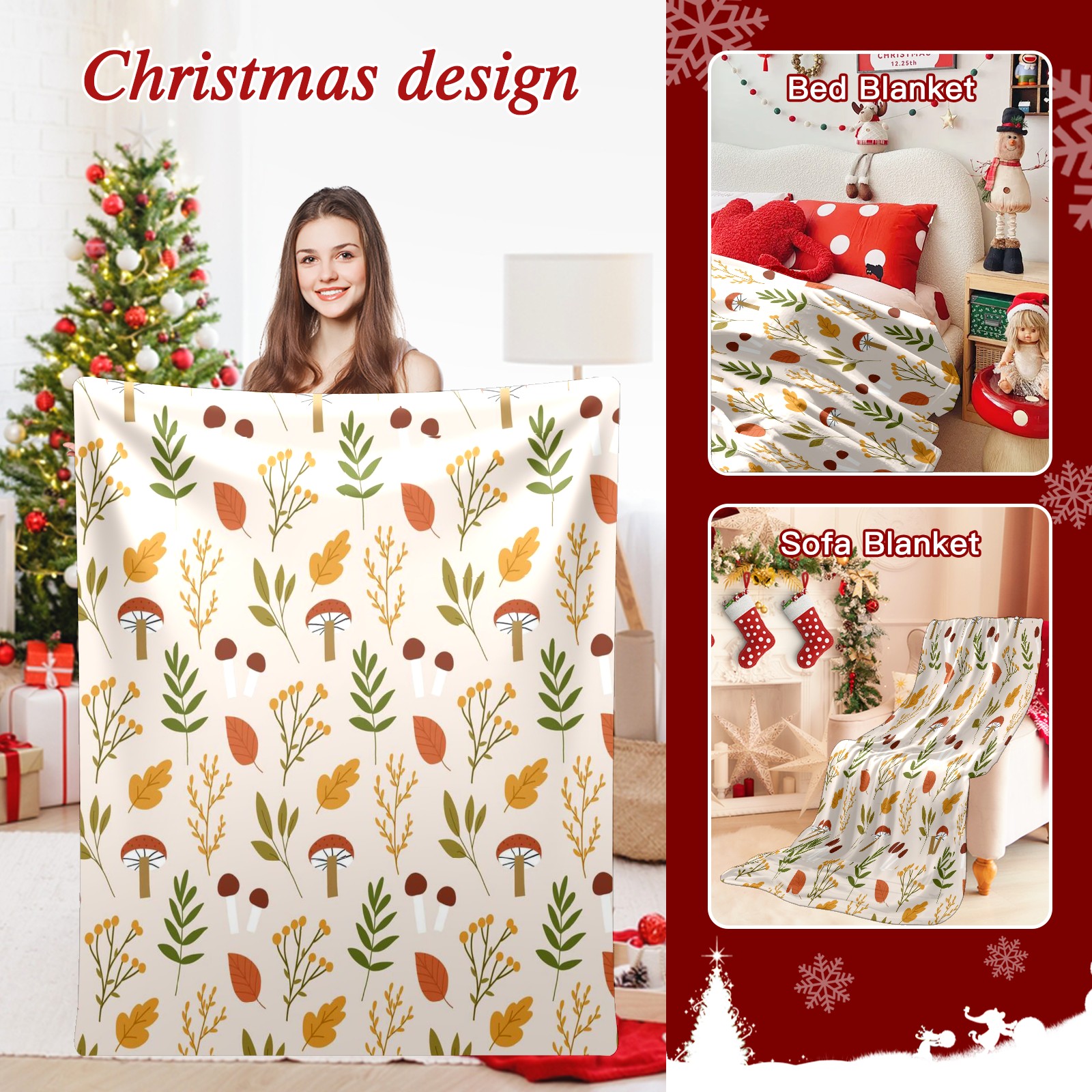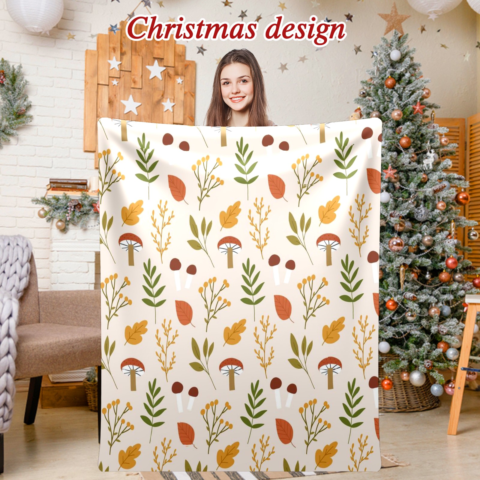 Премиальная фланелевая одеяло Beige Mushroom Floral