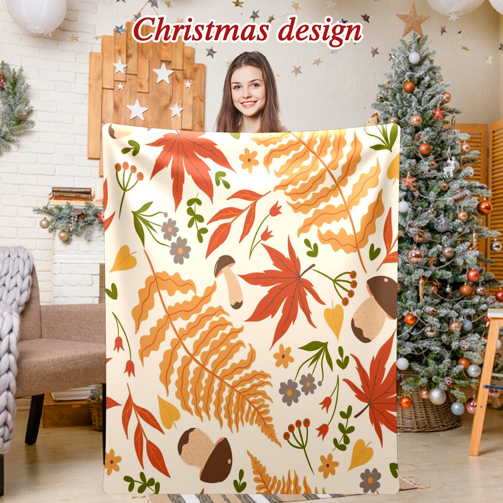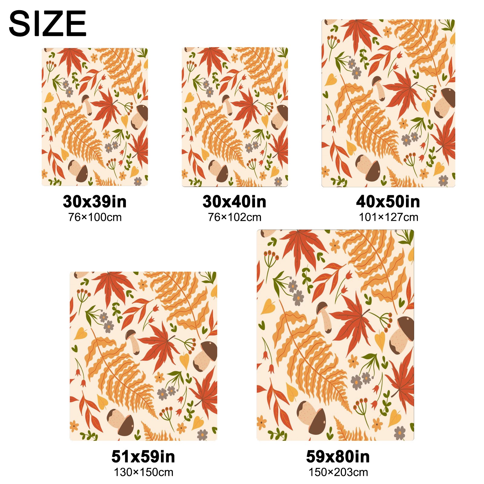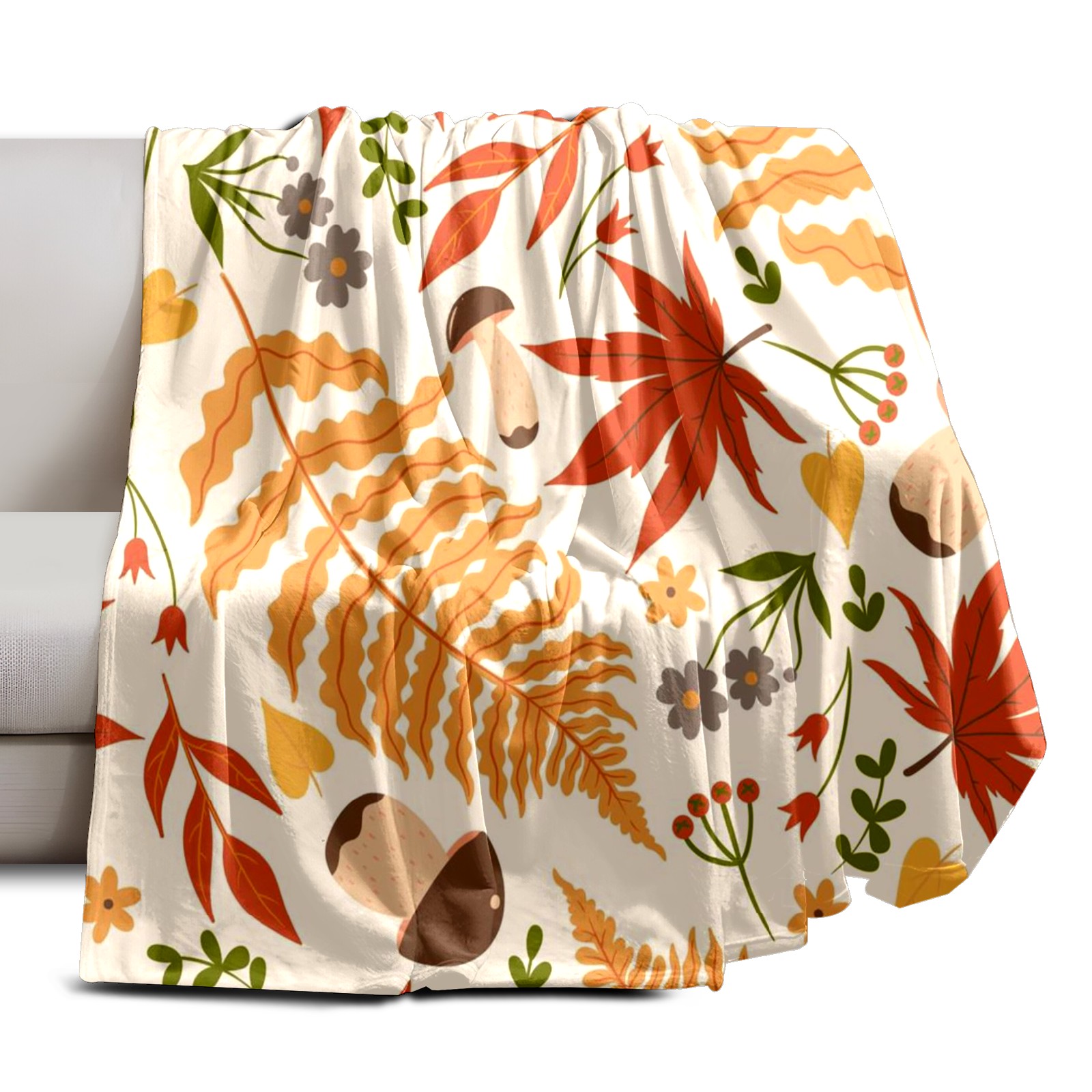 Премиальная фланелевая одеяло Beige Autumn Leaves Mushrooms