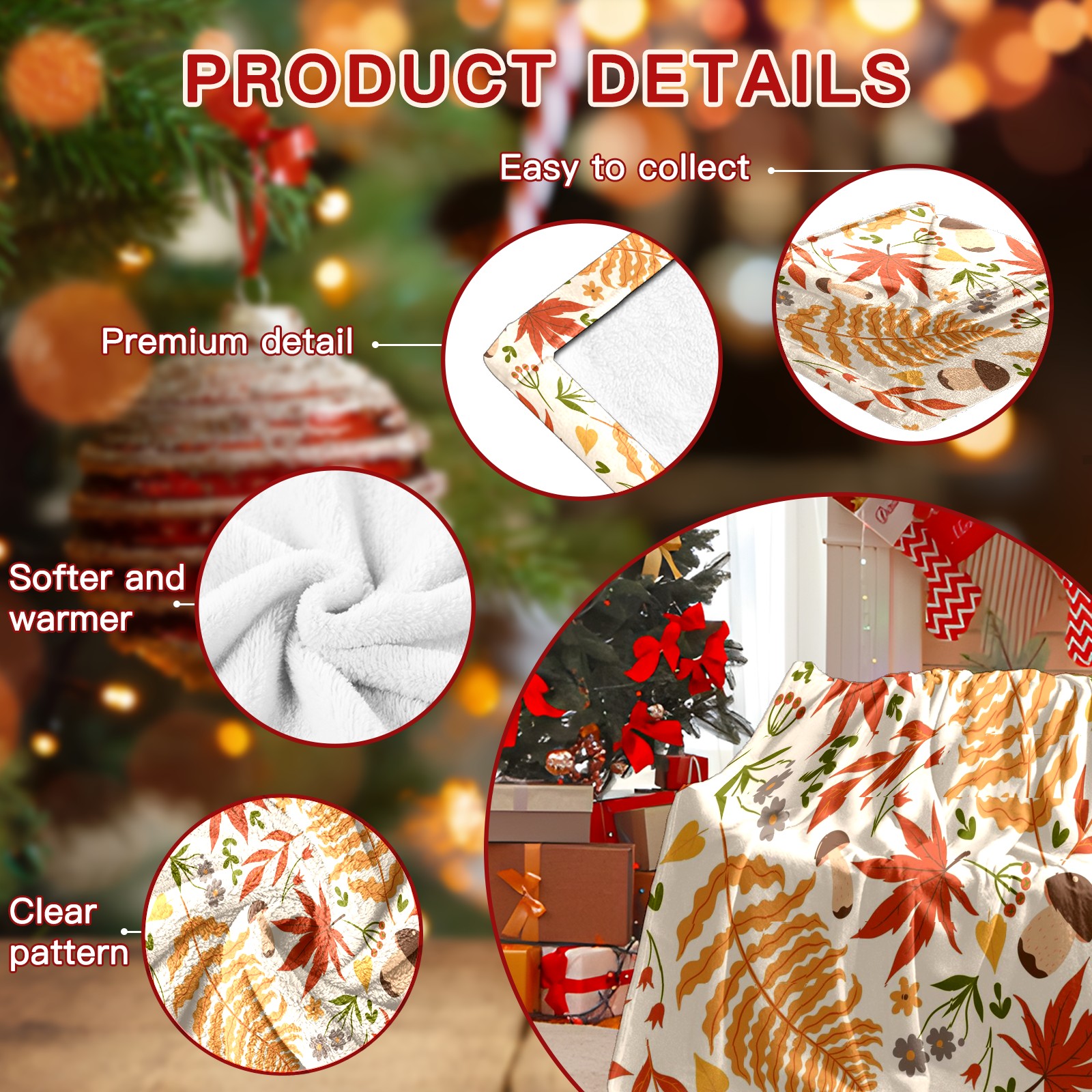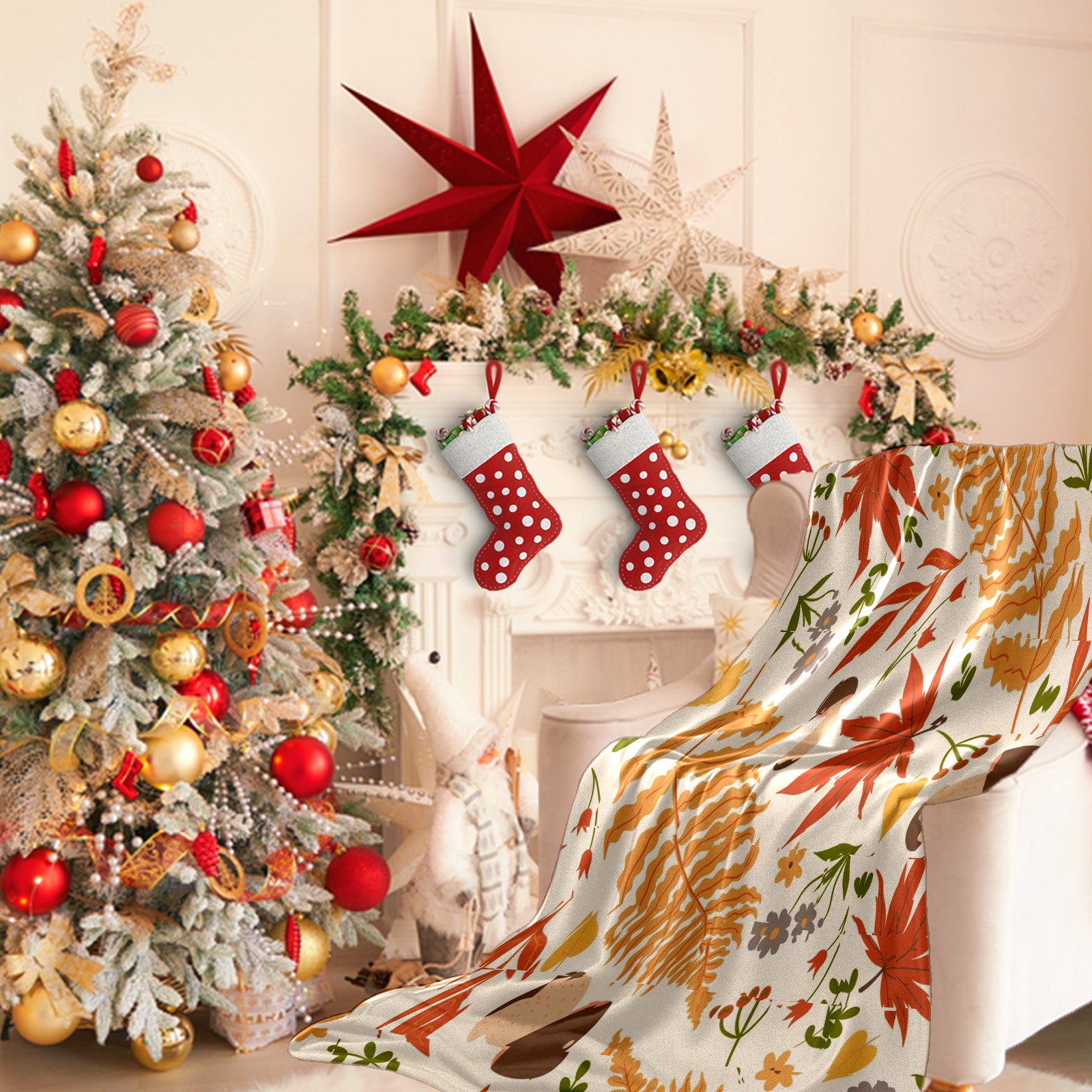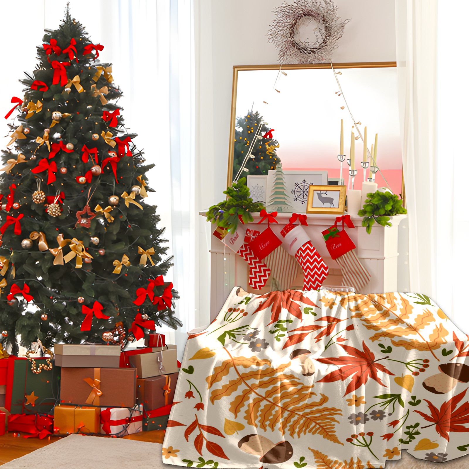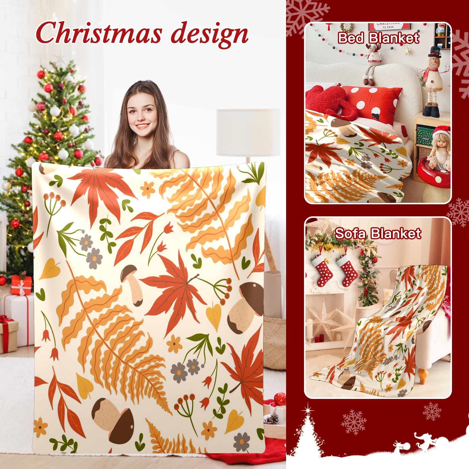 Премиальная фланелевая одеяло Beige Autumn Leaves Mushrooms