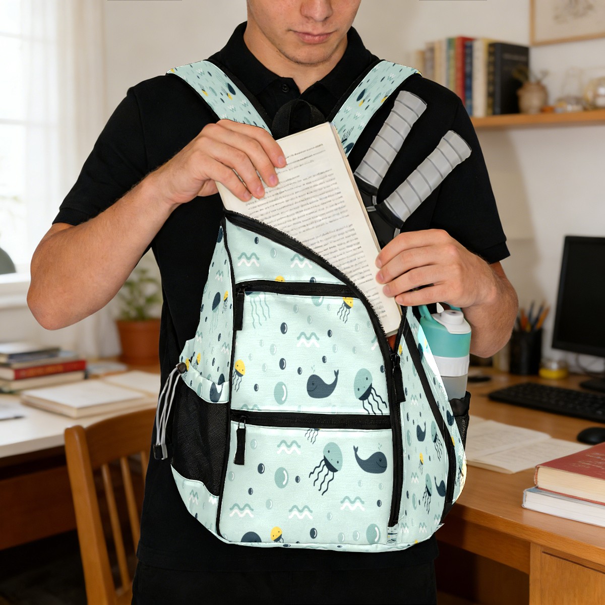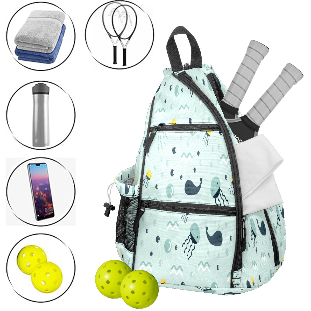 Материал: Прочная нейлоновая ткань + усиленные тканые лямки + дышащий сетчатый карман Размеры: 15×35×45 см / 6×13,8×17,7 дюймов Большая вместимость с множеством отделений – в одной сумке поместится все ваше снаряжение для пикбола: ракетки, мячи, защитная экипировка и бутылка с водой! Разработана для комфортной переноски – утолщенная мягкая спинка в сочетании с регулируемыми дышащими сетчатыми плечевыми ремнями эффективно распределяет вес, снимая боль в плечах и спине, а также мышечное напряжение. Ткань сумки гладкая и приятная на ощупь, деликатная и мягкая, что делает ежедневное использование более комфортным. Гибкие варианты переноски: плечевые лямки имеют съемную молнию, позволяющую свободно регулировать стиль ношения. Идеально подходит в качестве портативной сумки через плечо для ежедневных поездок на работу, отдыха на природе и спортивных мероприятий, а также в качестве практичного и продуманного подарка для друзей, семьи и других игроков в пикбол.