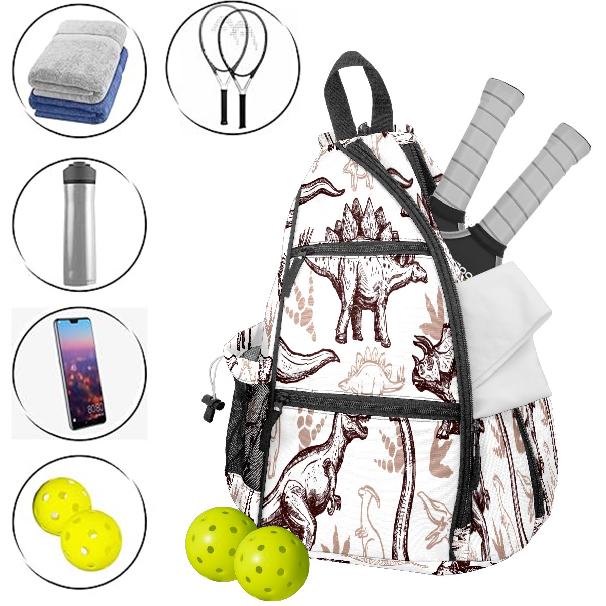 • ✅ Прочный материал Изготовлена из нейлоновой ткани + плетеного ремня + сетчатой корзины: гладкая на ощупь, приятная текстура, долговечная в использовании. ✅ Большой объем + много карманов Размер 153545см/6x13.8x17.7 дюймов, продуманная конструкция с несколькими карманами позволяет удобно разложить аксессуары для пикебола, не беспокоясь о нехватке места. ✅ Максимальный комфорт ношения Подушенное спинное отделение + регулируемые сетчатые плечевые ремни эффективно предотвращают растяжение мышц и боль в плечах, даже при длительном ношении. ✅ Универсальное использование Ремни выполнены по технологии съемного молния — регулируемый способ ношения. Подходит как повседневная поясная сумка для поездок, прогулок и других мероприятий, также является идеальным подарком для друзей и близких!