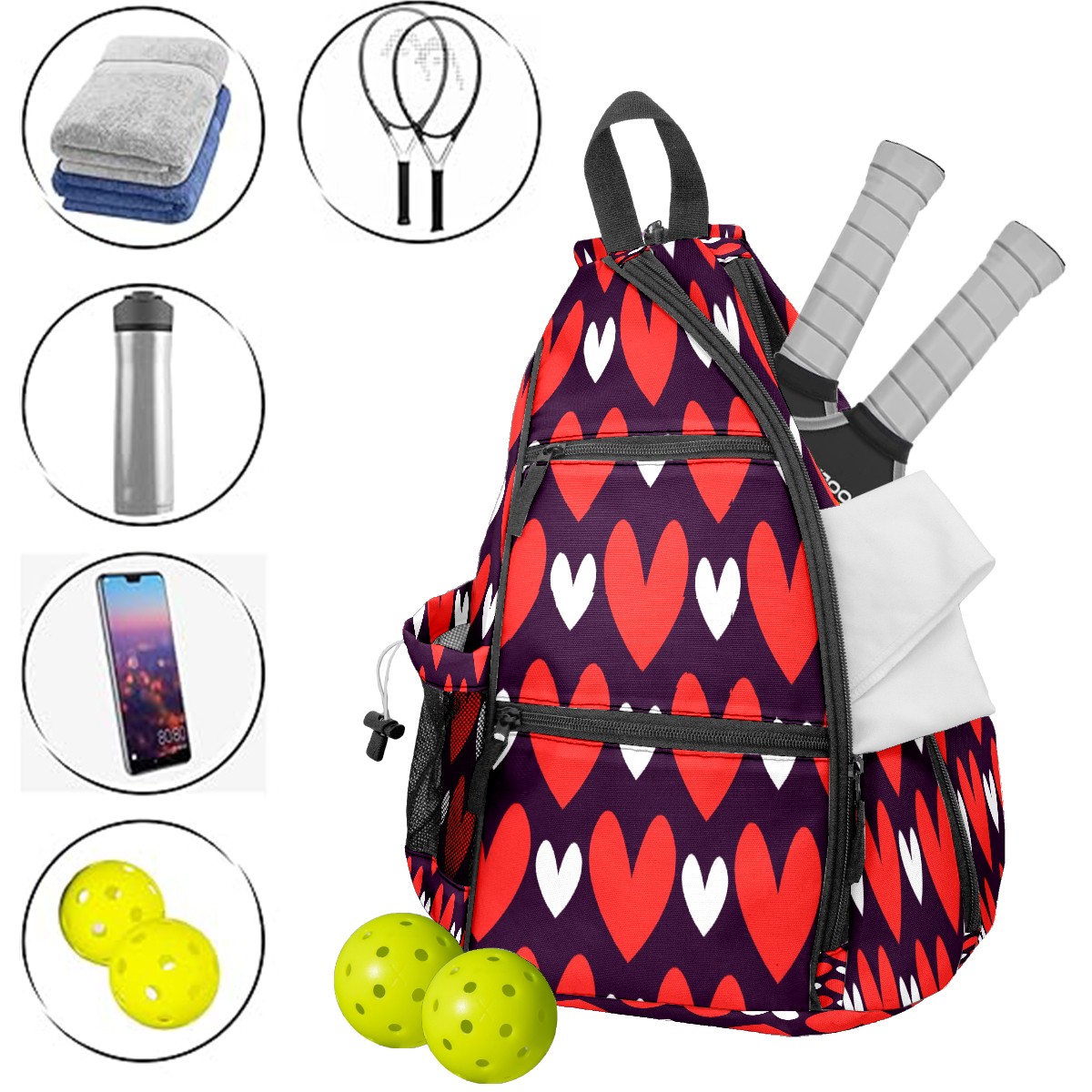 • ✅ Прочный материал Изготовлена из нейлоновой ткани + плетеного ремня + сетчатой корзины: гладкая на ощупь, приятная текстура, долговечная в использовании. ✅ Большой объем + много карманов Размер 153545см/6x13.8x17.7 дюймов, продуманная конструкция с несколькими карманами позволяет удобно разложить аксессуары для пикебола, не беспокоясь о нехватке места. ✅ Максимальный комфорт ношения Подушенное спинное отделение + регулируемые сетчатые плечевые ремни эффективно предотвращают растяжение мышц и боль в плечах, даже при длительном ношении. ✅ Универсальное использование Ремни выполнены по технологии съемного молния — регулируемый способ ношения. Подходит как повседневная поясная сумка для поездок, прогулок и других мероприятий, также является идеальным подарком для друзей и близких!