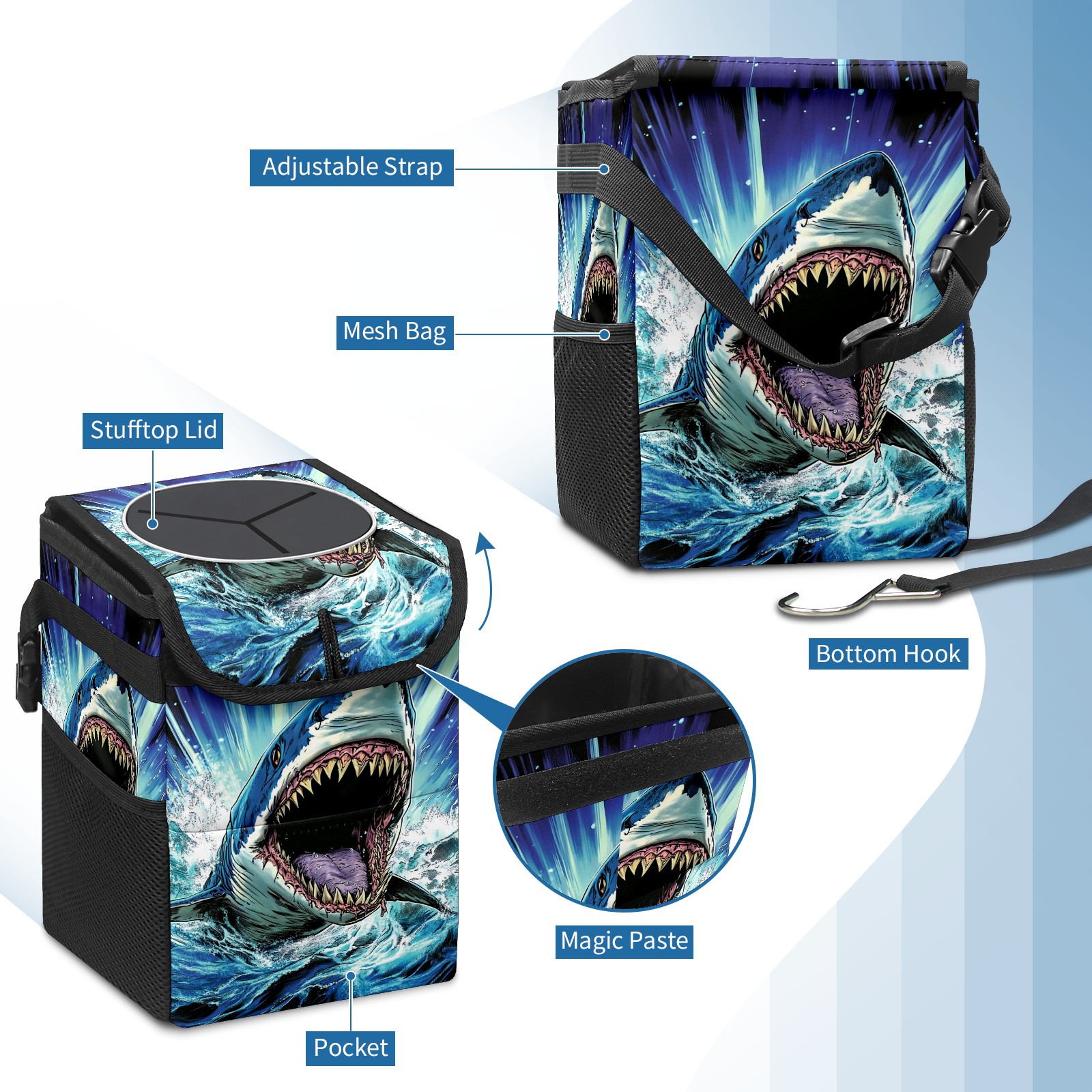 • Компактная мусорная корзина для автомобиля — это незаменимый аксессуар для поддержания порядка в салоне. Она легко монтируется на переднее или заднее сиденье, не занимает много места и позволяет удобно собирать мусор во время поездок.