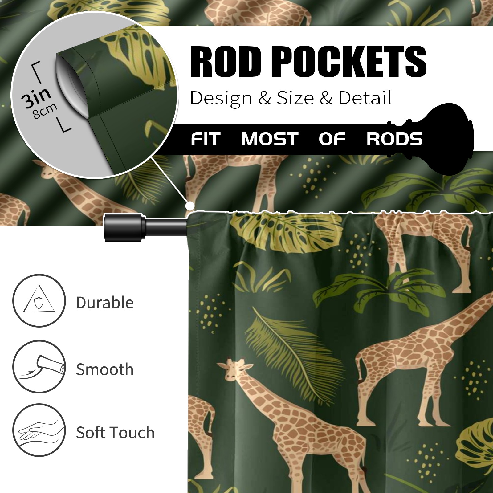 Шторы-панно для дома, декоративные драпировки для гостиной и спальни, легкие и прочные, Green Giraffes Tropical Leaves