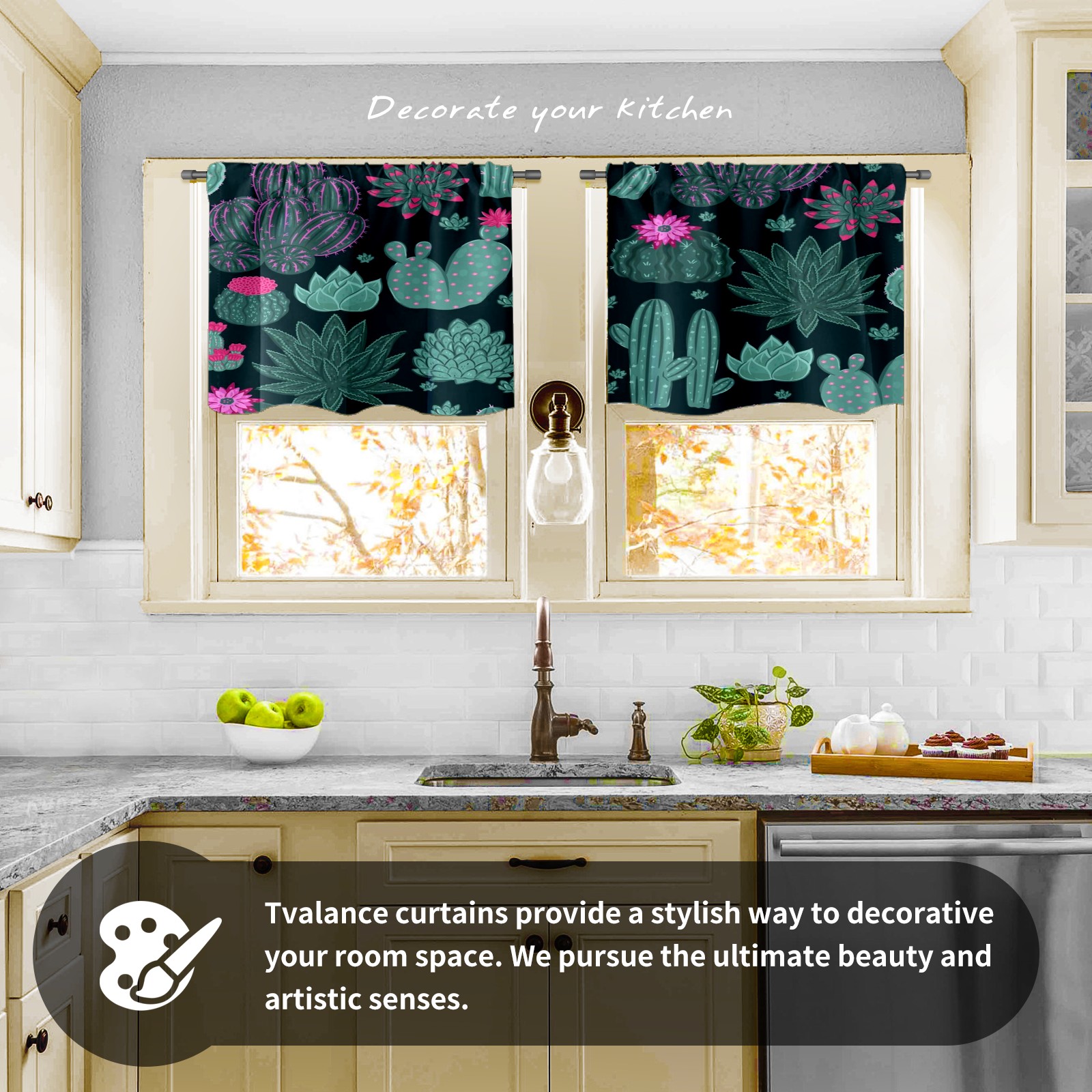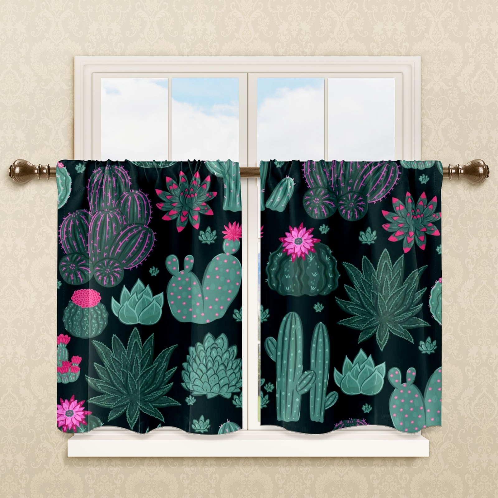 Шторы-панно для дома, декоративные драпировки для гостиной и спальни, легкие и прочные, Green Cactus Floral