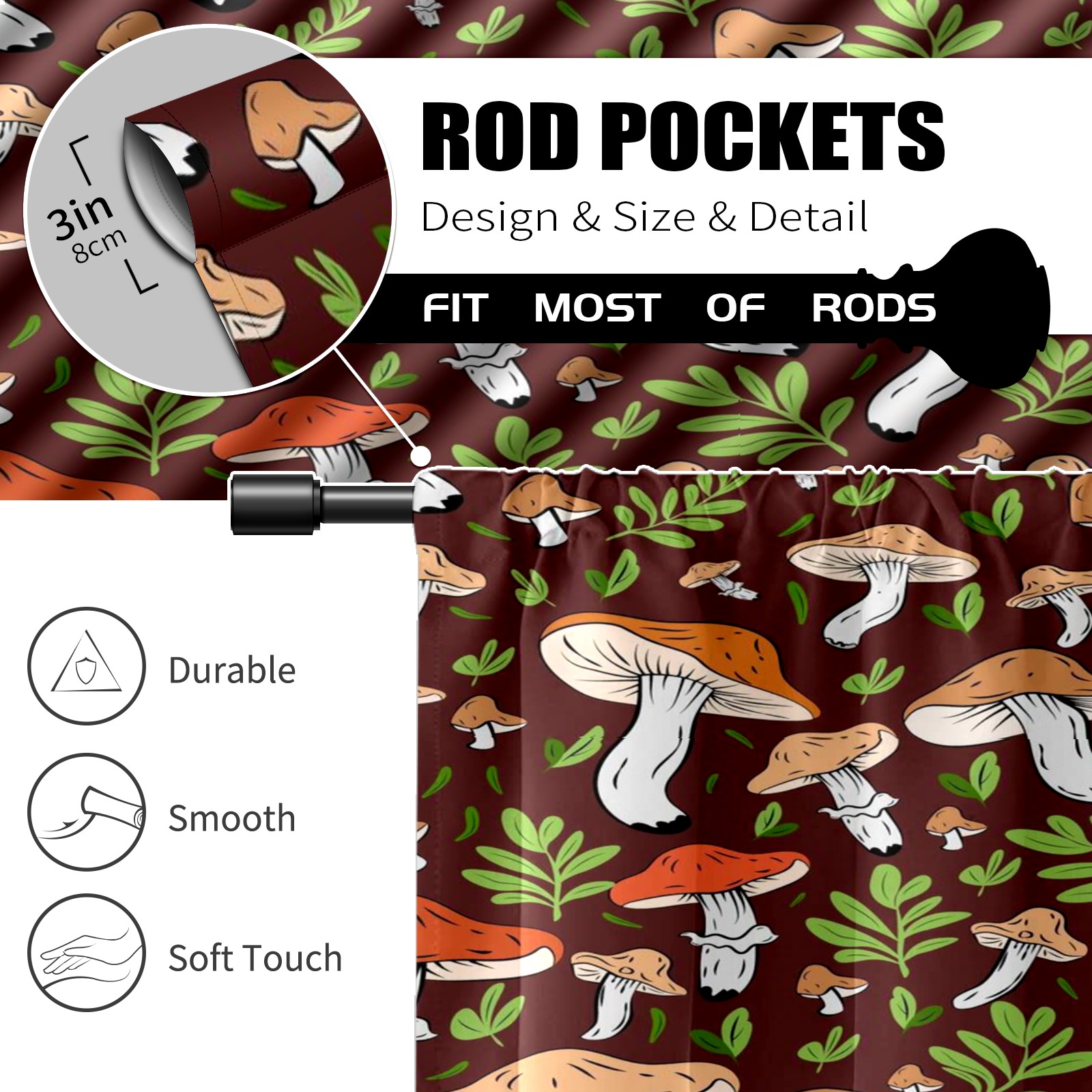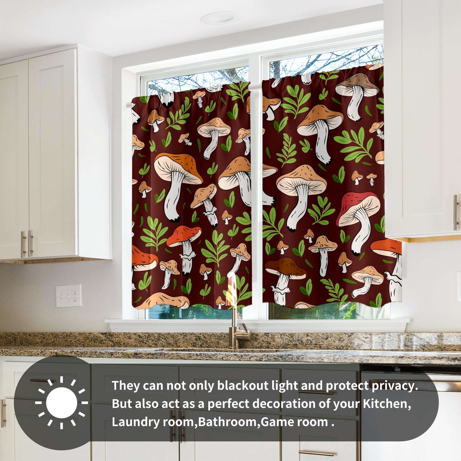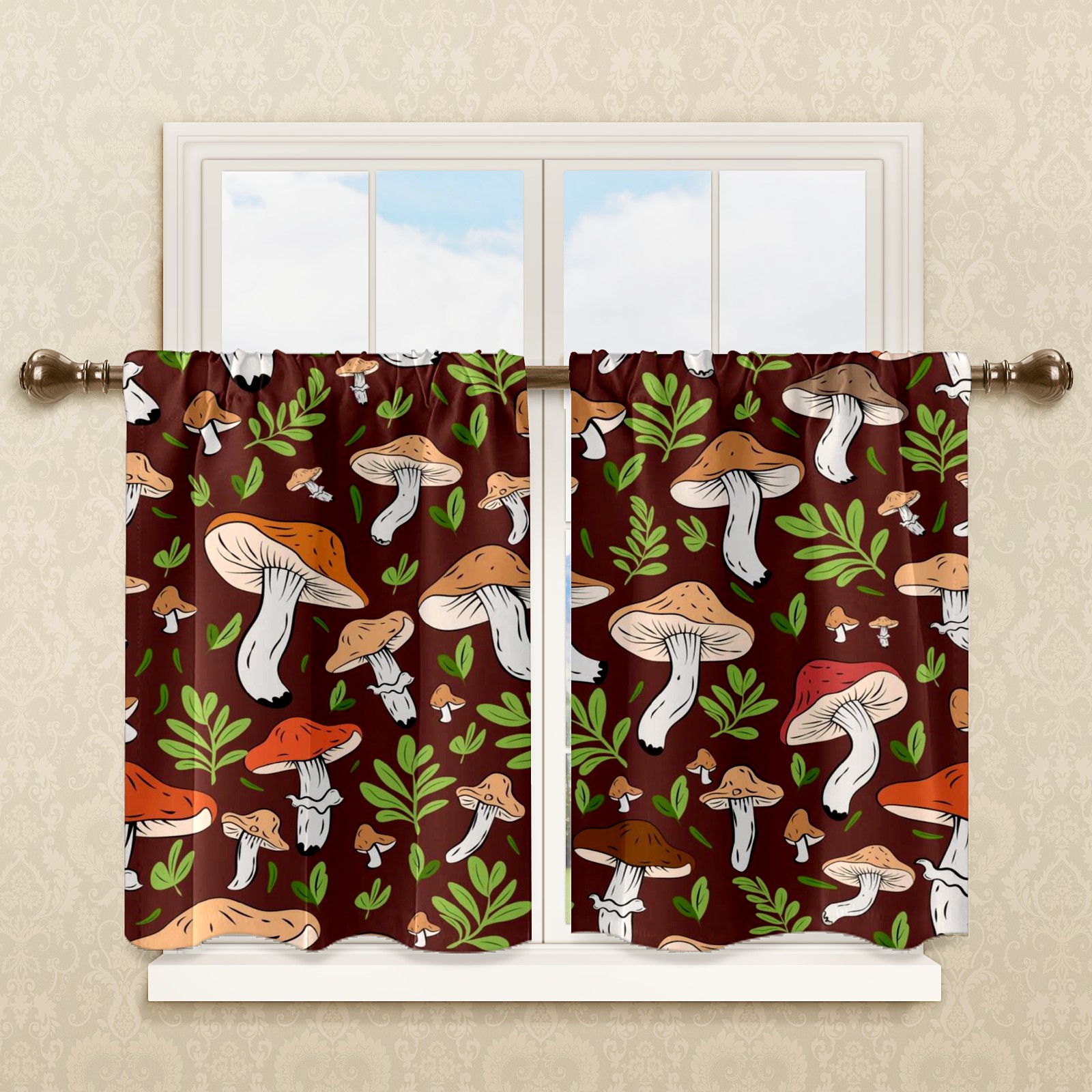 Шторы-панно для дома, декоративные драпировки для гостиной и спальни, легкие и прочные, Brown Mushroom Leaves