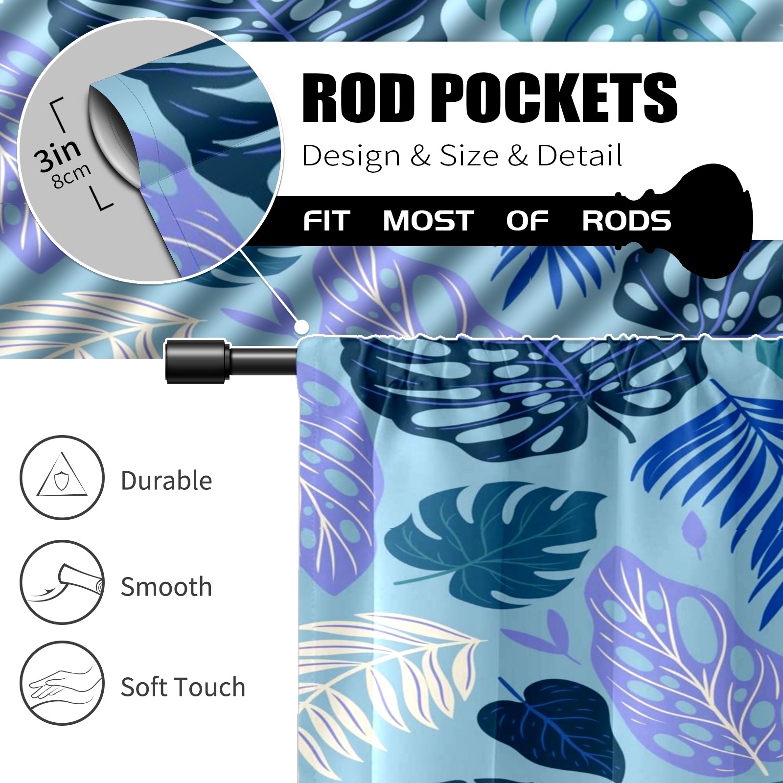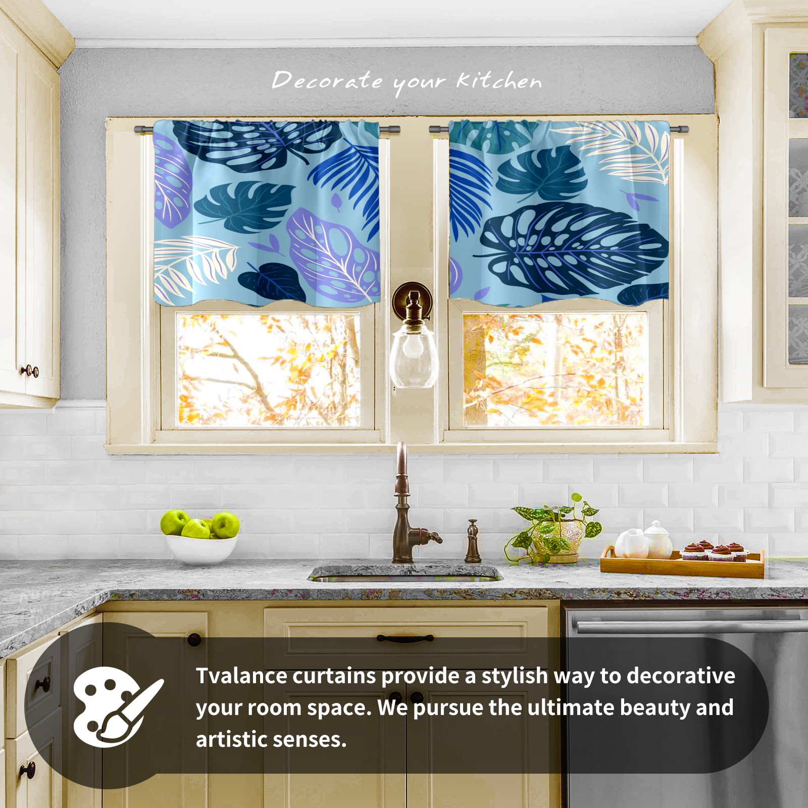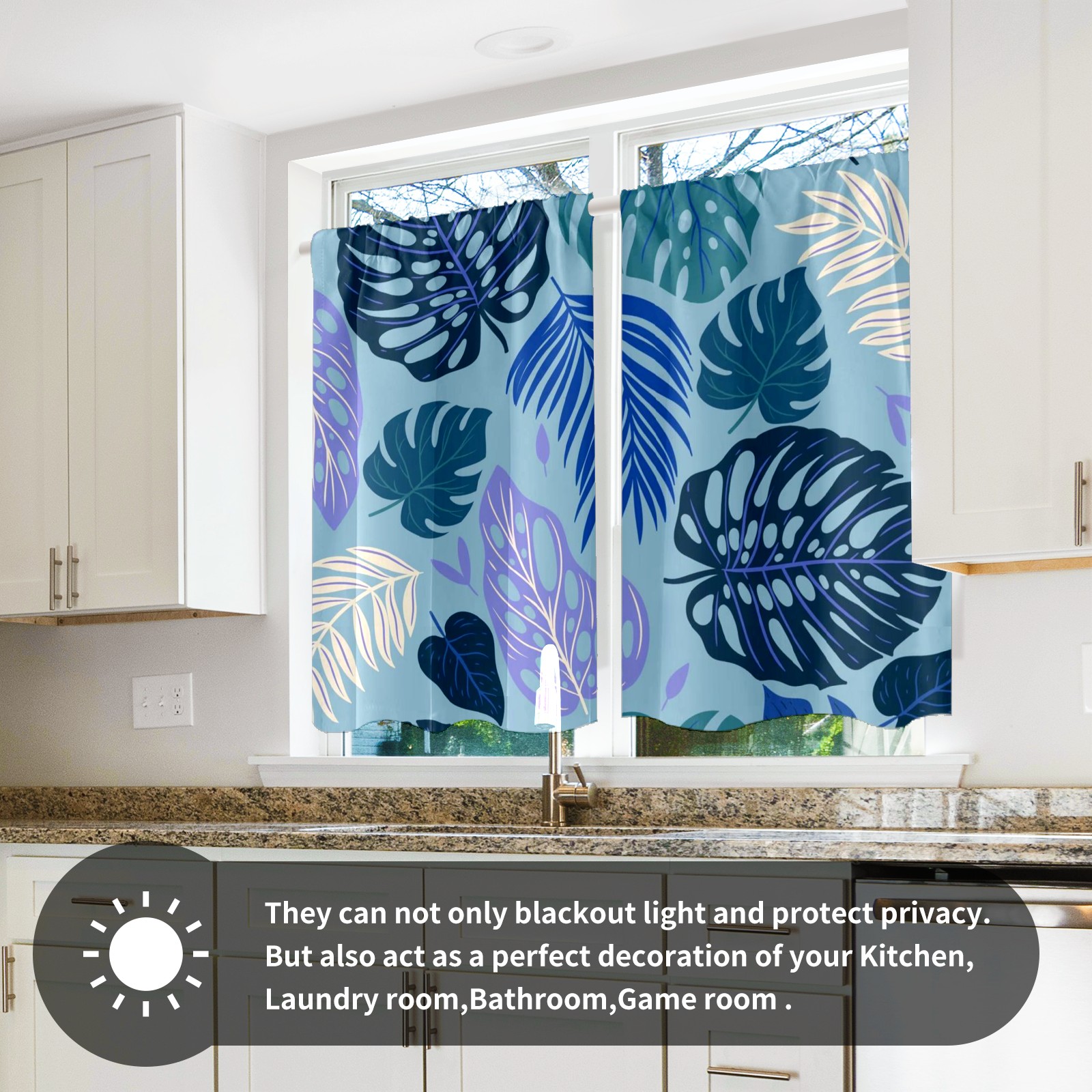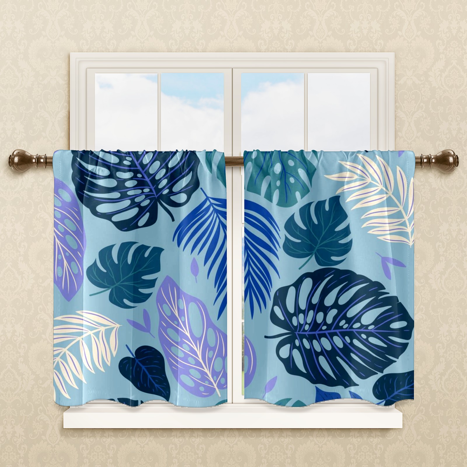 Шторы-панно для дома, декоративные драпировки для гостиной и спальни, легкие и прочные, Blue Tropical Leaves