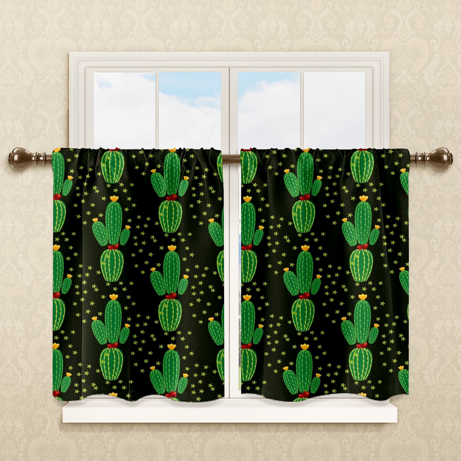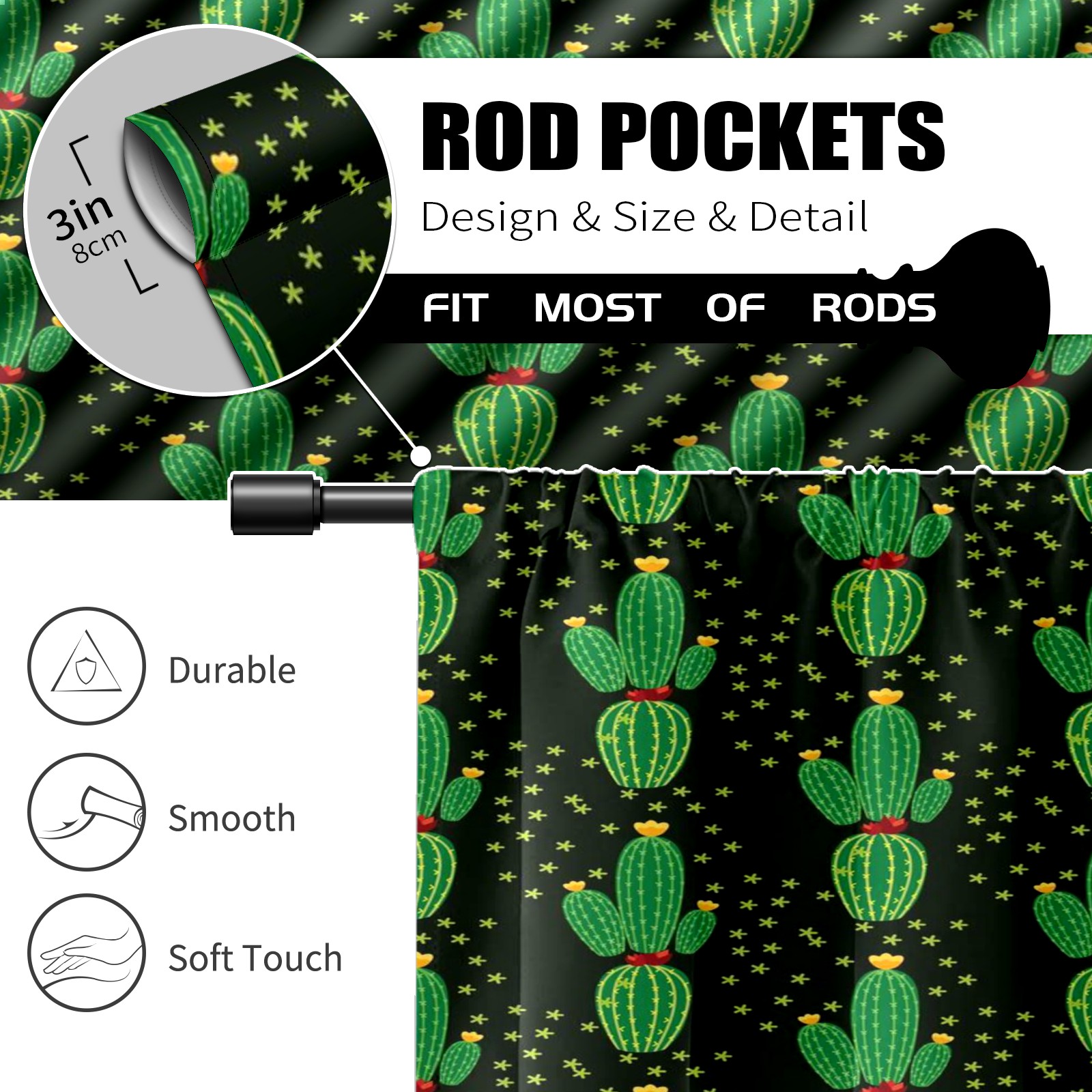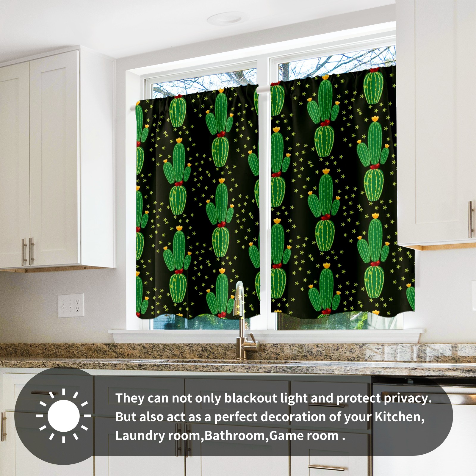 Шторы-панно для дома, декоративные драпировки для гостиной и спальни, легкие и прочные, Black Green Cactus