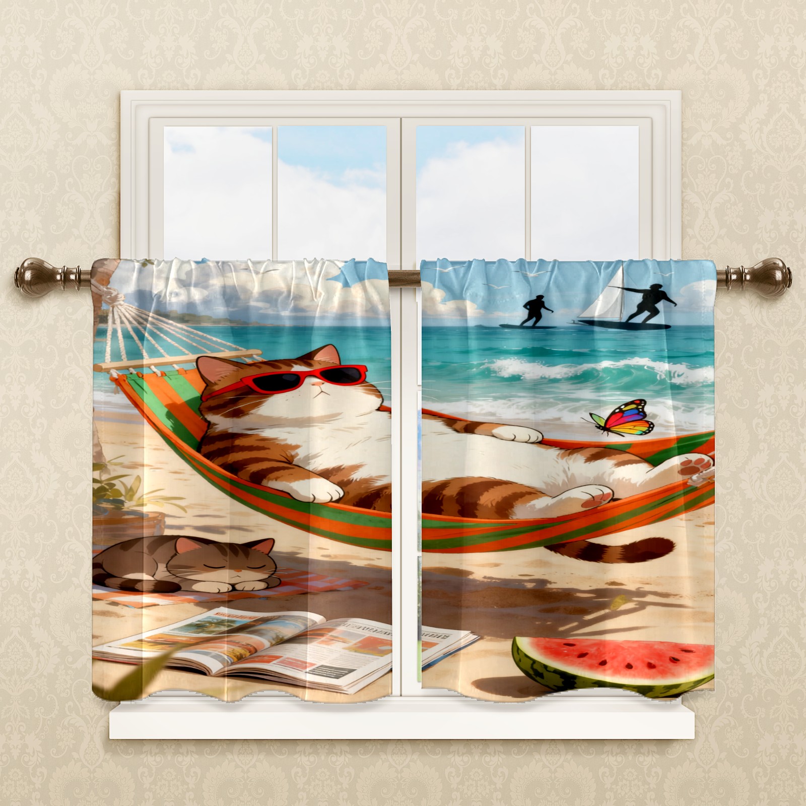 Шторы-панно для дома, декоративные драпировки для гостиной и спальни, легкие и прочные, Orange Cat Hammock 1