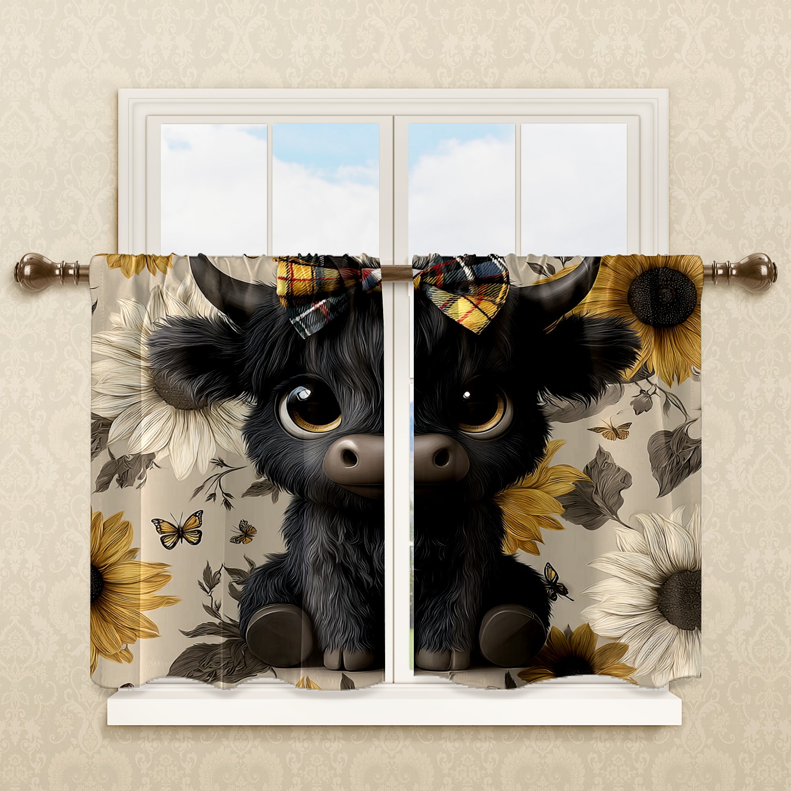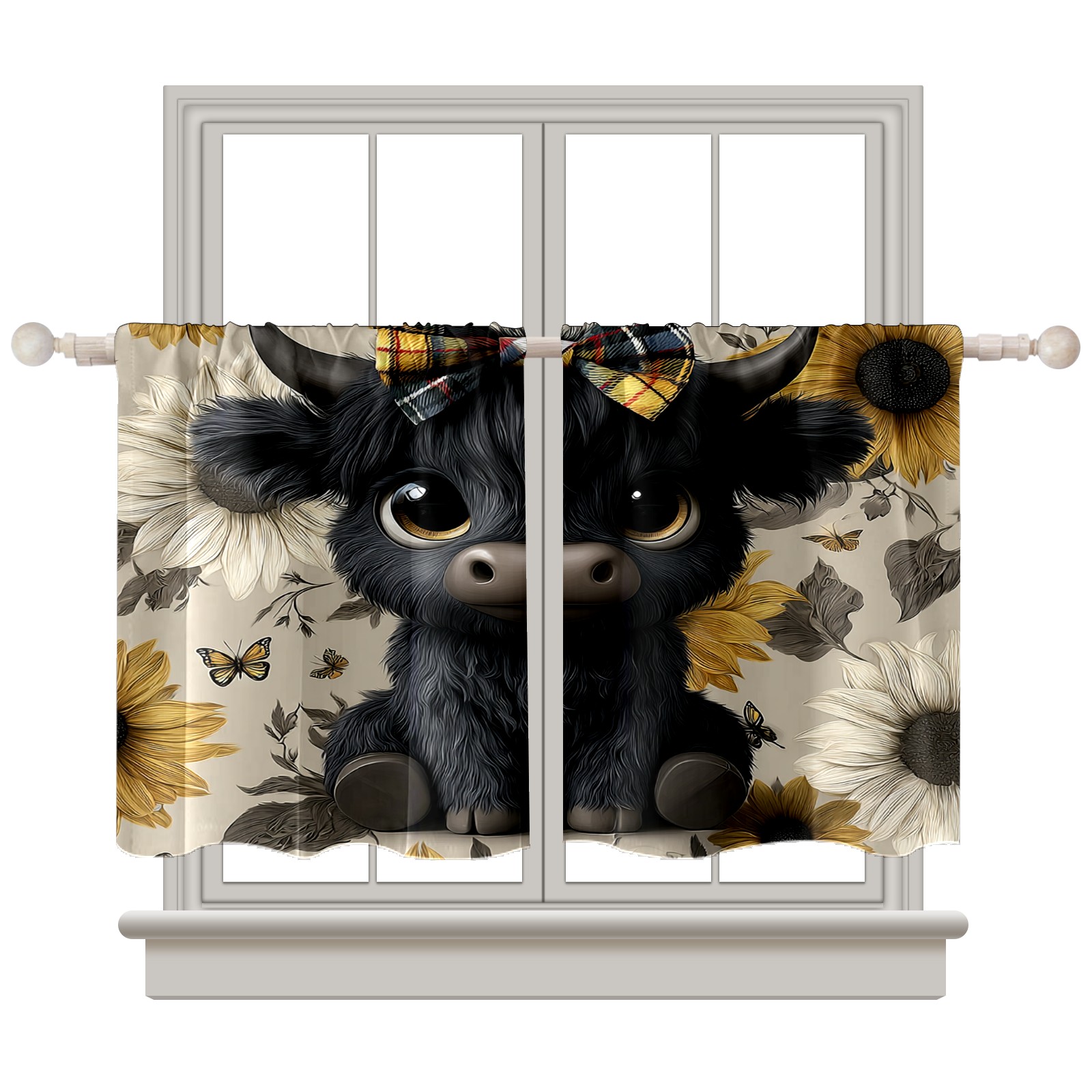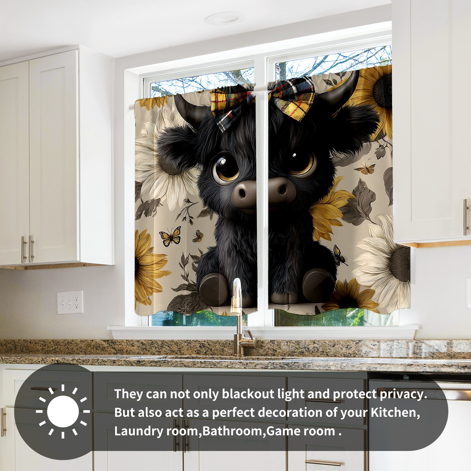 Шторы-панно для дома, декоративные драпировки для гостиной и спальни, легкие и прочные, Black Cow Sunflower Black