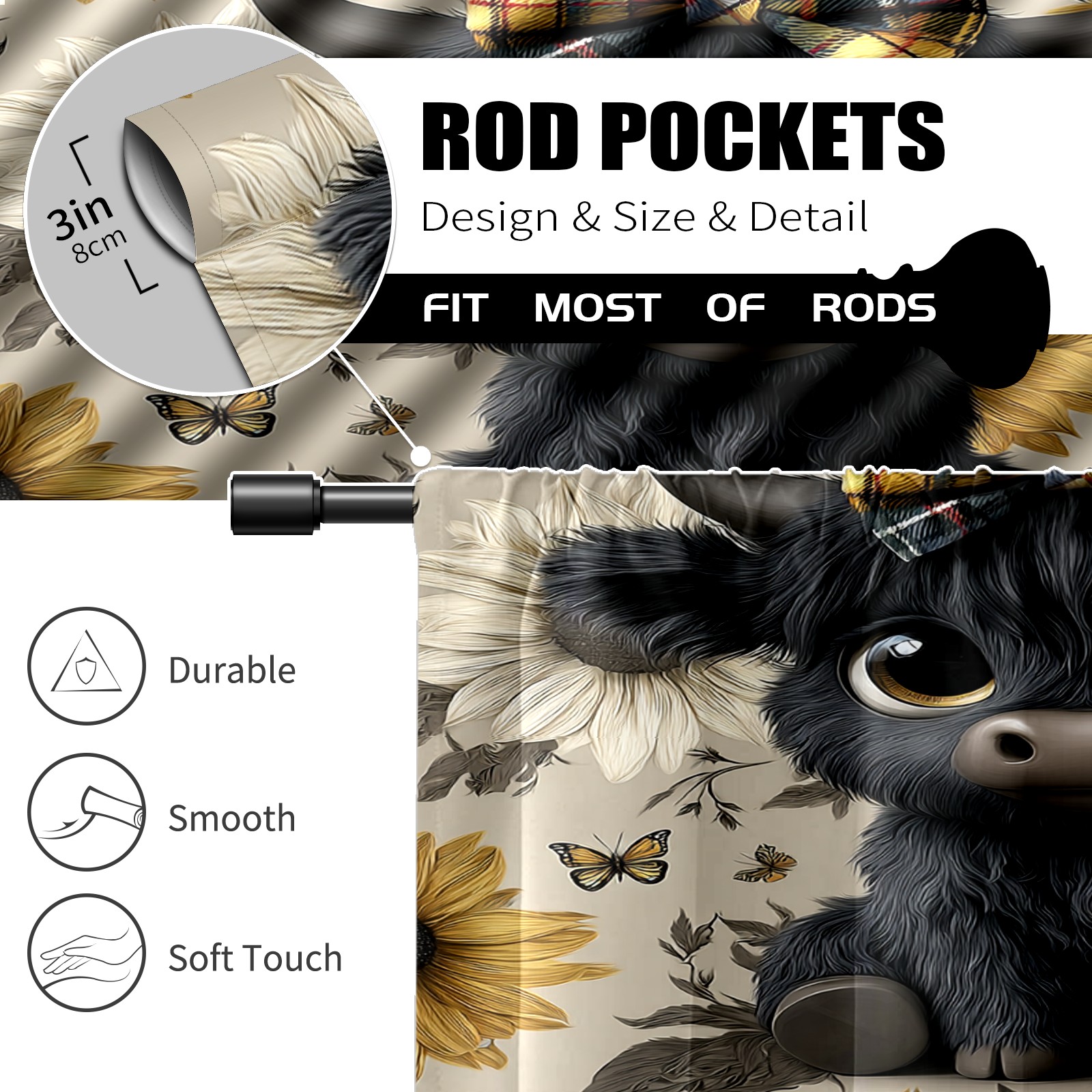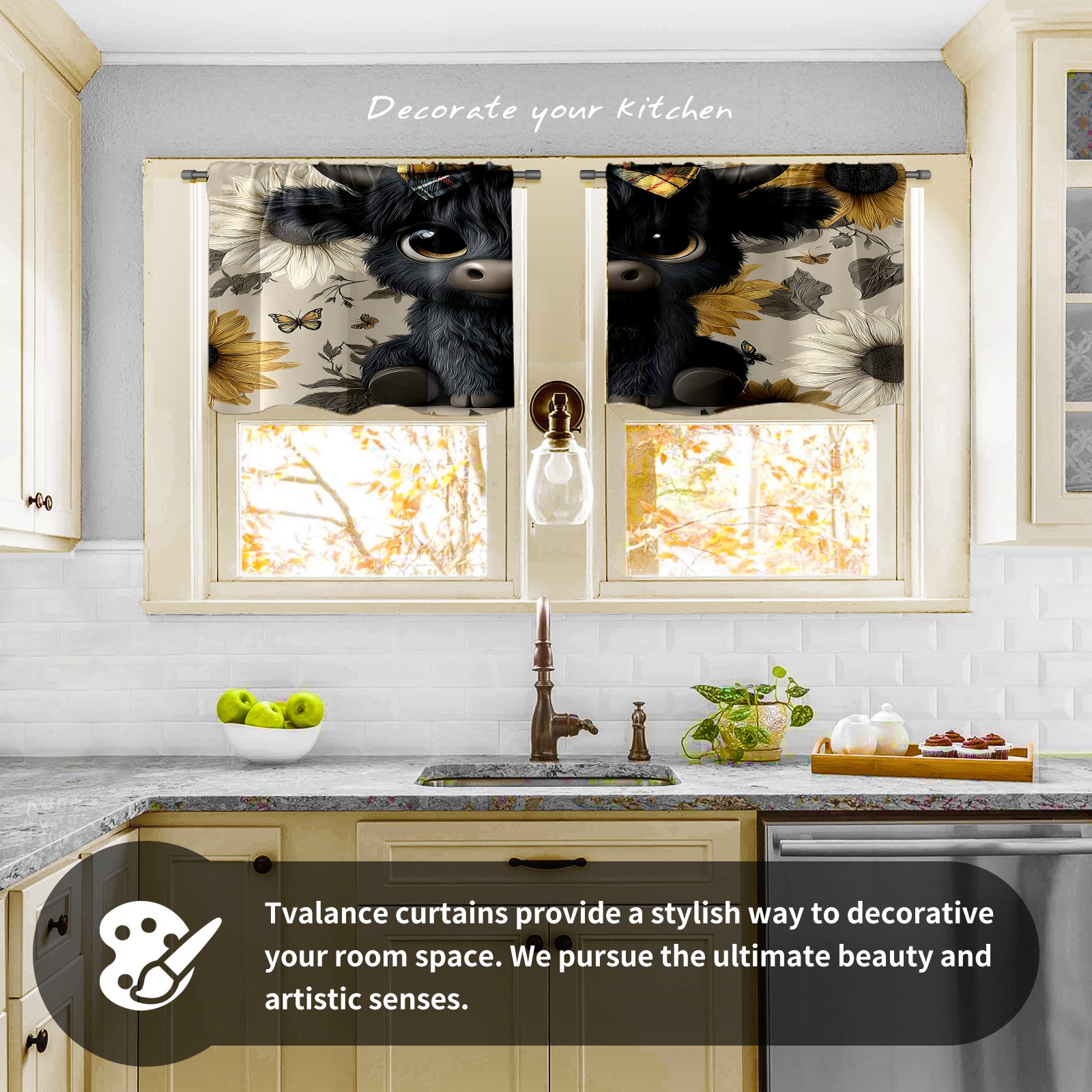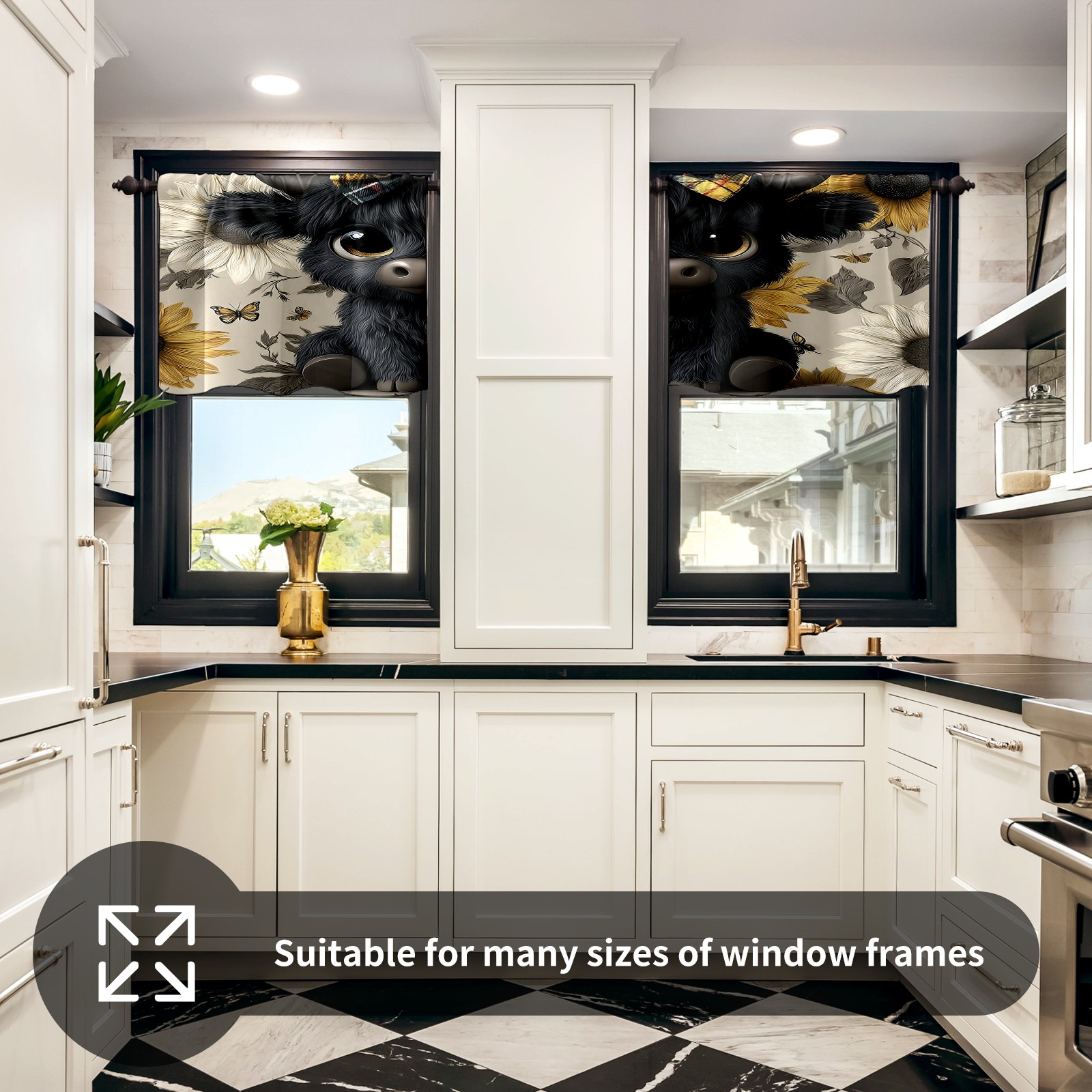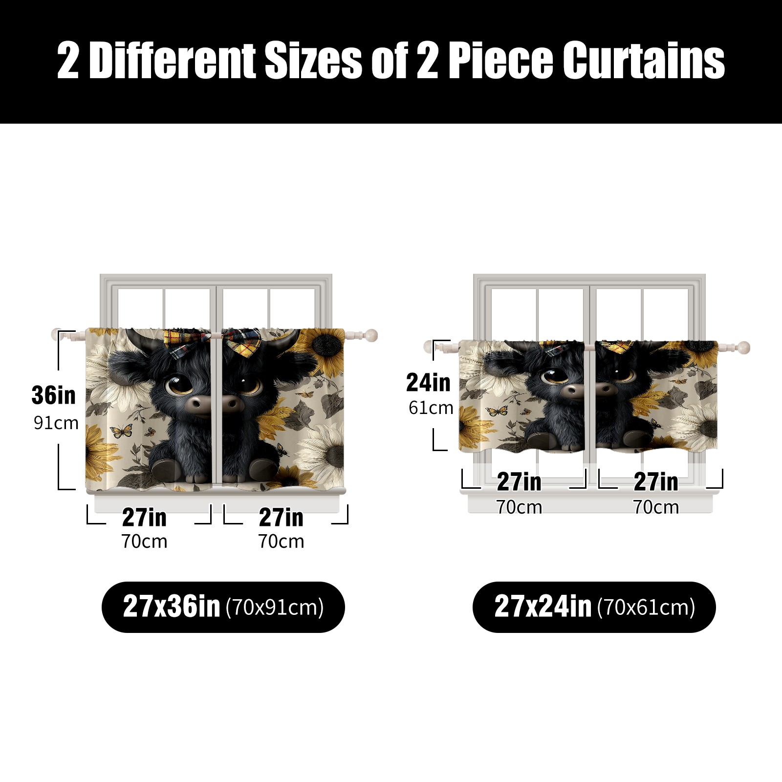 Шторы-панно для дома, декоративные драпировки для гостиной и спальни, легкие и прочные, Black Cow Sunflower Black