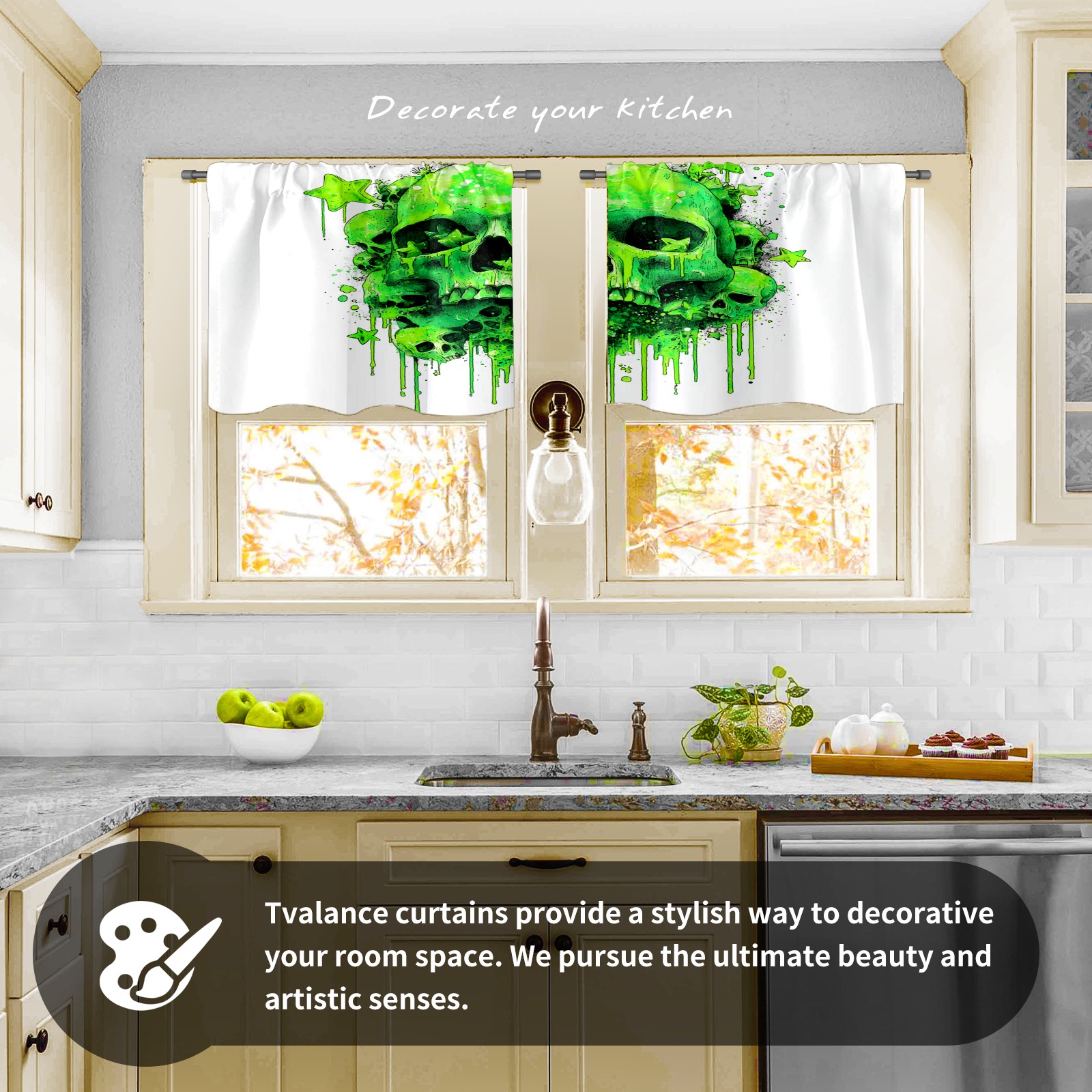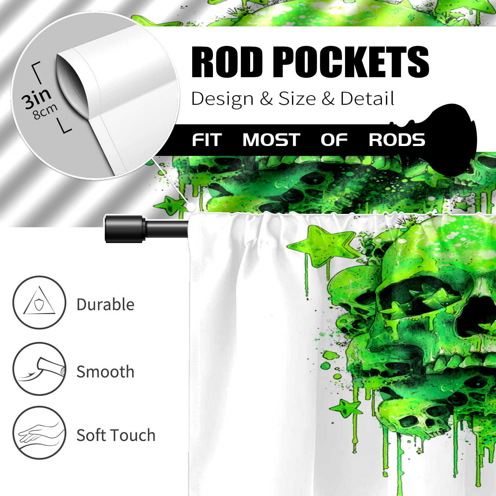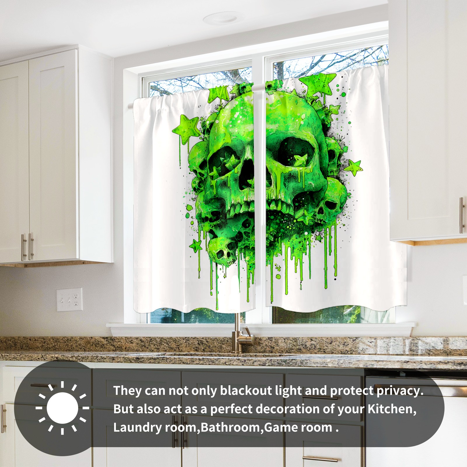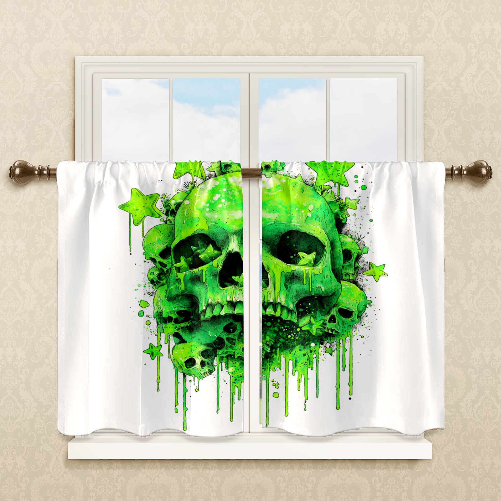 Шторы-панно для дома, декоративные драпировки для гостиной и спальни, легкие и прочные, Skulls Green2
