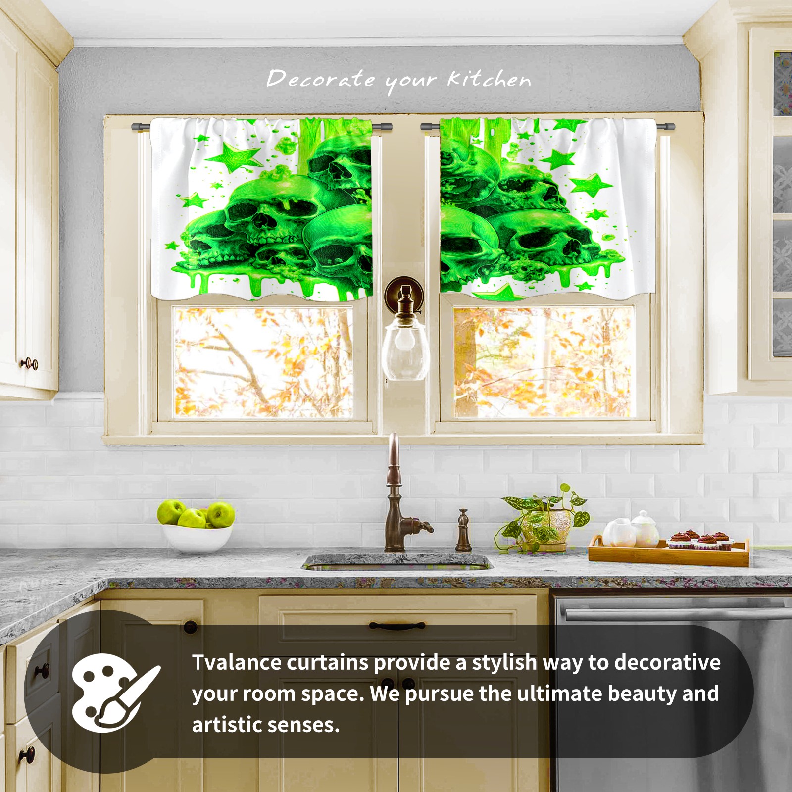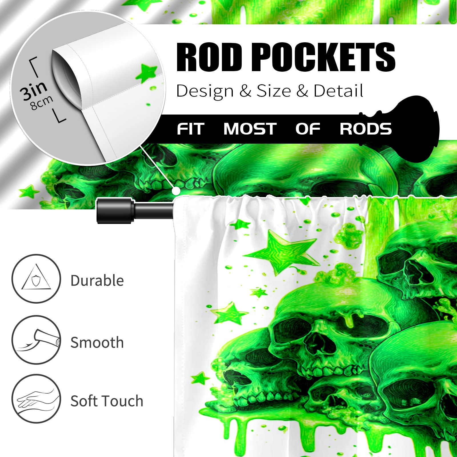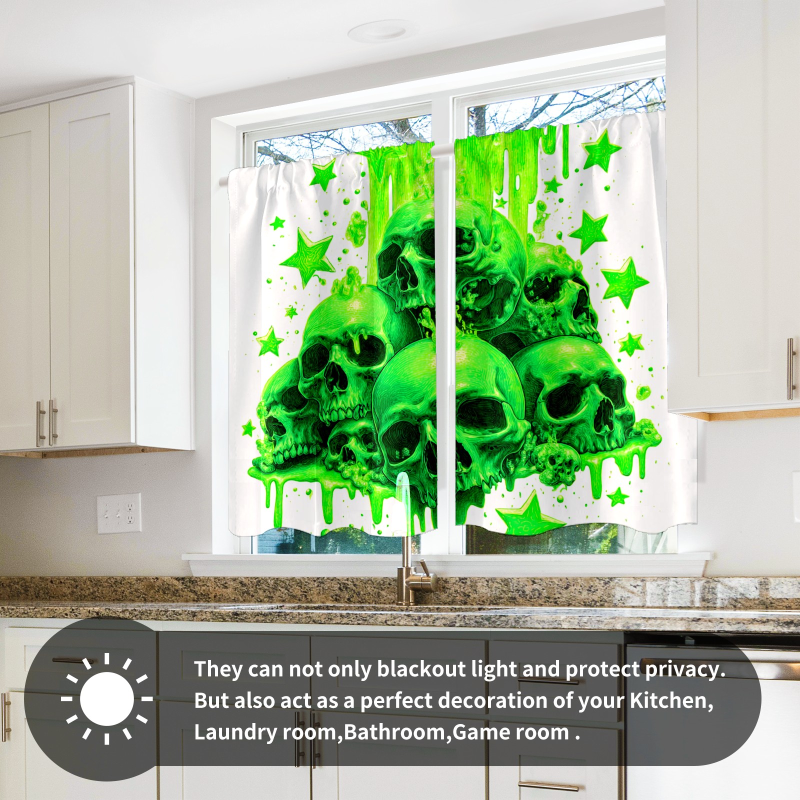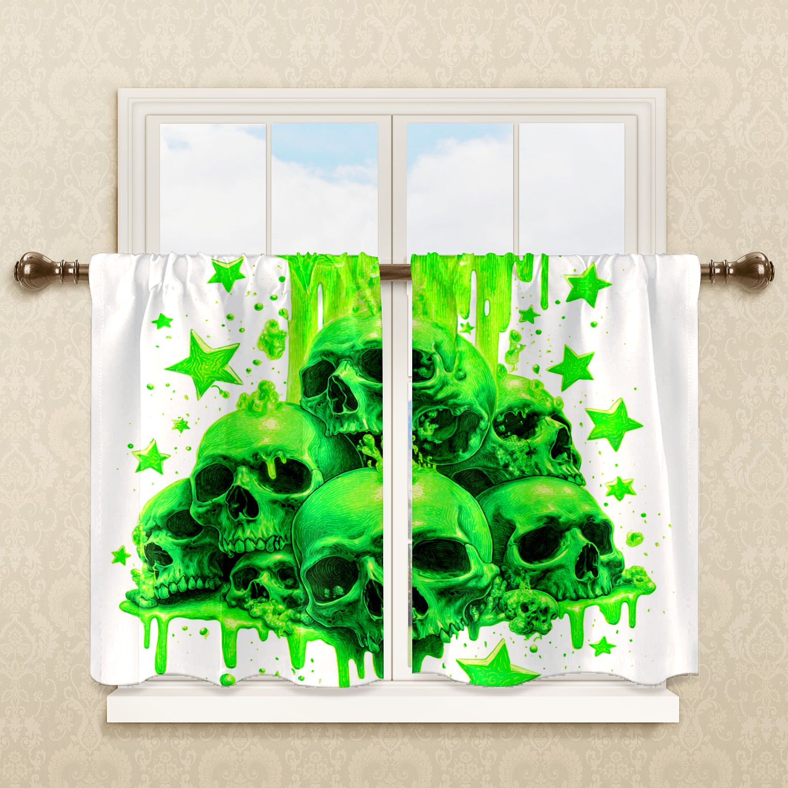 Шторы-панно для дома, декоративные драпировки для гостиной и спальни, легкие и прочные, Skulls Green