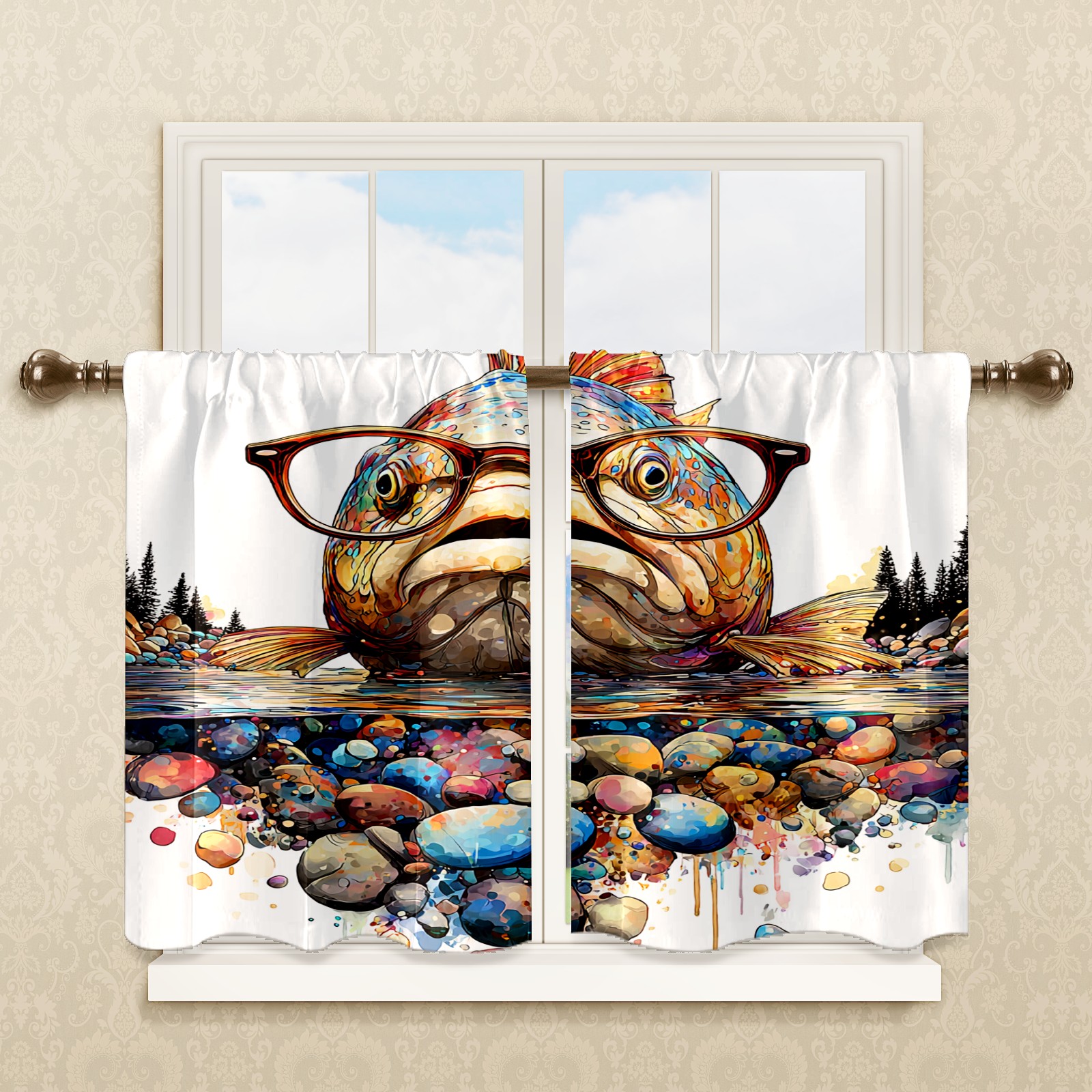 Шторы-панно для дома, декоративные драпировки для гостиной и спальни, легкие и прочные, Fish Humorous Orange2