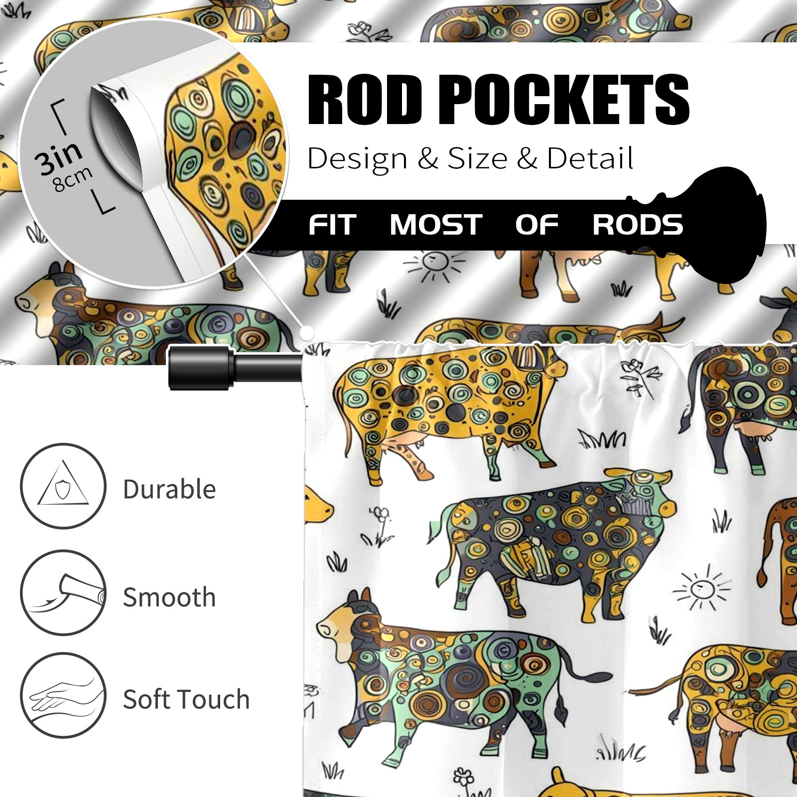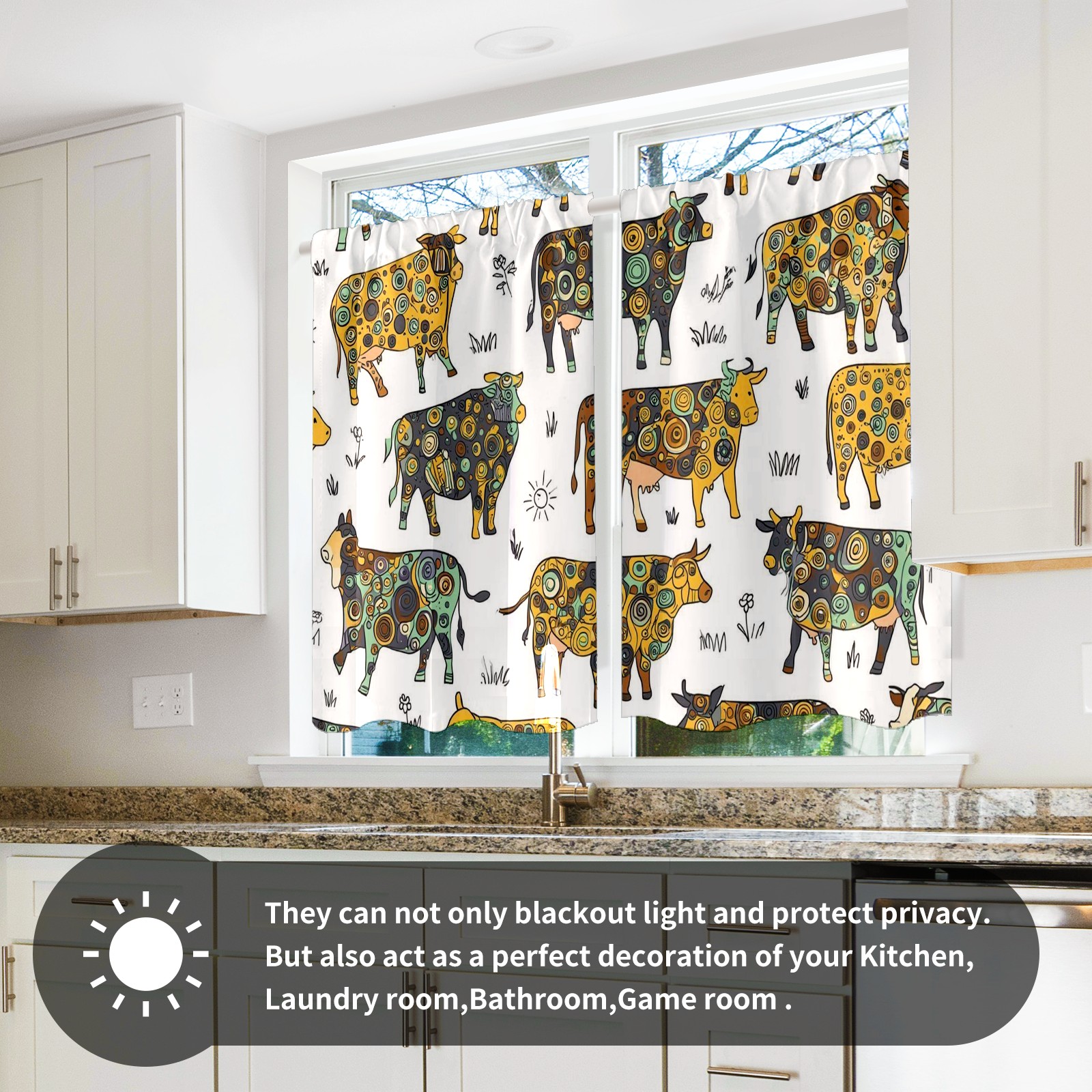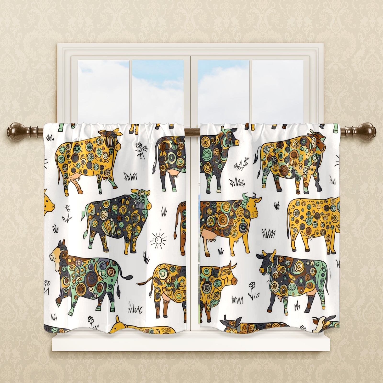 Шторы-панно для дома, декоративные драпировки для гостиной и спальни, легкие и прочные, Patterned Cows Yellow