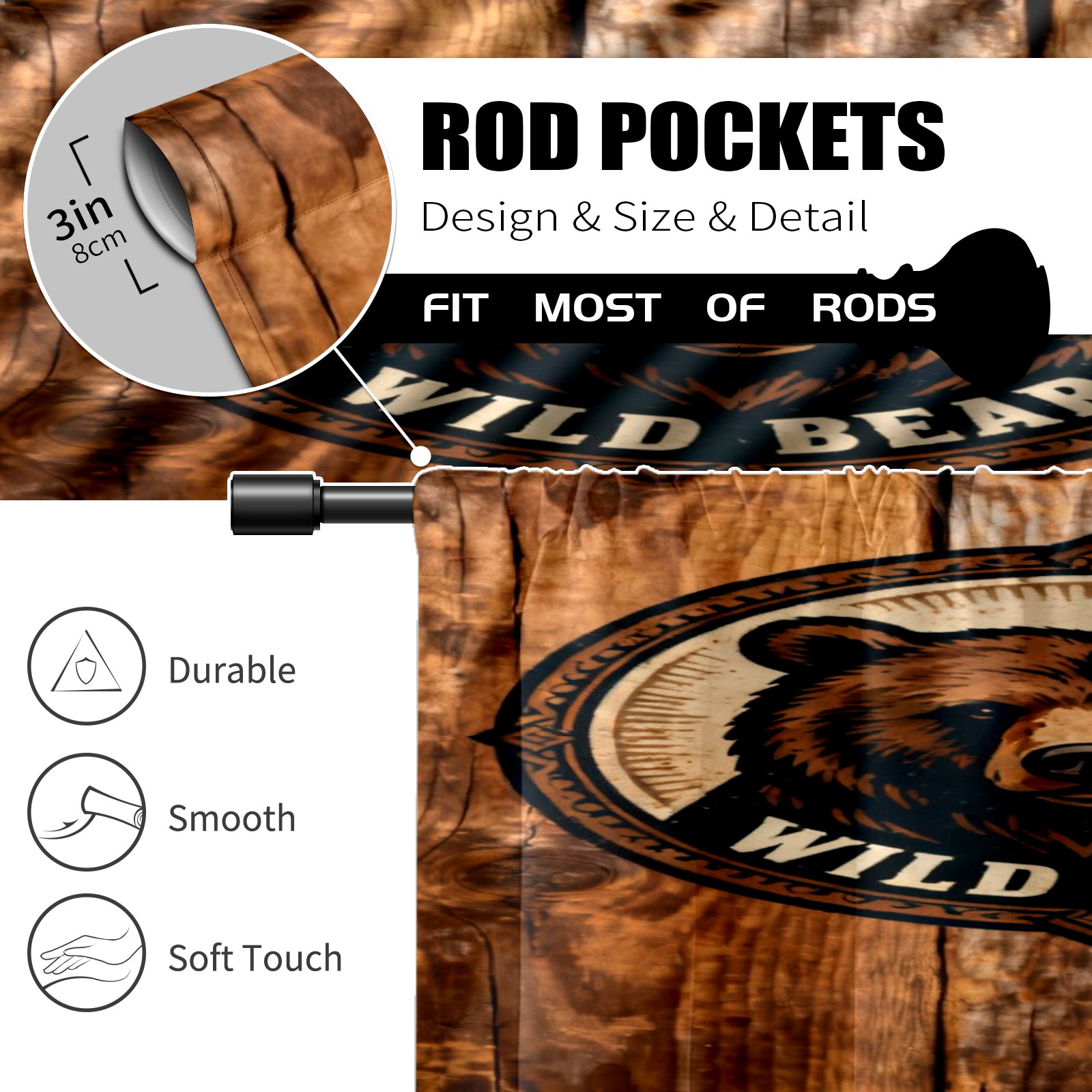 Шторы-панно для дома, декоративные драпировки для гостиной и спальни, легкие и прочные, Wild Bear Pattern