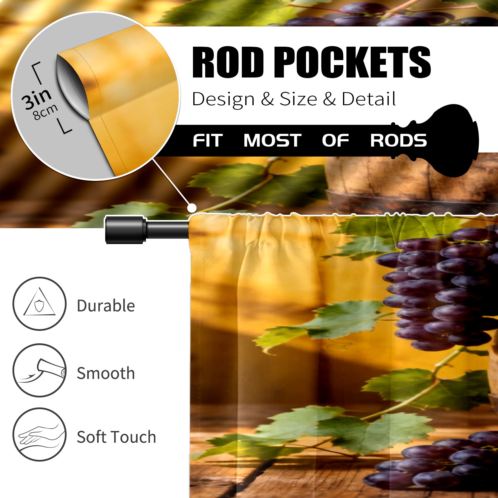 Шторы-панно для дома, декоративные драпировки для гостиной и спальни, легкие и прочные, Winery Grape Pattern1