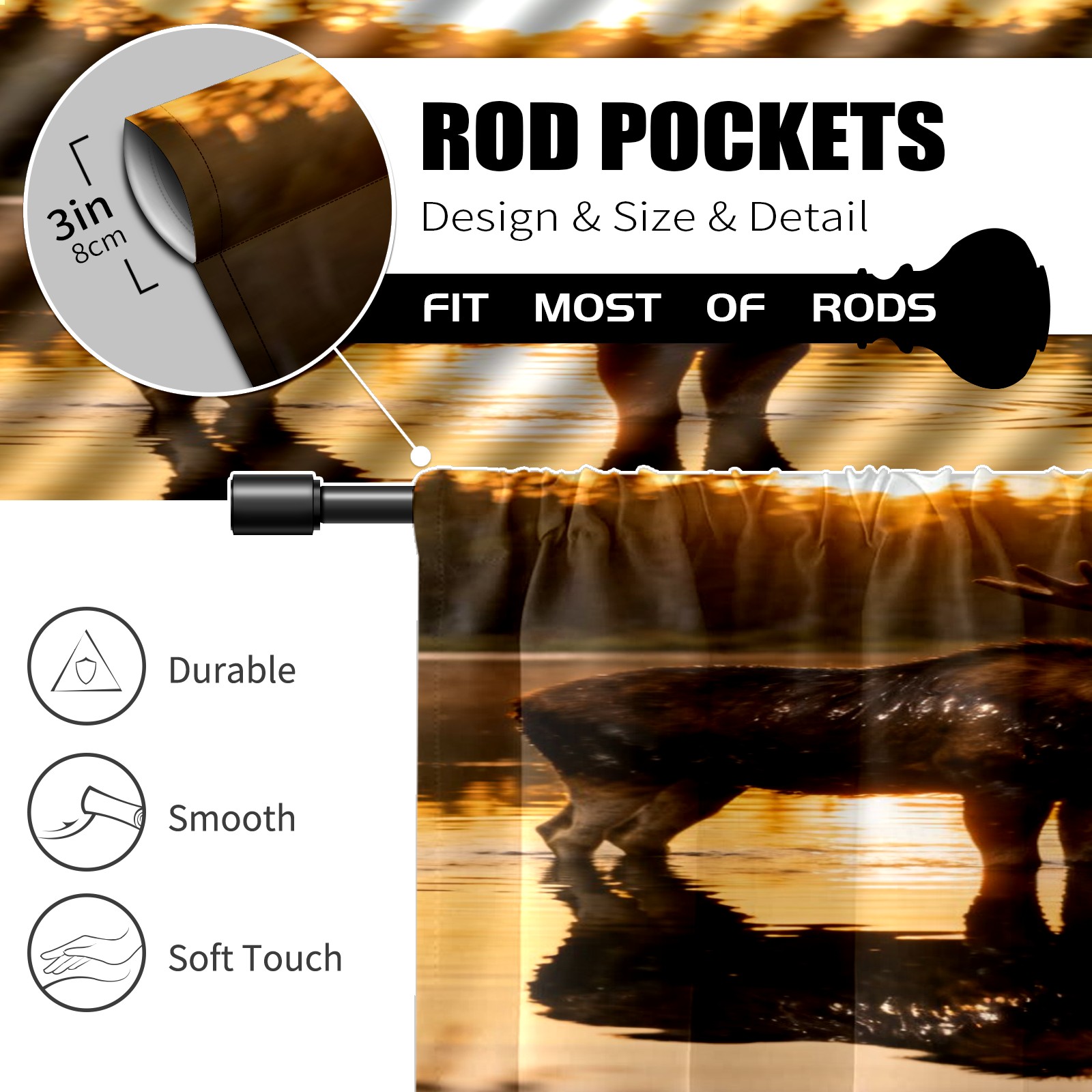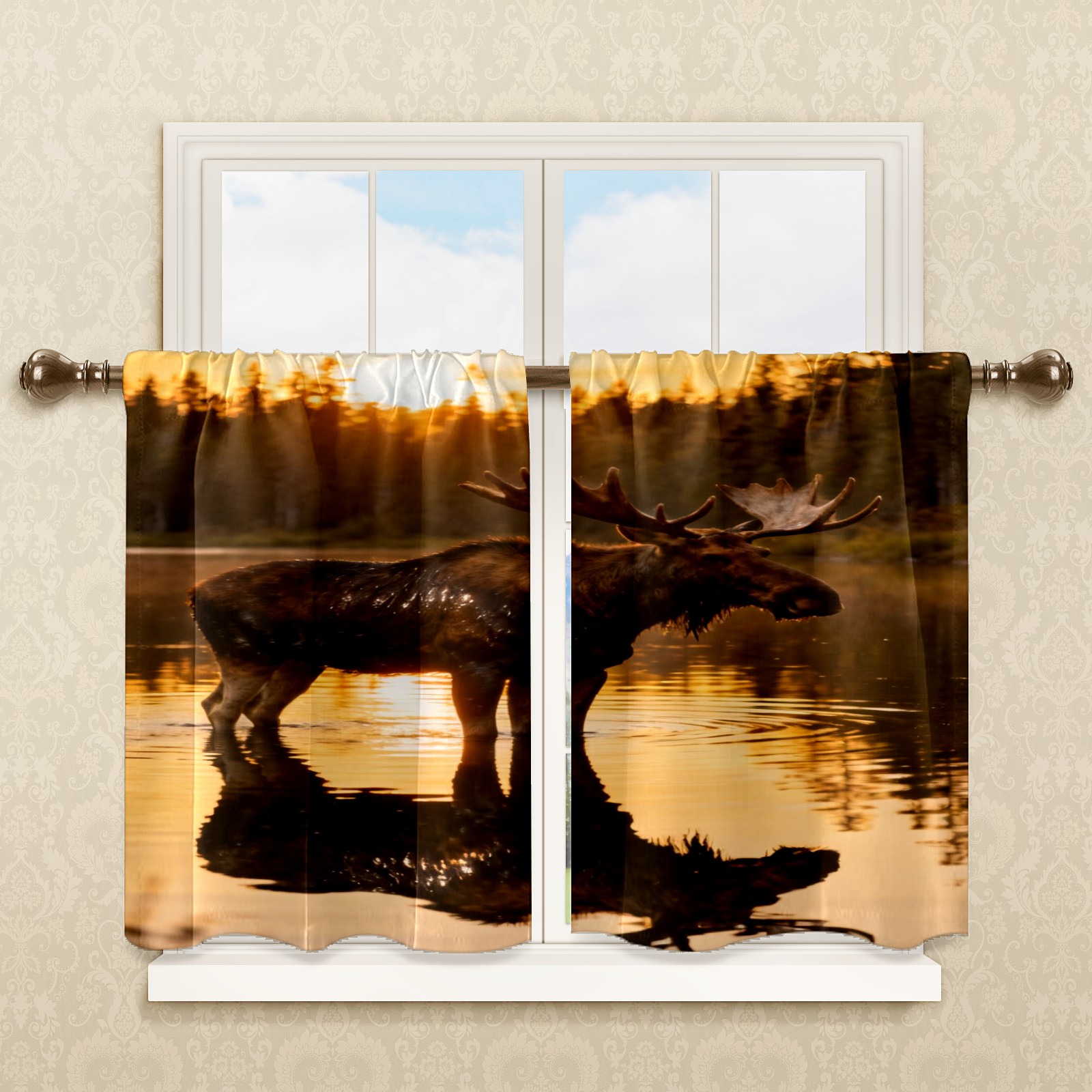 Шторы-панно для дома, декоративные драпировки для гостиной и спальни, легкие и прочные, Moose Reflection Pattern1