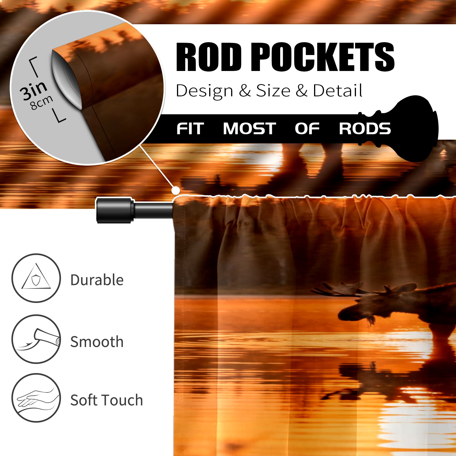 Шторы-панно для дома, декоративные драпировки для гостиной и спальни, легкие и прочные, Moose Reflection Pattern