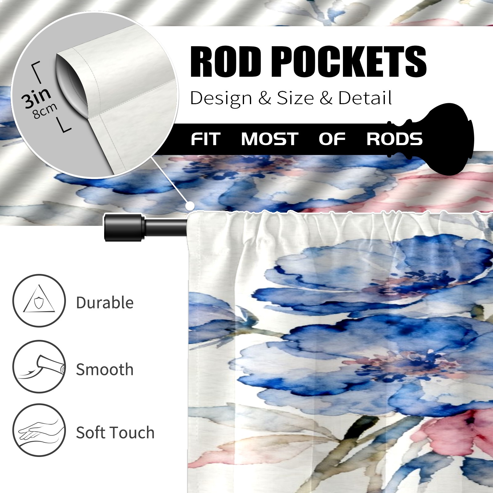Шторы-панно для дома, декоративные драпировки для гостиной и спальни, легкие и прочные, Watercolor Floral Pattern1