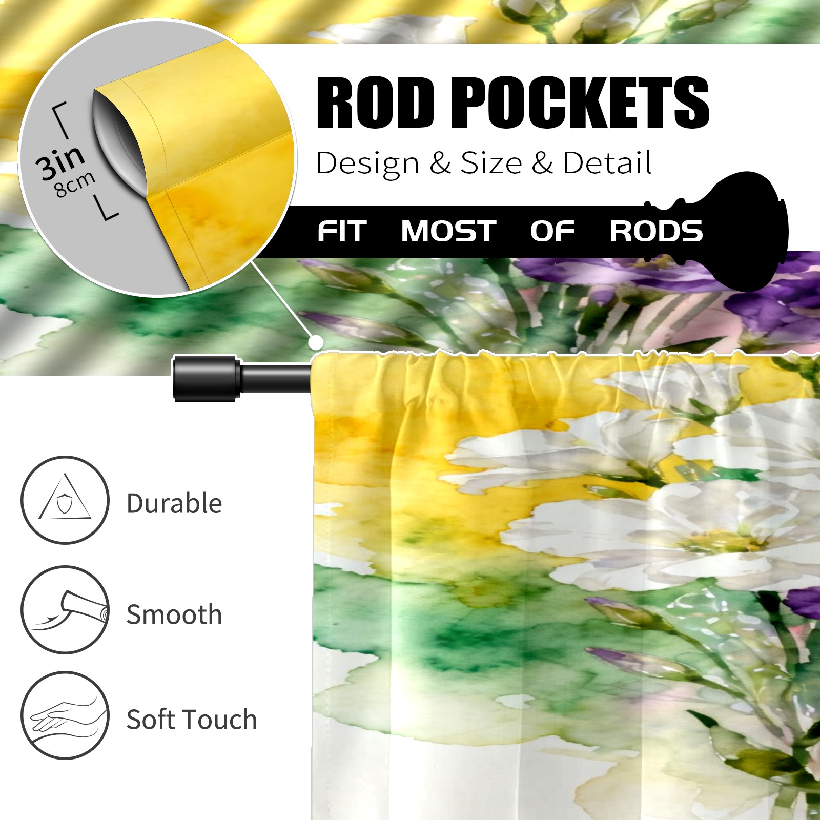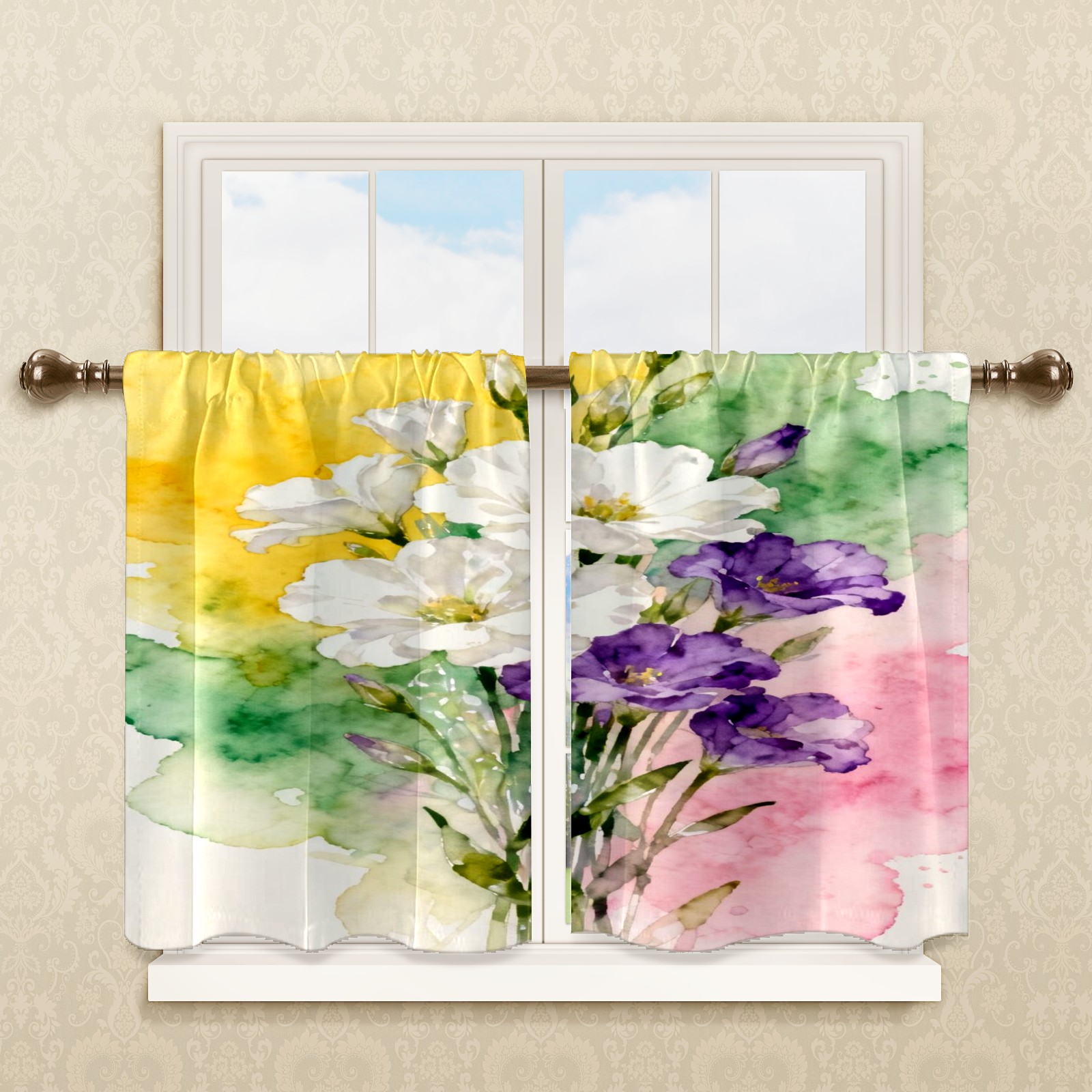 Шторы-панно для дома, декоративные драпировки для гостиной и спальни, легкие и прочные, Watercolor Floral Pattern3