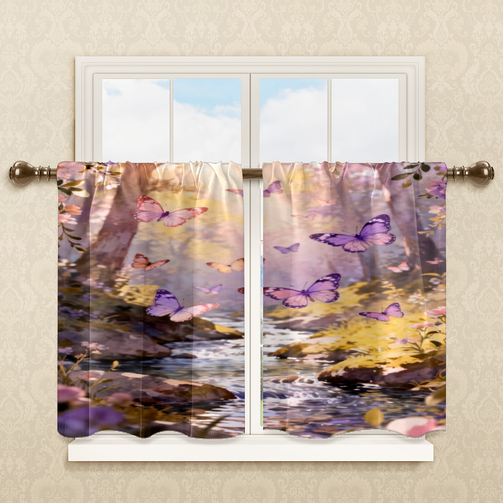 Шторы-панно для дома, декоративные драпировки для гостиной и спальни, легкие и прочные, Pink Purple Butterfly