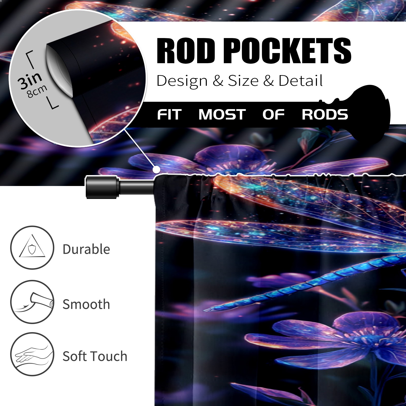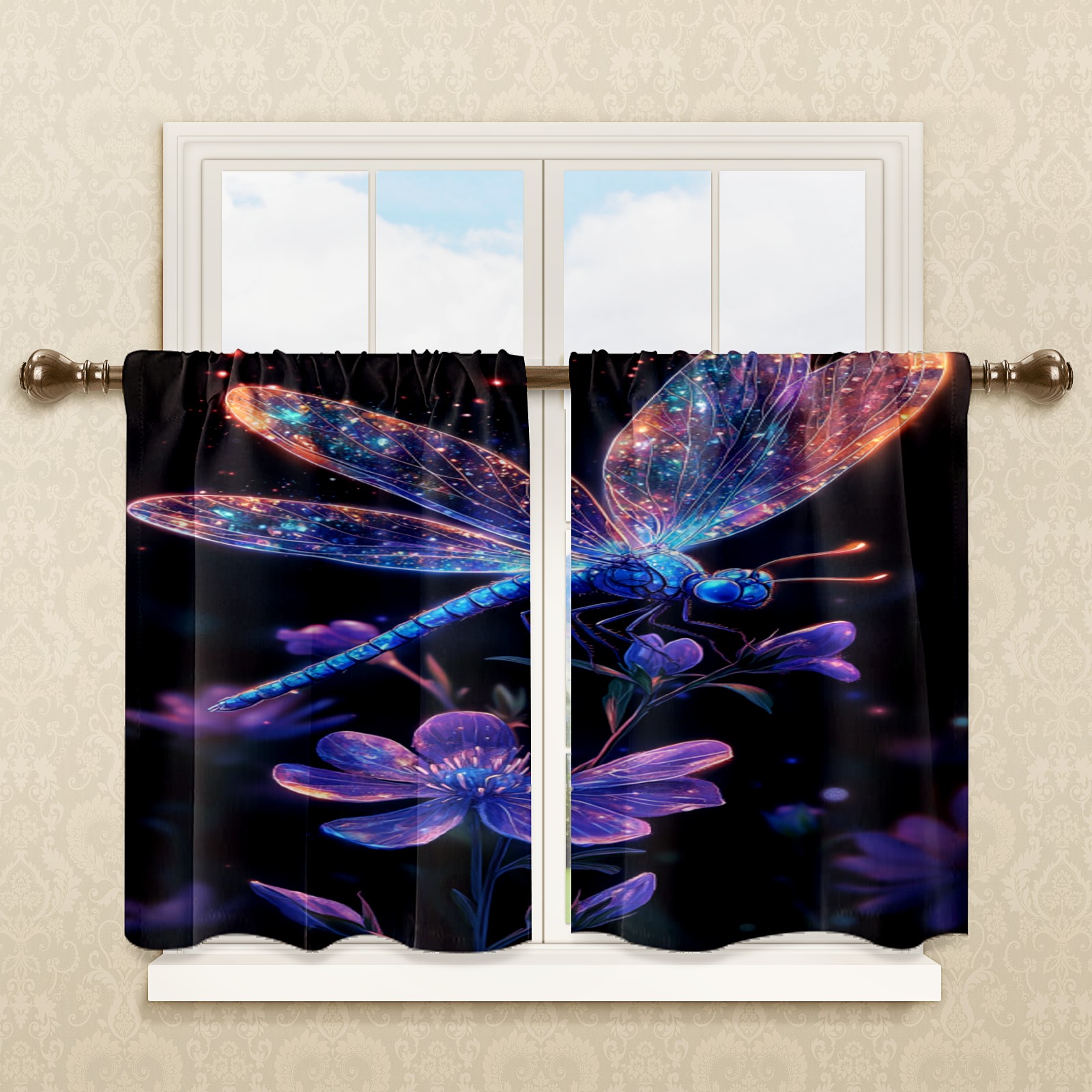Шторы-панно для дома, декоративные драпировки для гостиной и спальни, легкие и прочные, Dragonfly Floral Pattern2