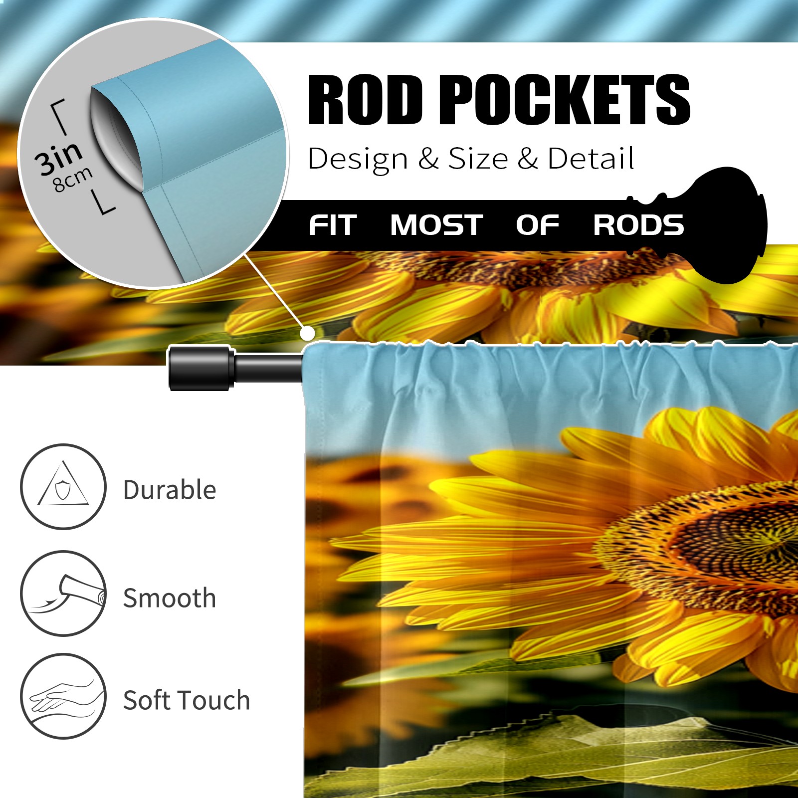 Шторы-панно для дома, декоративные драпировки для гостиной и спальни, легкие и прочные, Sunflower Pattern2