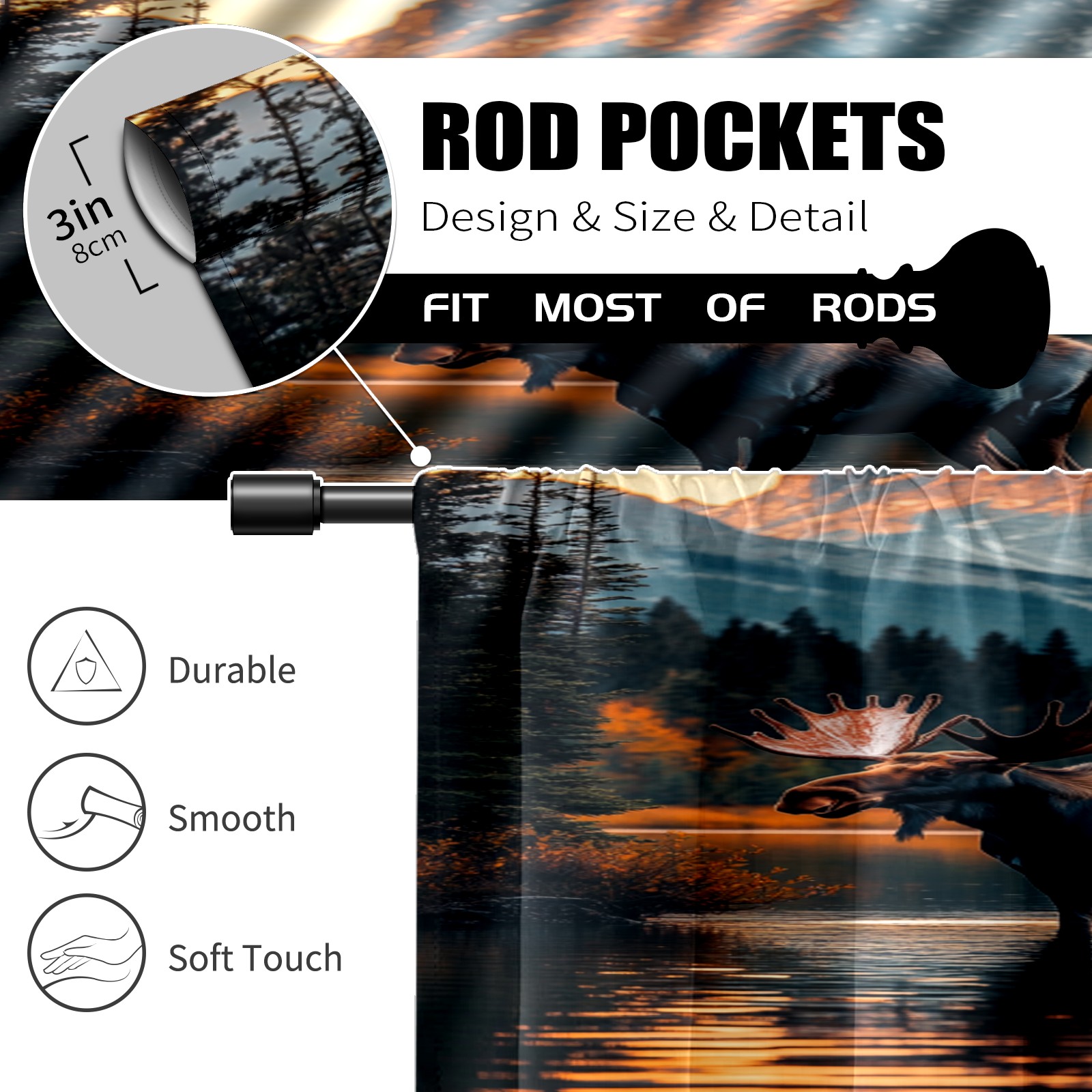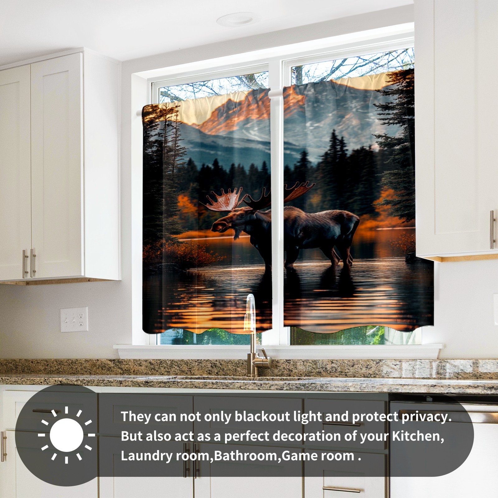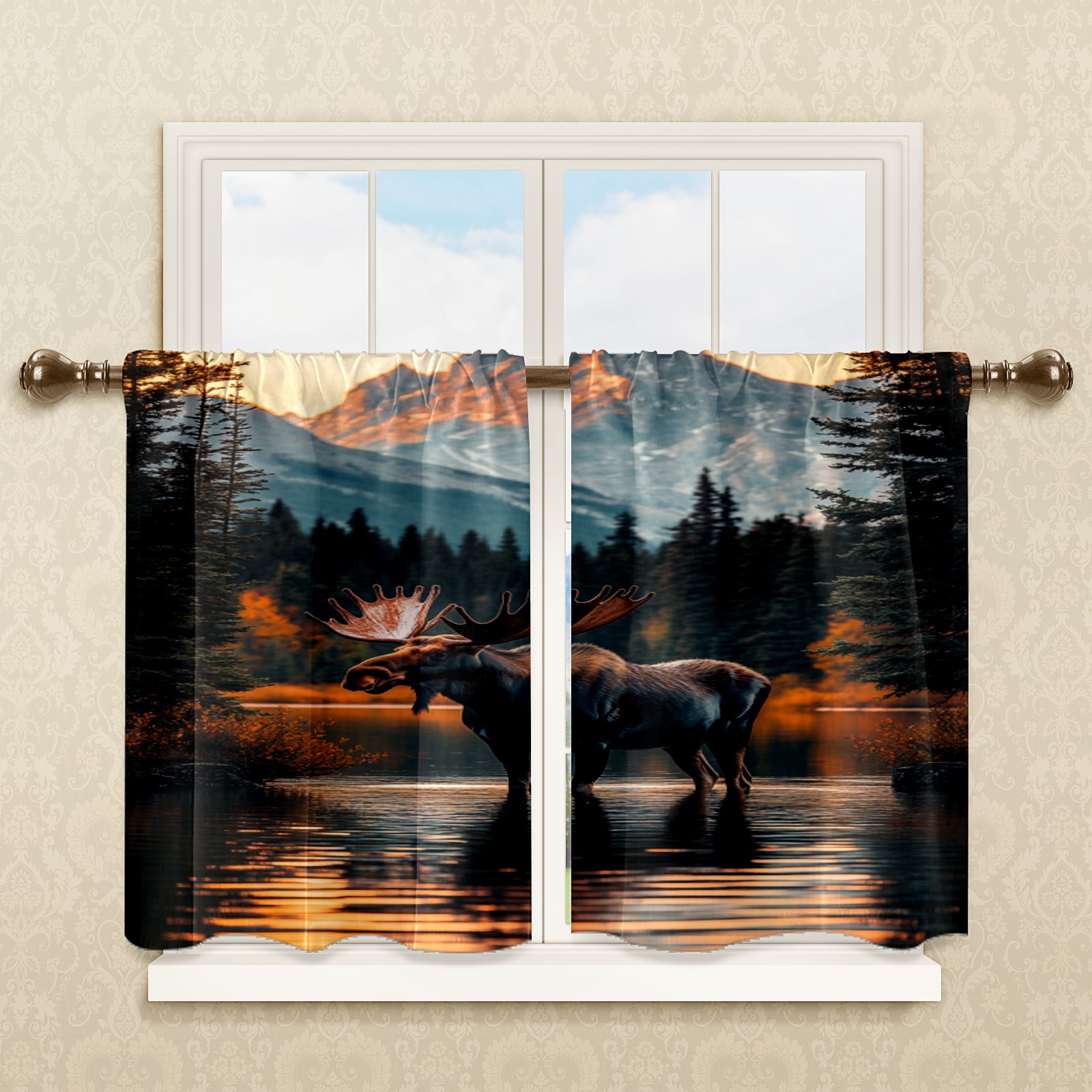 Шторы-панно для дома, декоративные драпировки для гостиной и спальни, легкие и прочные, Moose Reflection Pattern3
