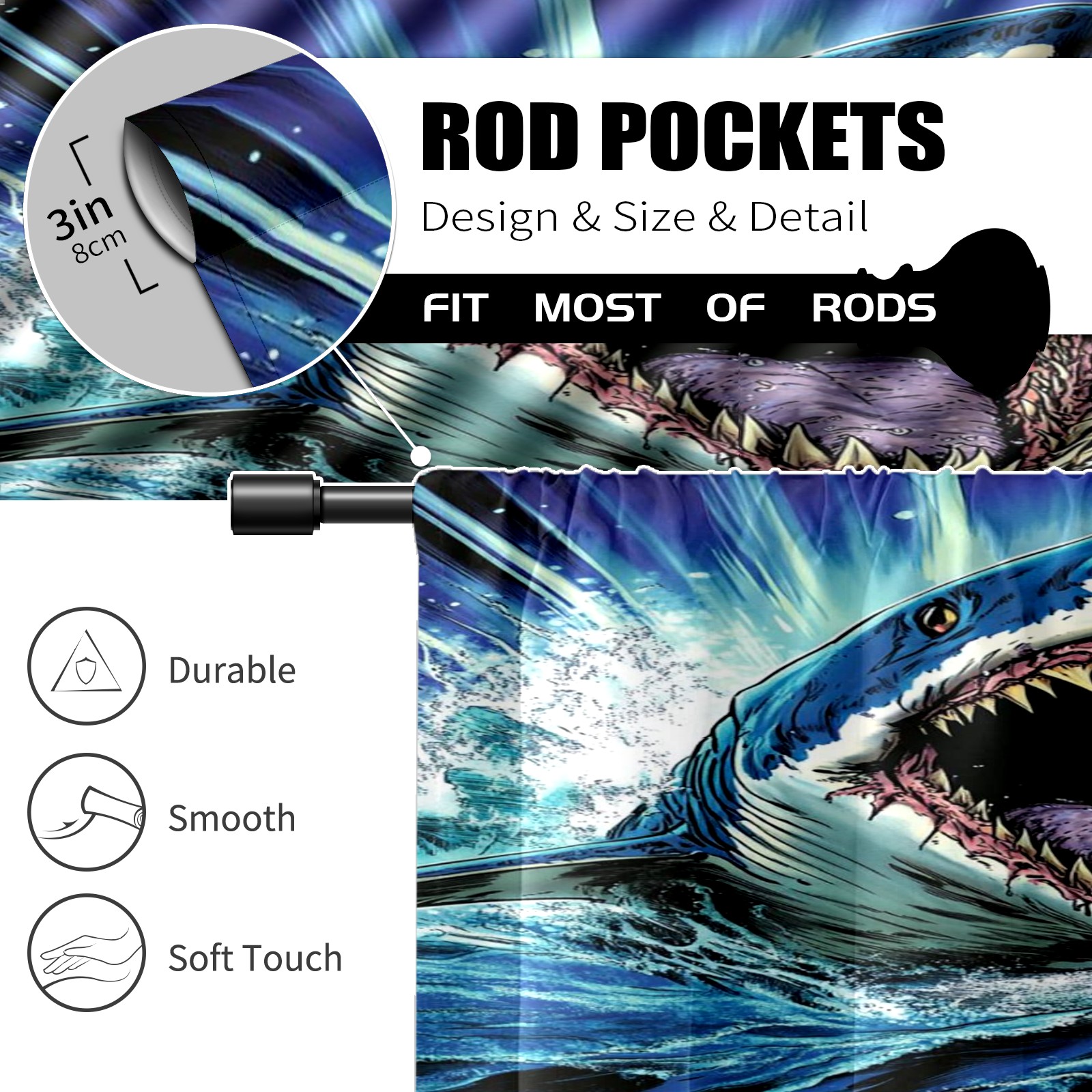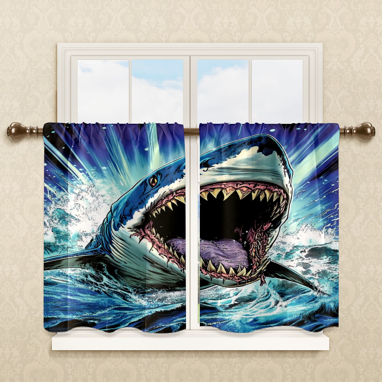 Шторы-панно для дома, декоративные драпировки для гостиной и спальни, легкие и прочные, Blue Shark