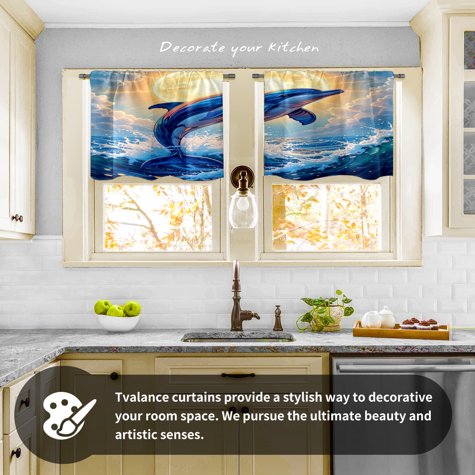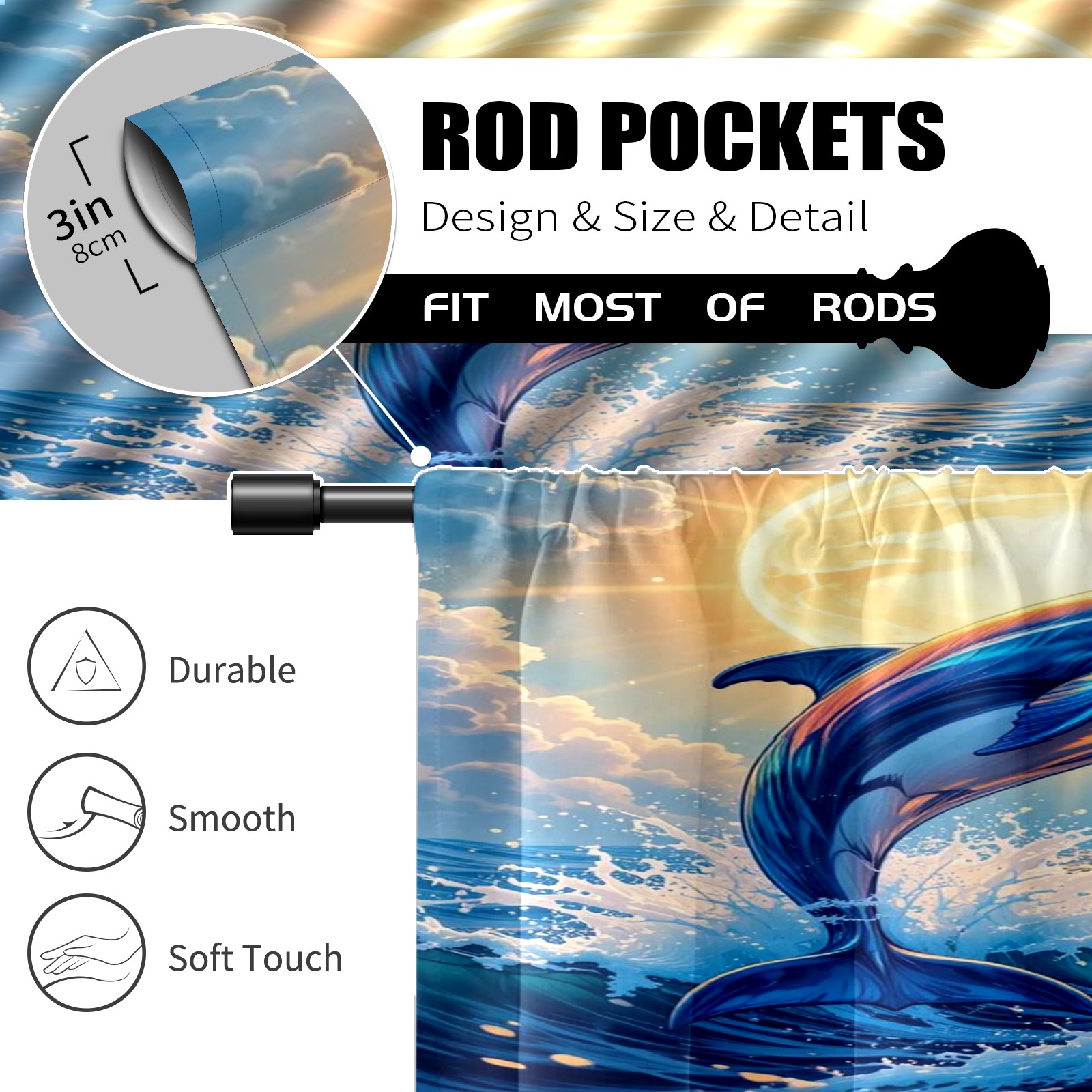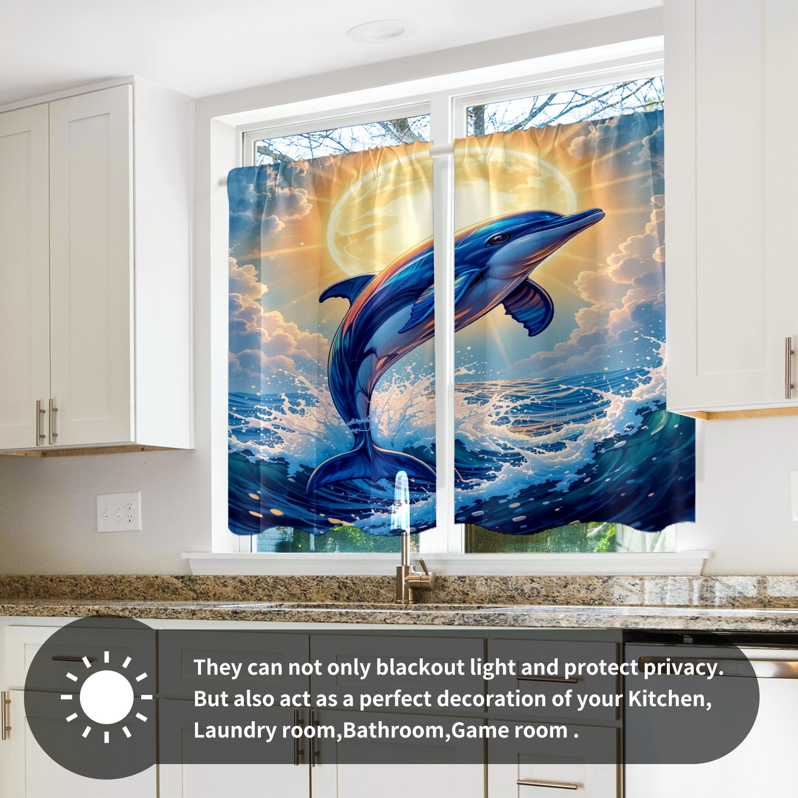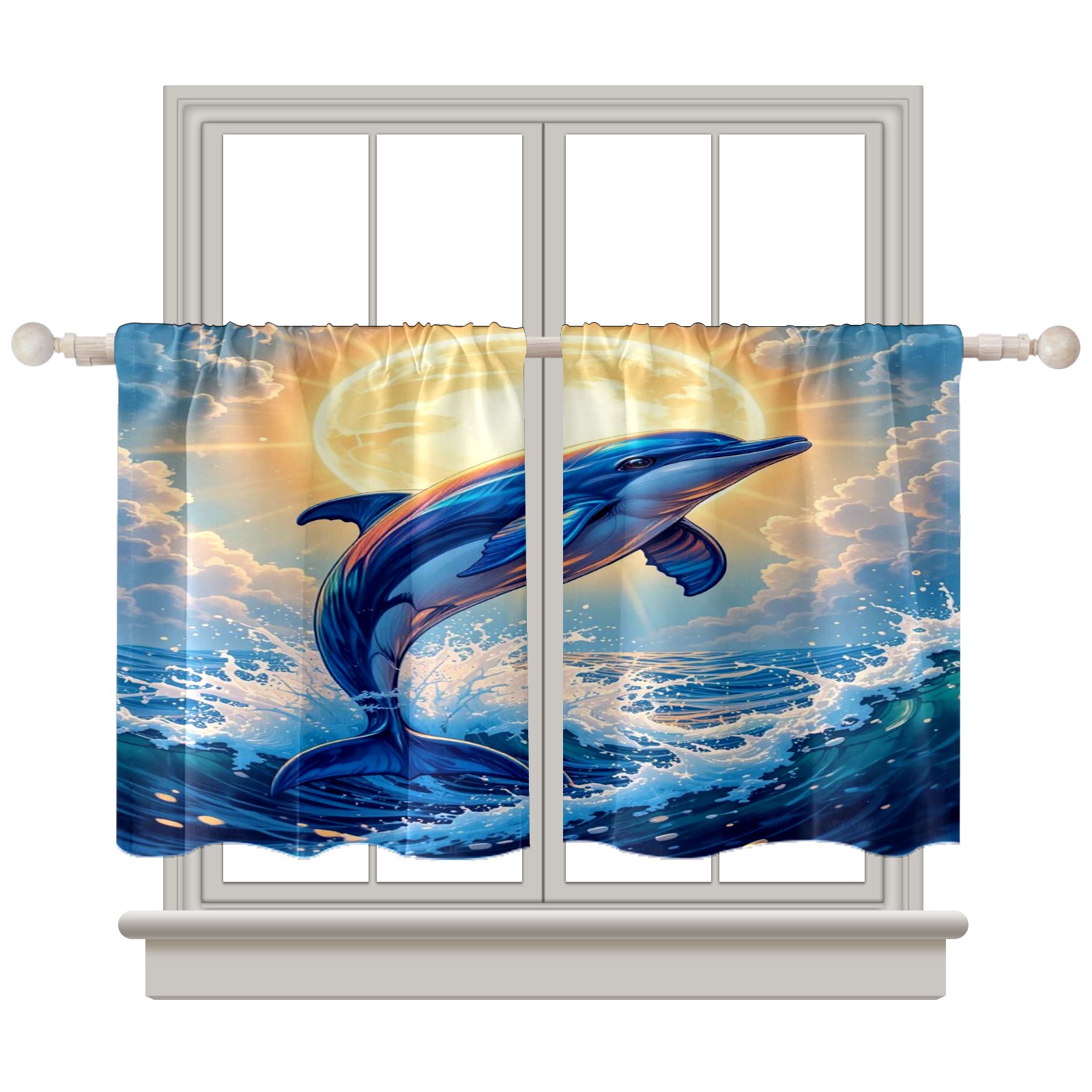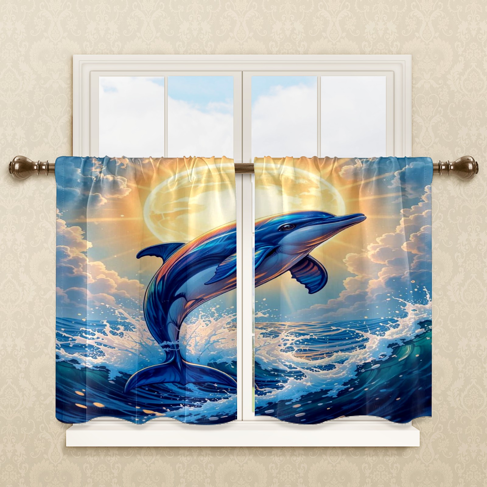 Шторы-панно для дома, декоративные драпировки для гостиной и спальни, легкие и прочные, Blue Dolphin Shining Sun