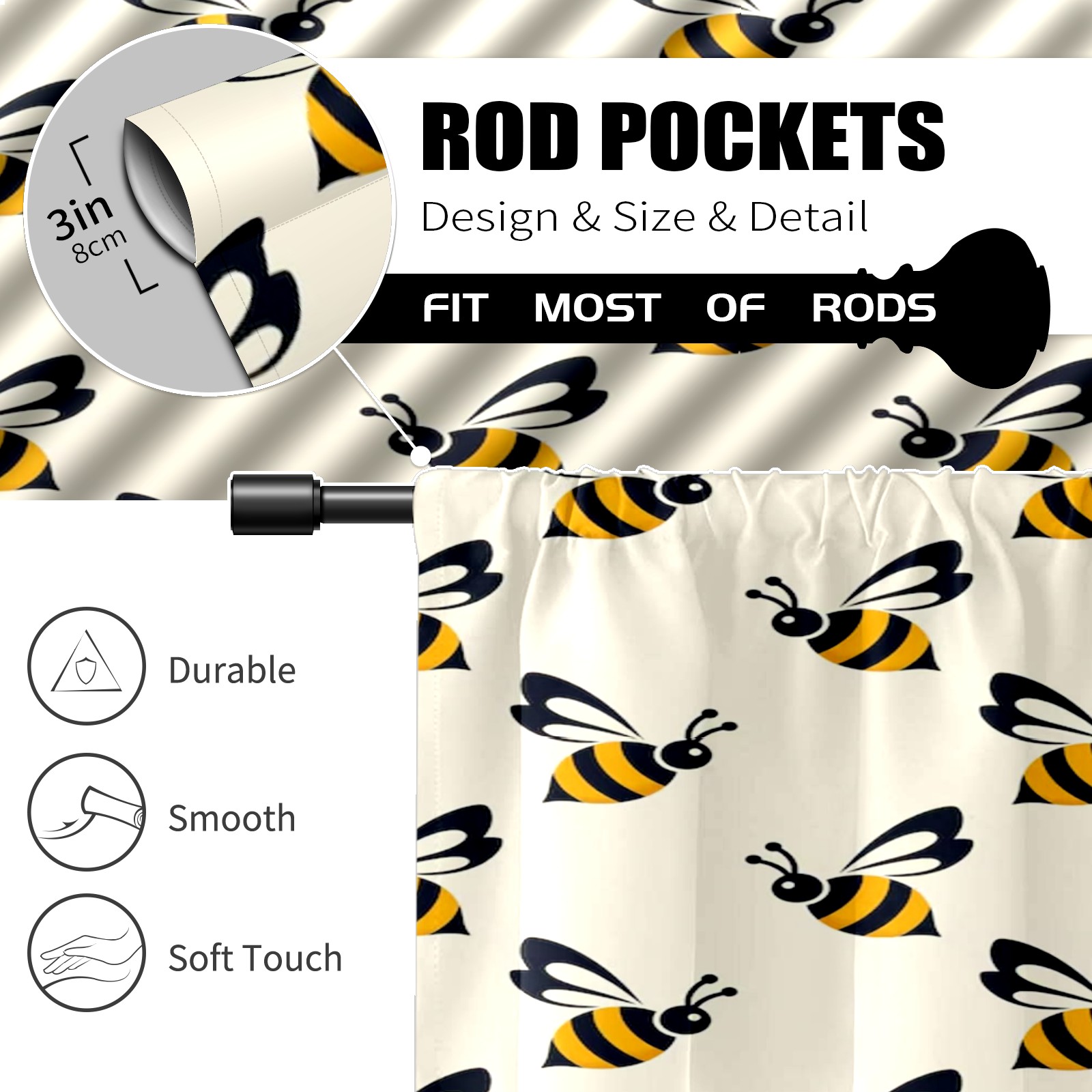 Шторы-панно для дома, декоративные драпировки для гостиной и спальни, легкие и прочные, Yellow Black Bees