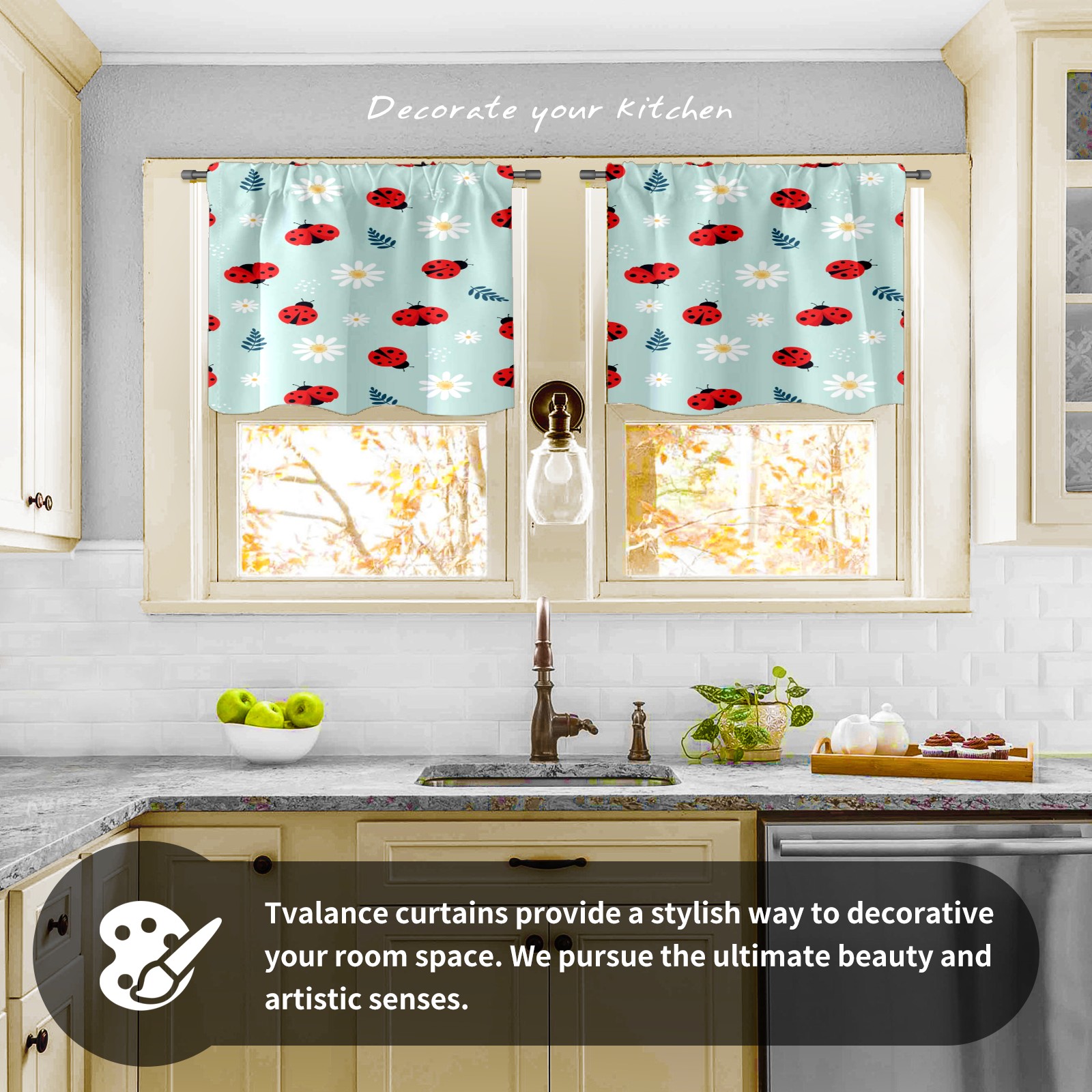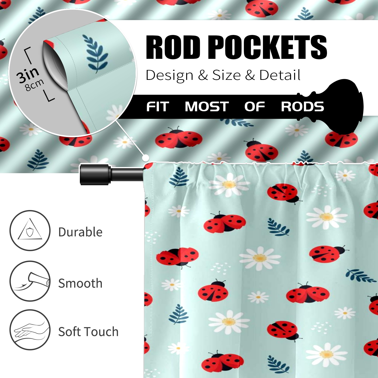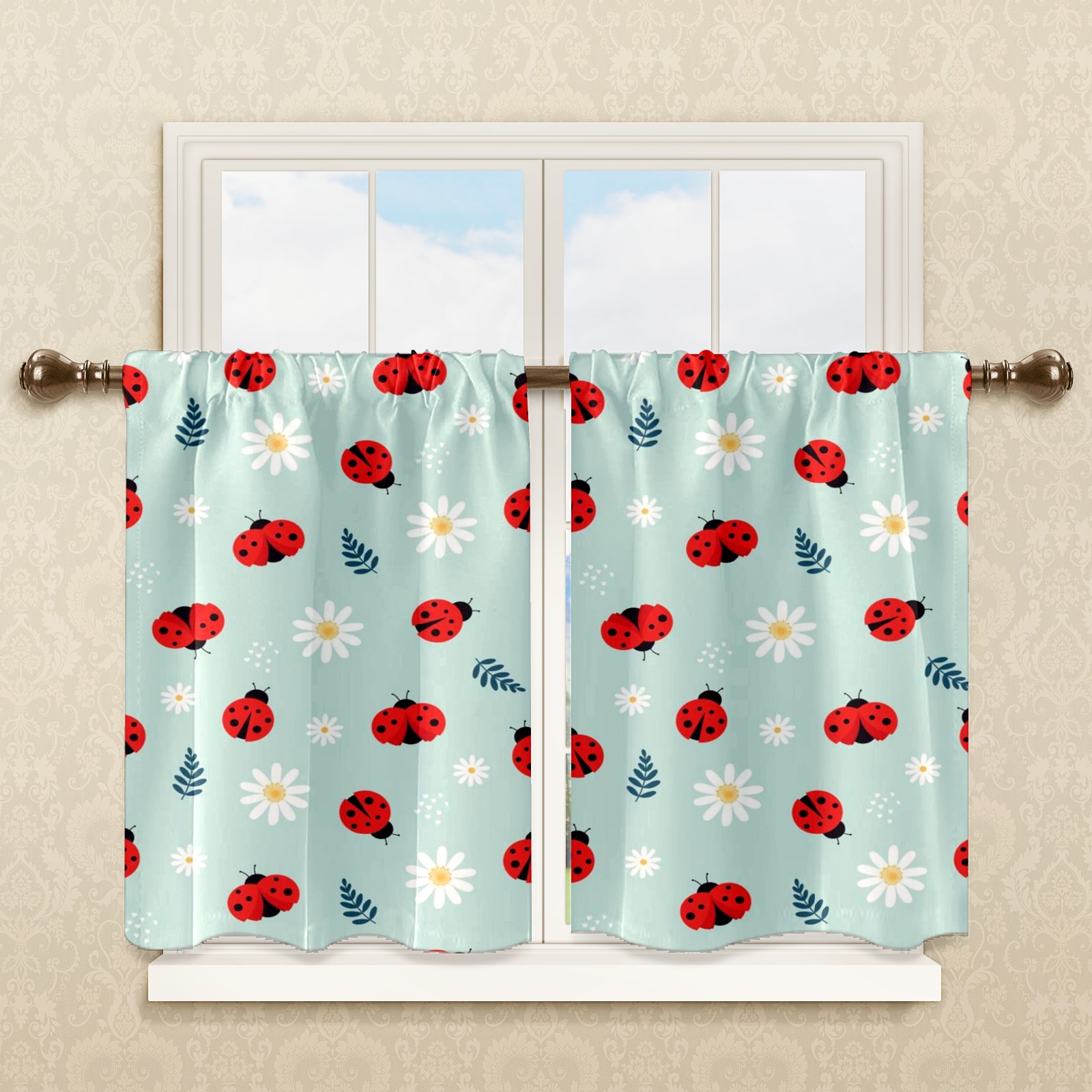 Шторы-панно для дома, декоративные драпировки для гостиной и спальни, легкие и прочные, Blue Ladybug Floral