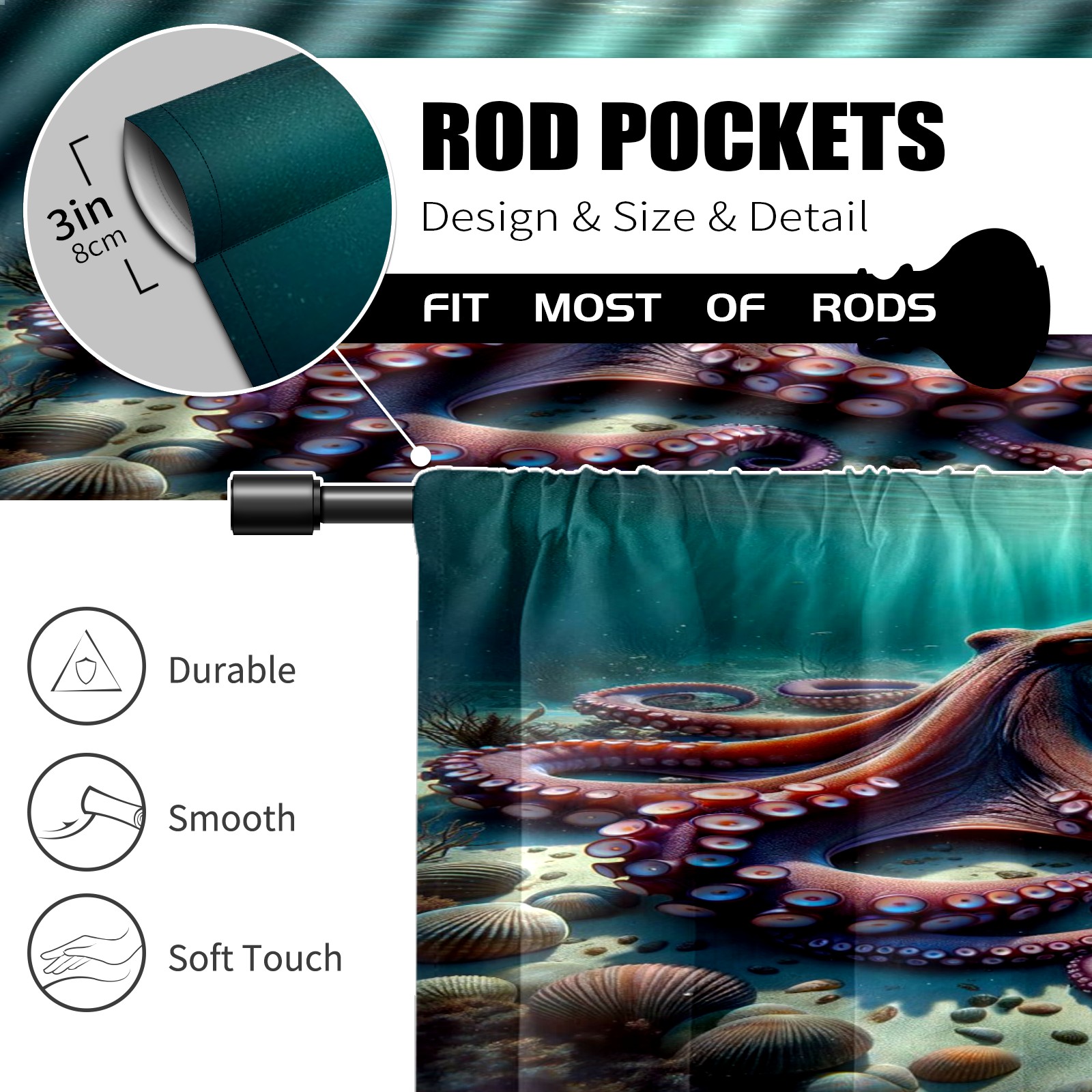 Шторы-панно для дома, декоративные драпировки для гостиной и спальни, легкие и прочные, Underwater Octopus