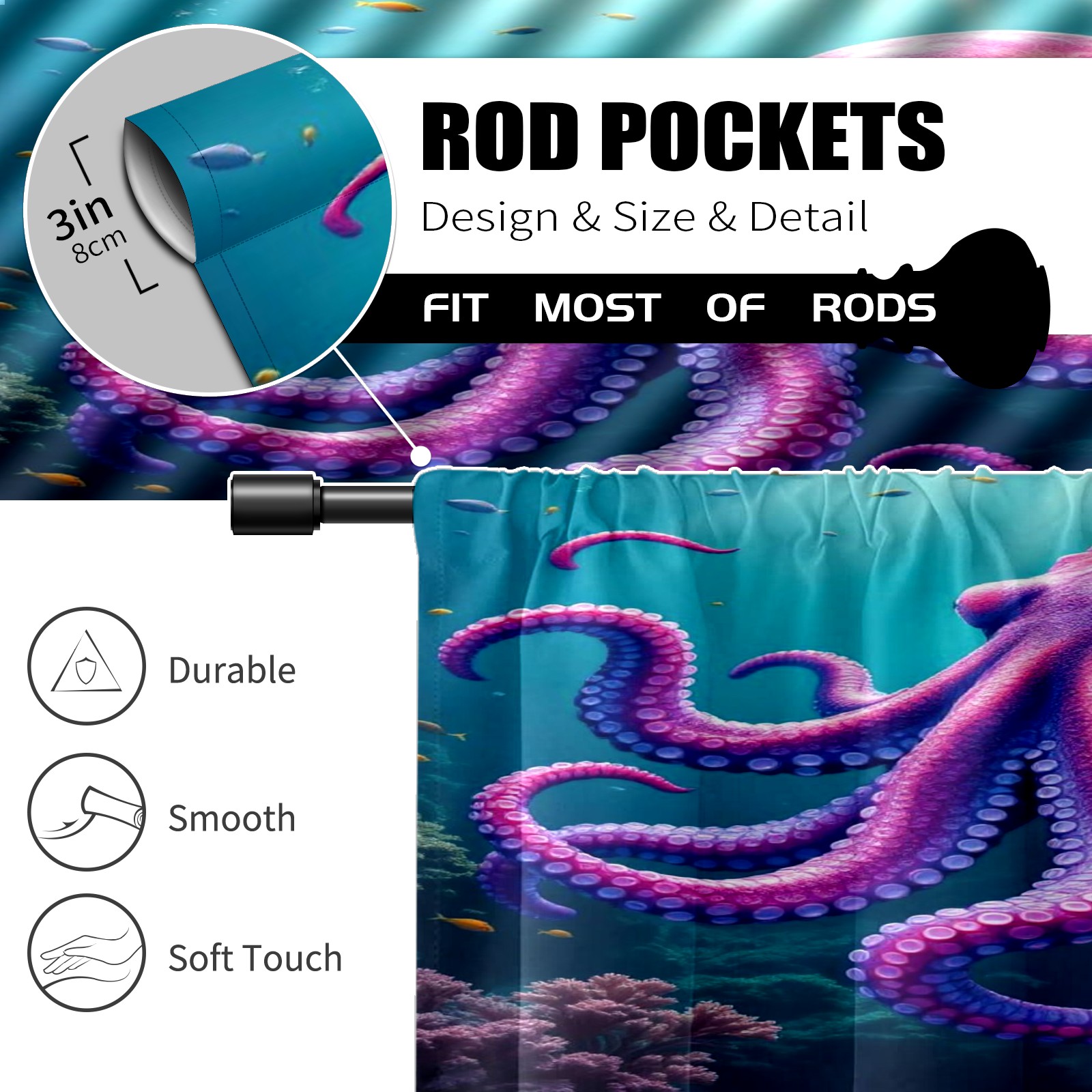 Шторы-панно для дома, декоративные драпировки для гостиной и спальни, легкие и прочные, Purple Octopus