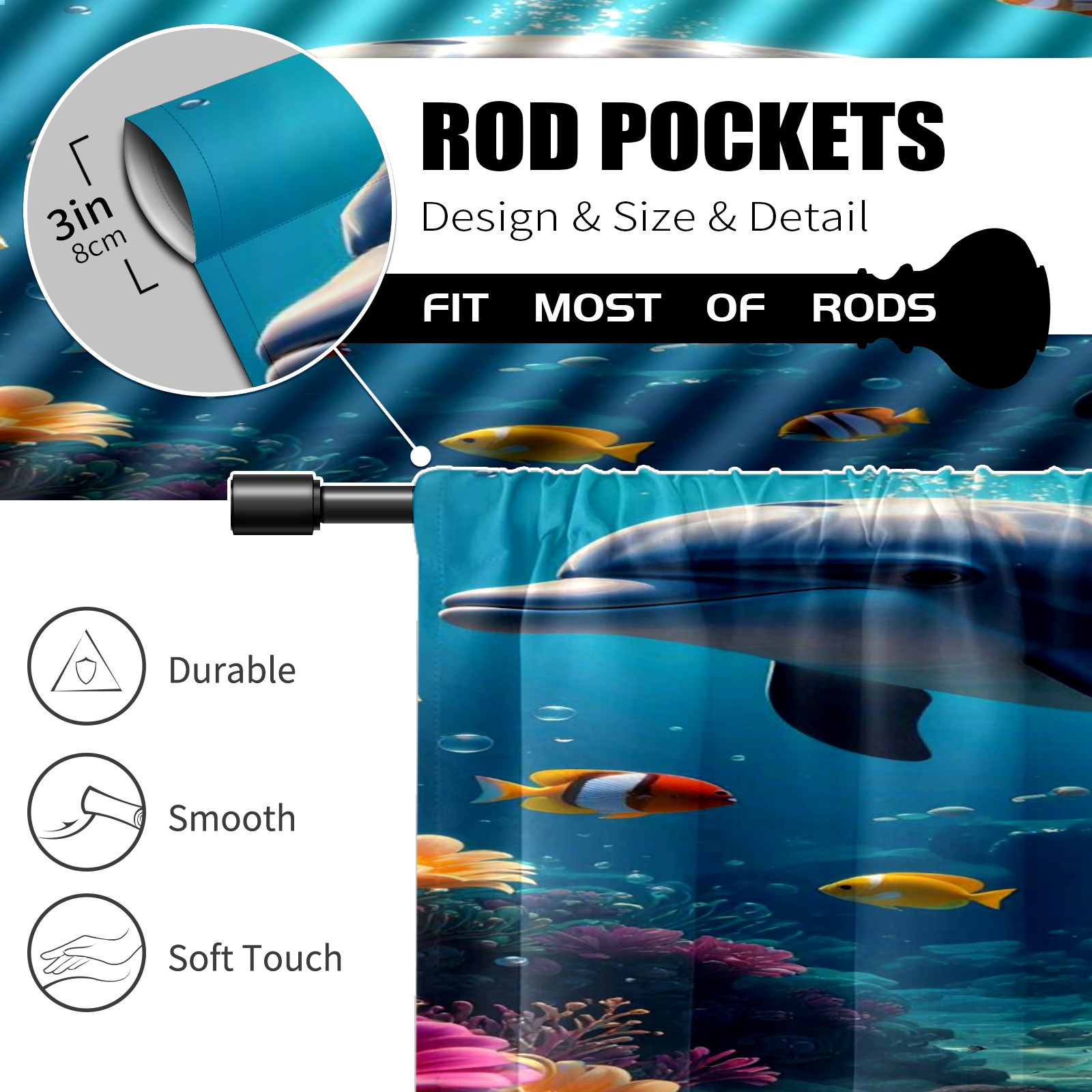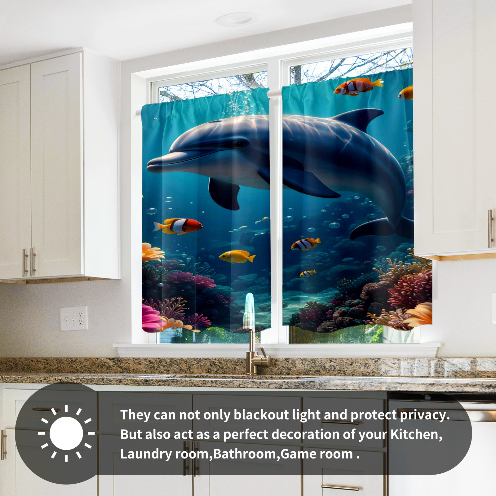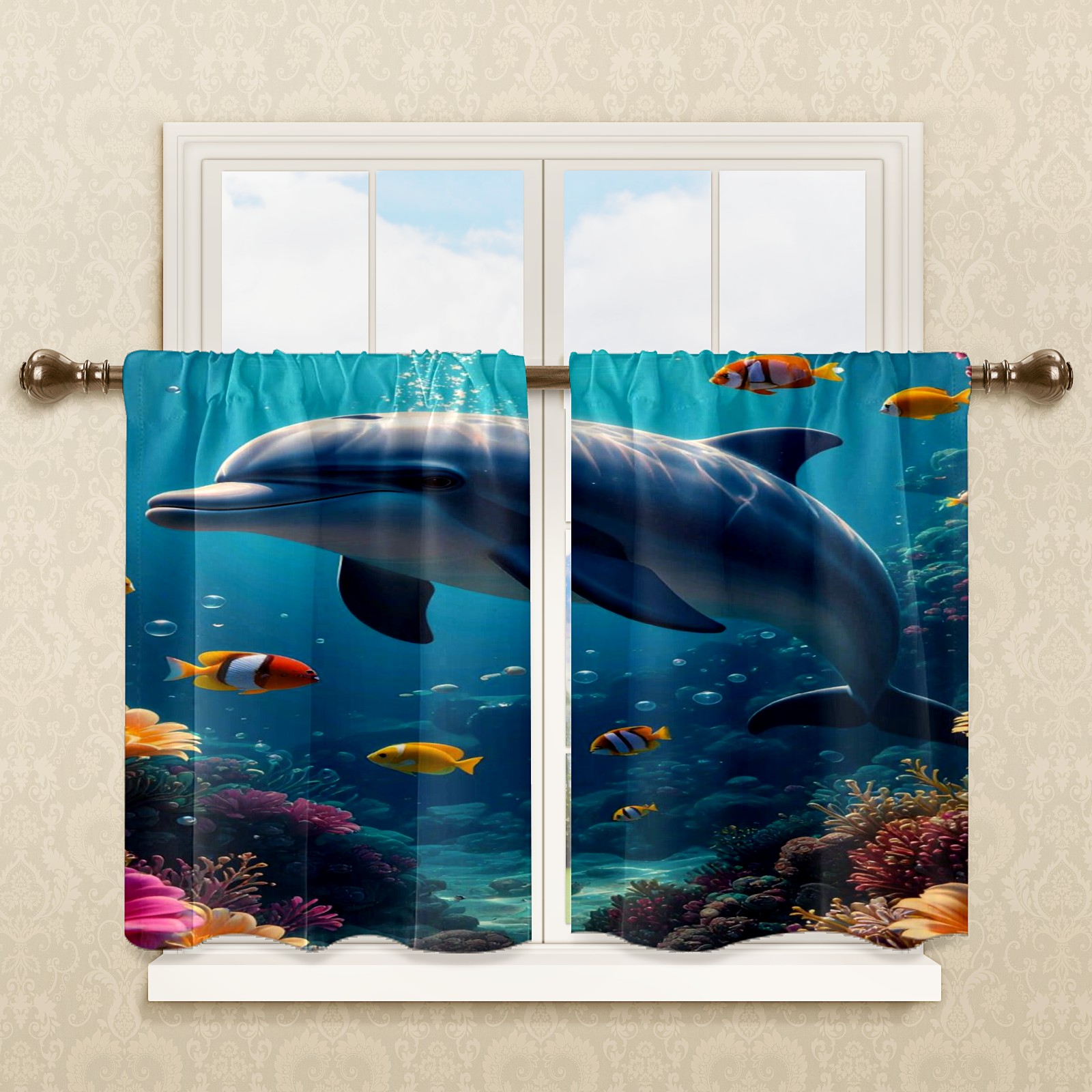 Шторы-панно для дома, декоративные драпировки для гостиной и спальни, легкие и прочные, Blue Dolphin Fishes