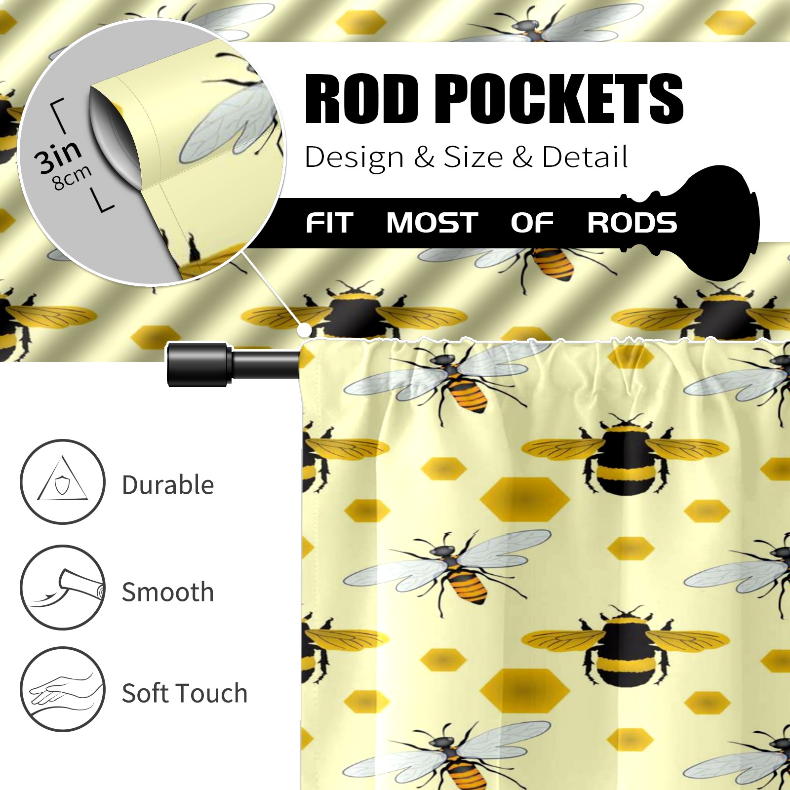 Шторы-панно для дома, декоративные драпировки для гостиной и спальни, легкие и прочные, Yellow Honey Bees