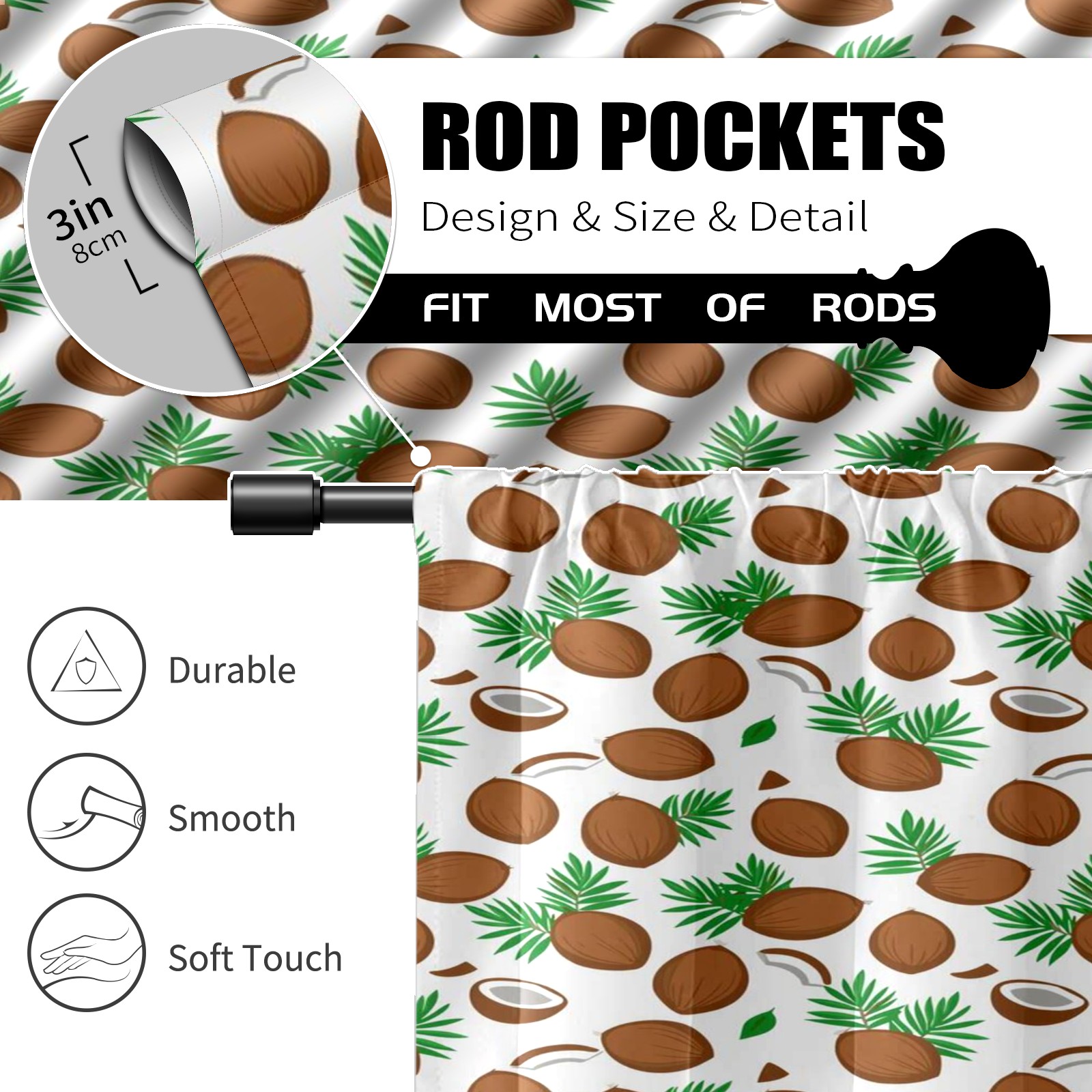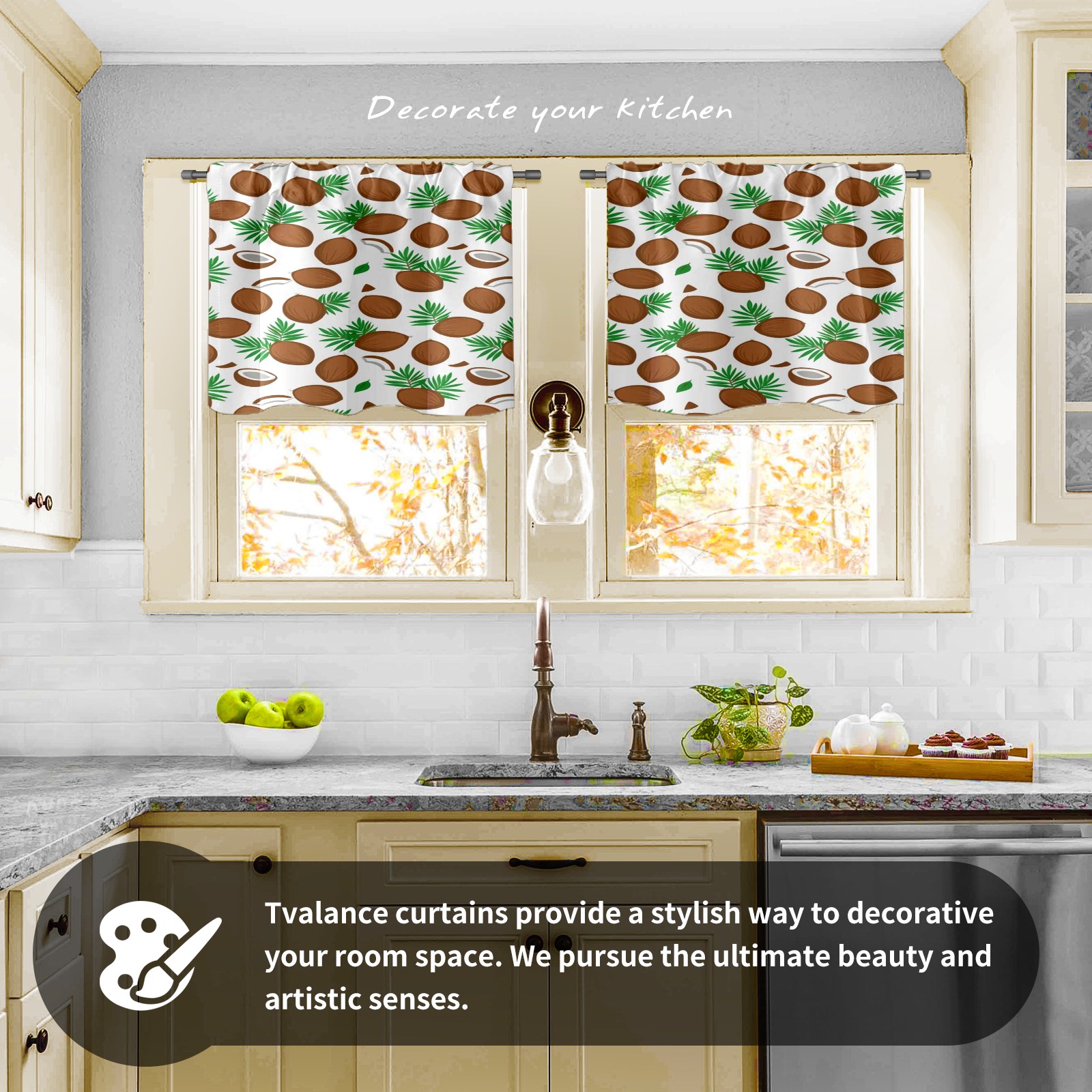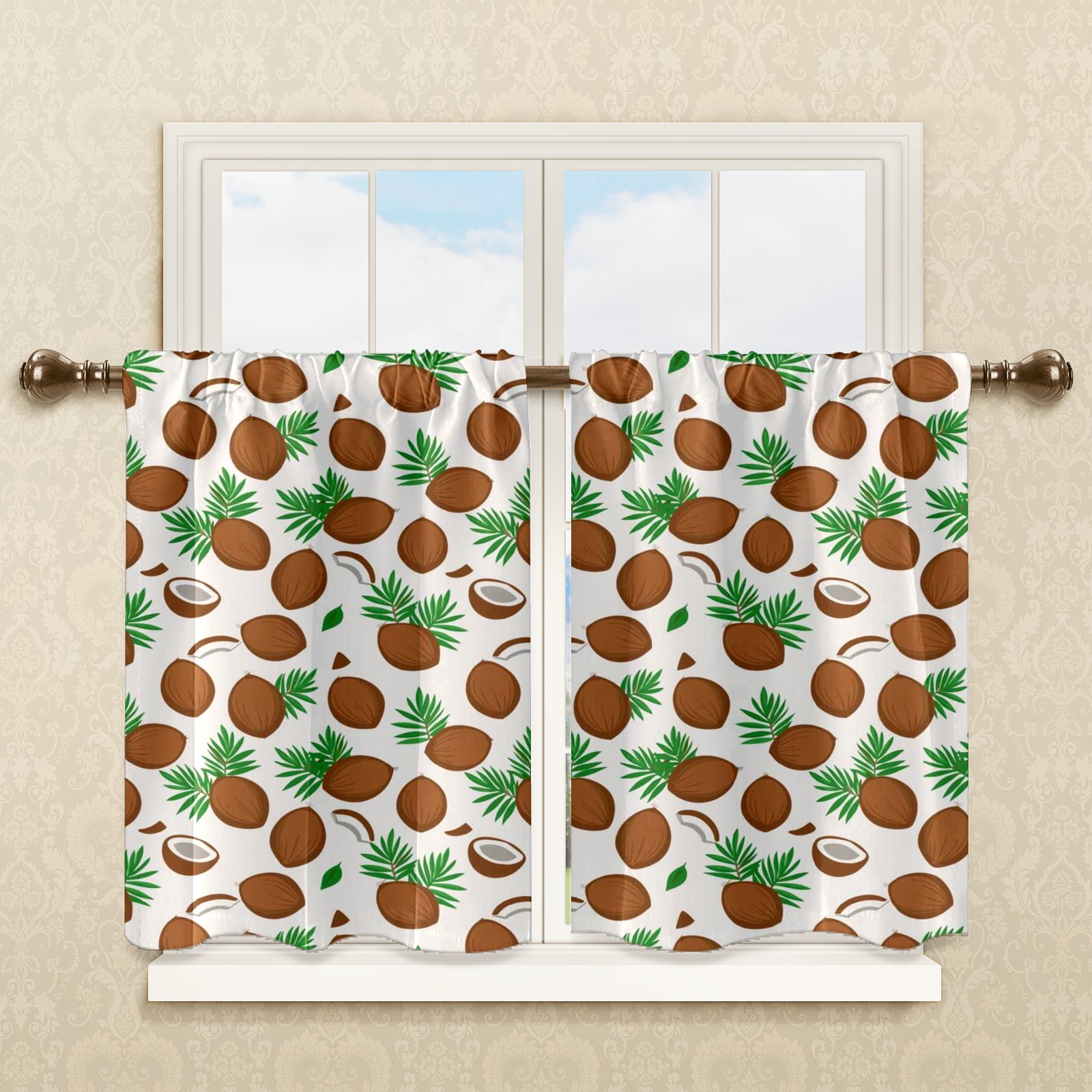 Шторы-панно для дома, декоративные драпировки для гостиной и спальни, легкие и прочные, Green Leaves Brown Coconuts