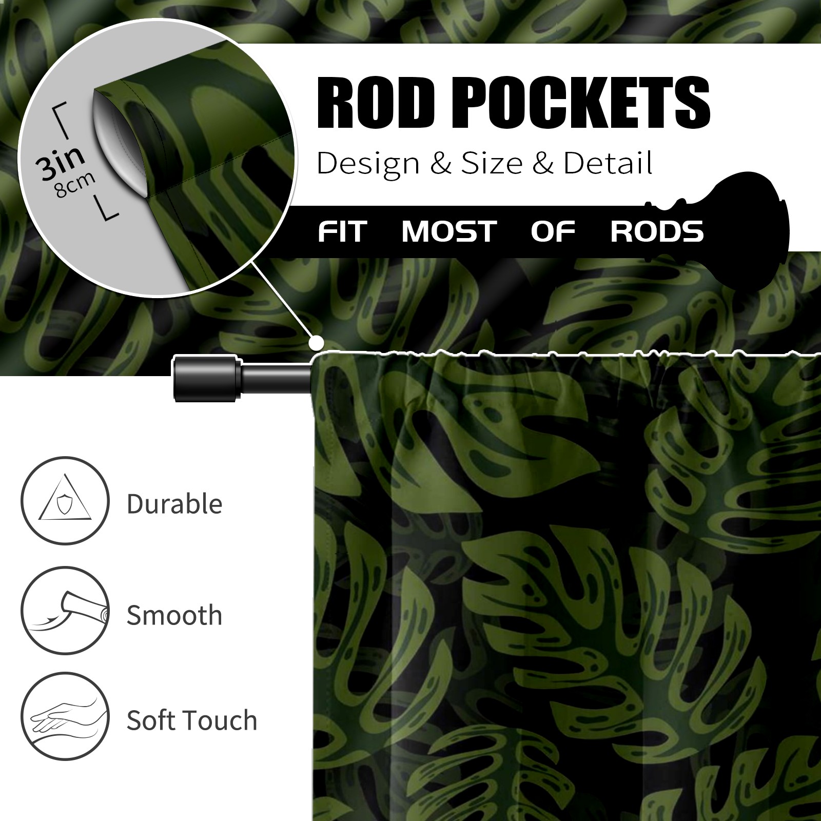 Шторы-панно для дома, декоративные драпировки для гостиной и спальни, легкие и прочные, Dark Green Tropical Leaves
