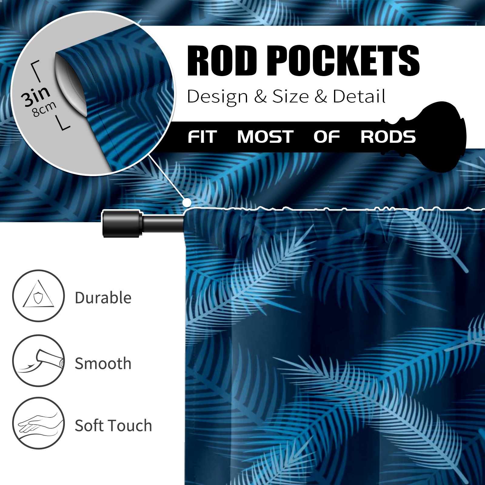 Шторы-панно для дома, декоративные драпировки для гостиной и спальни, легкие и прочные, Blue Palm Leaves