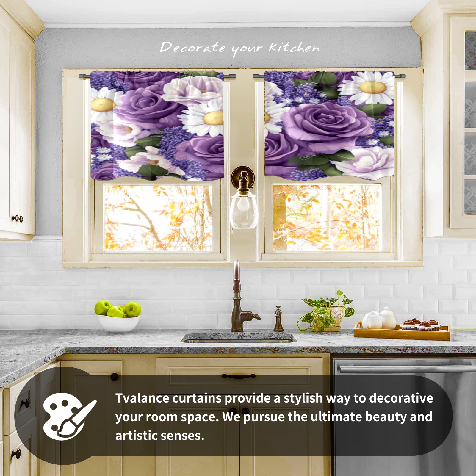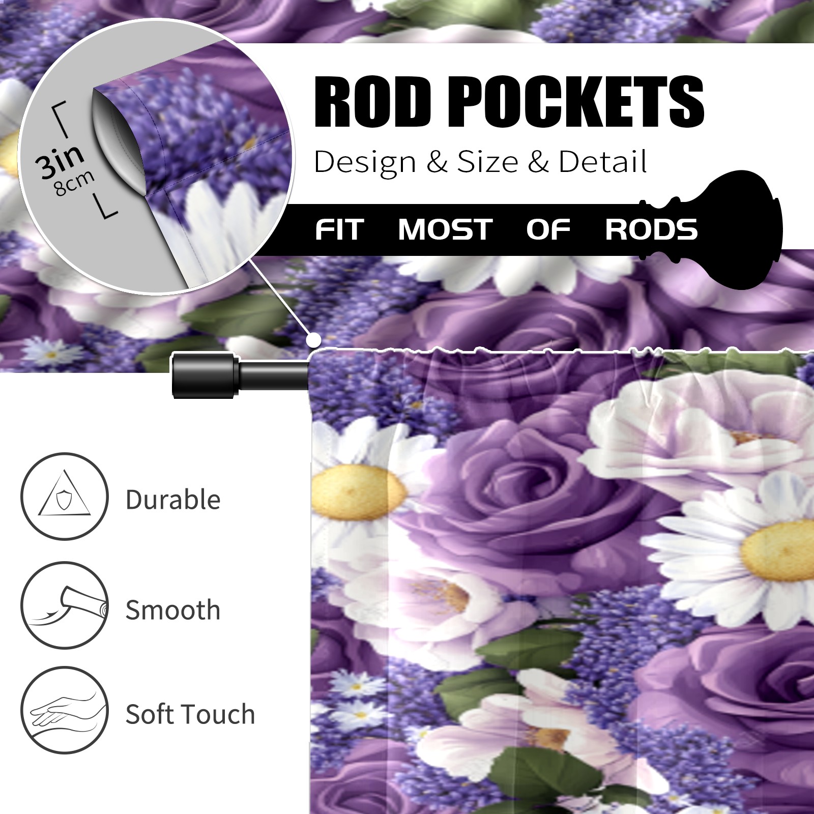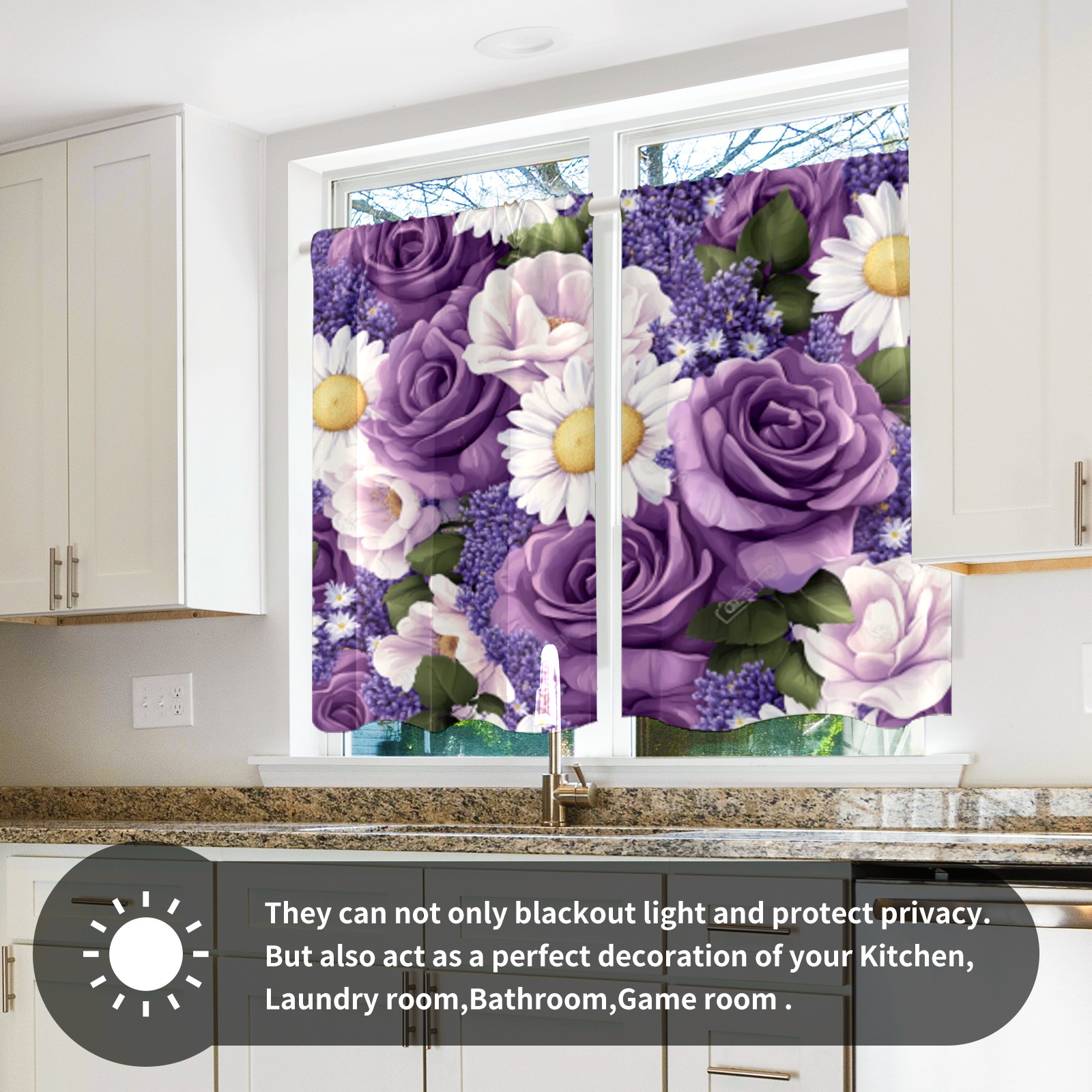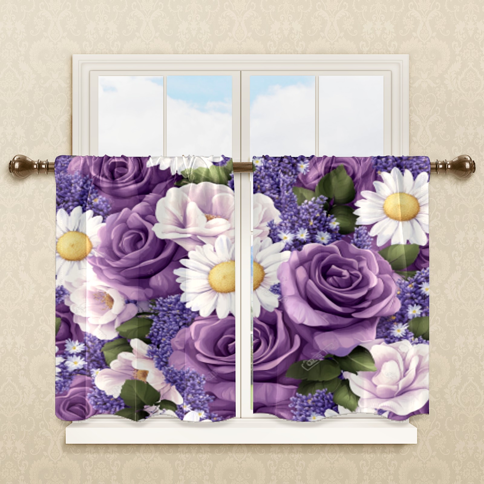 Шторы-панно для дома, декоративные драпировки для гостиной и спальни, легкие и прочные, Purple Rose & Daisy Pattern