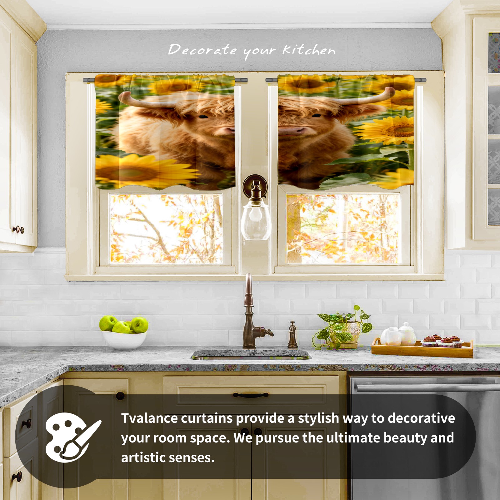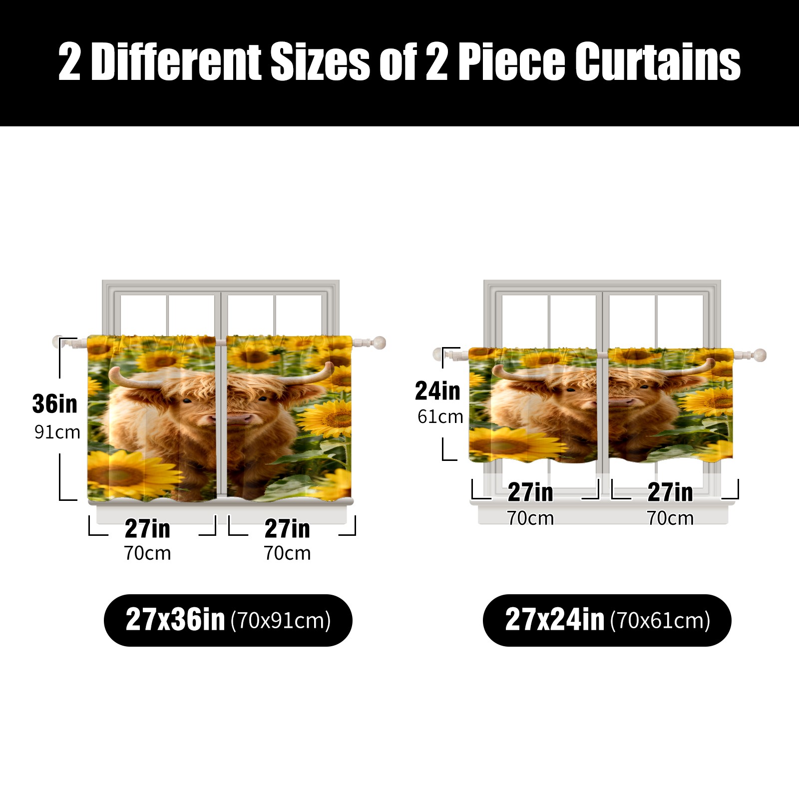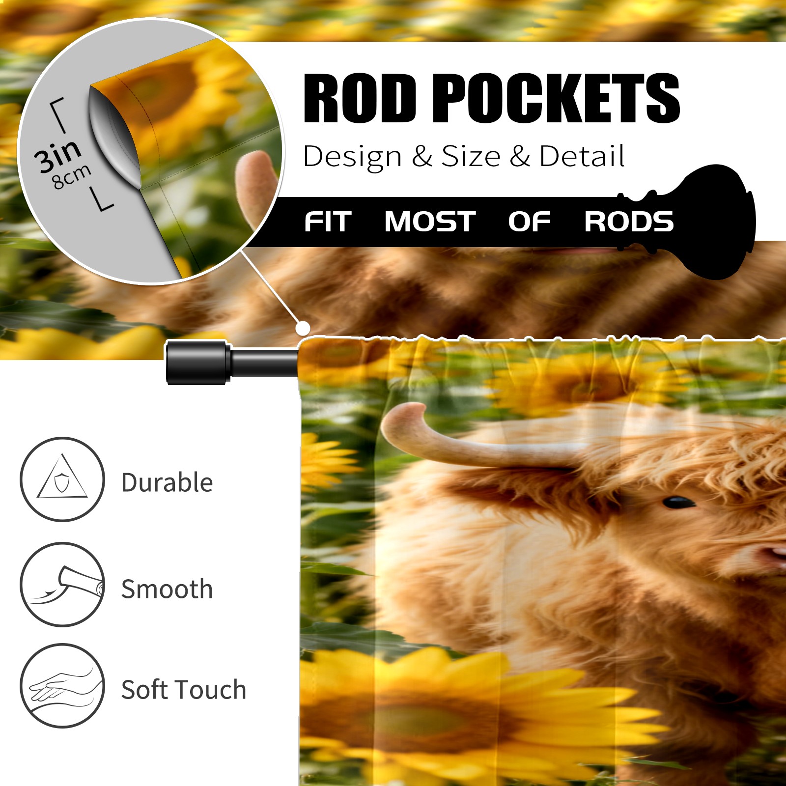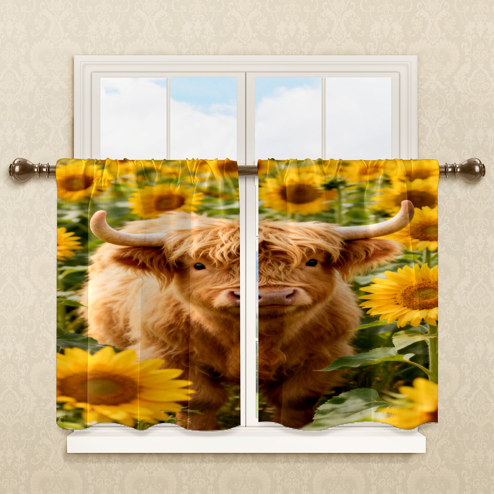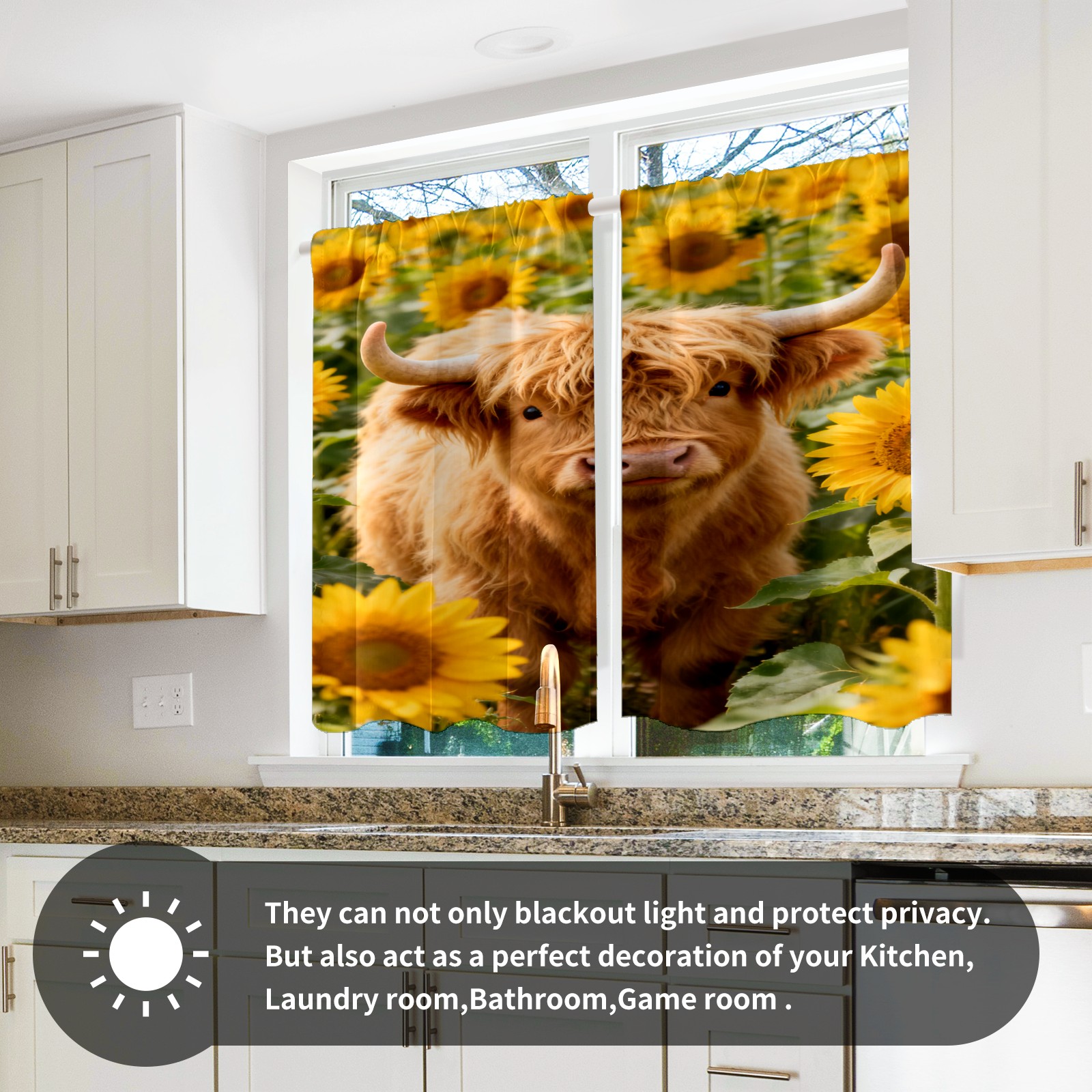 Шторы-панно для дома, декоративные драпировки для гостиной и спальни, легкие и прочные, Highland Cattle Sunflower Field