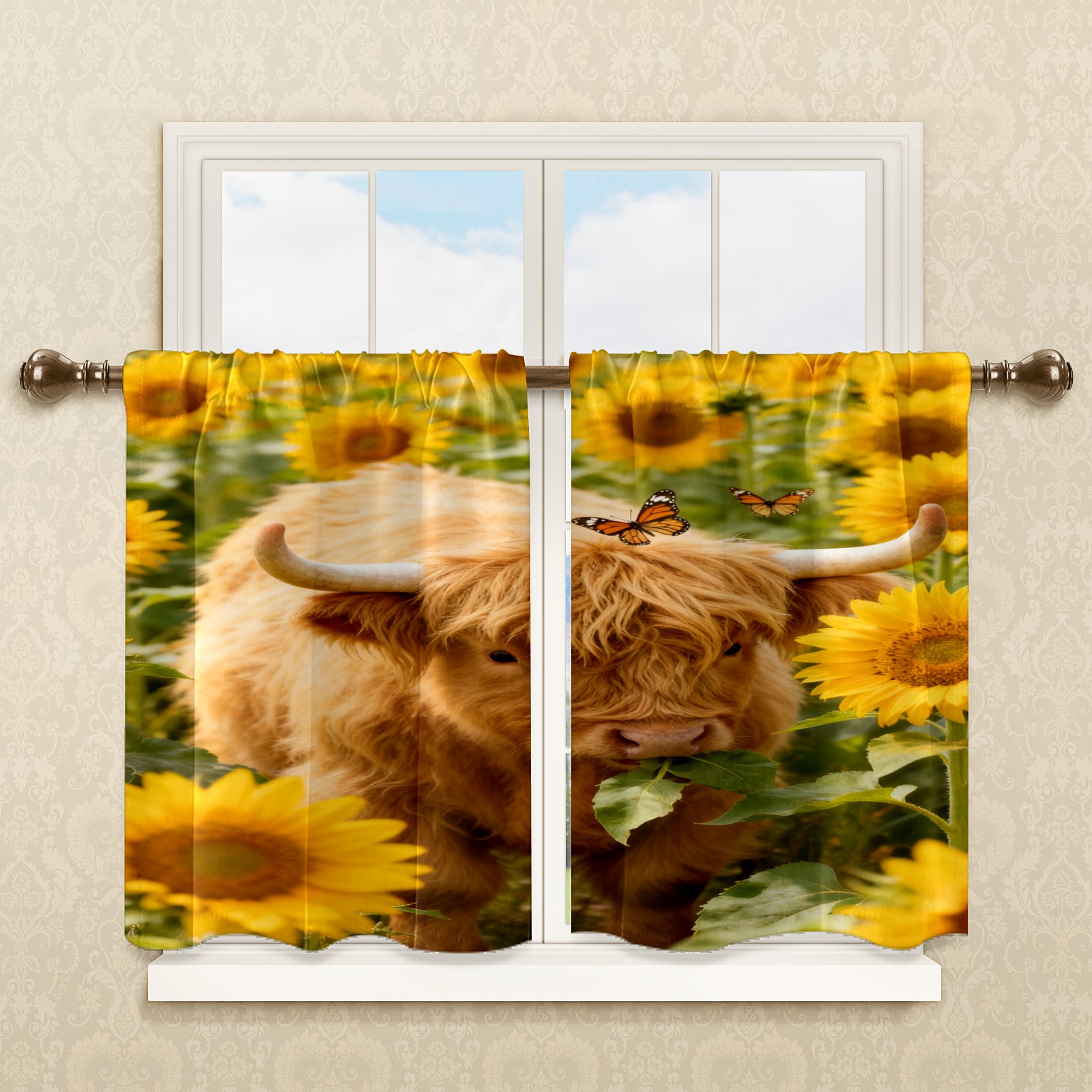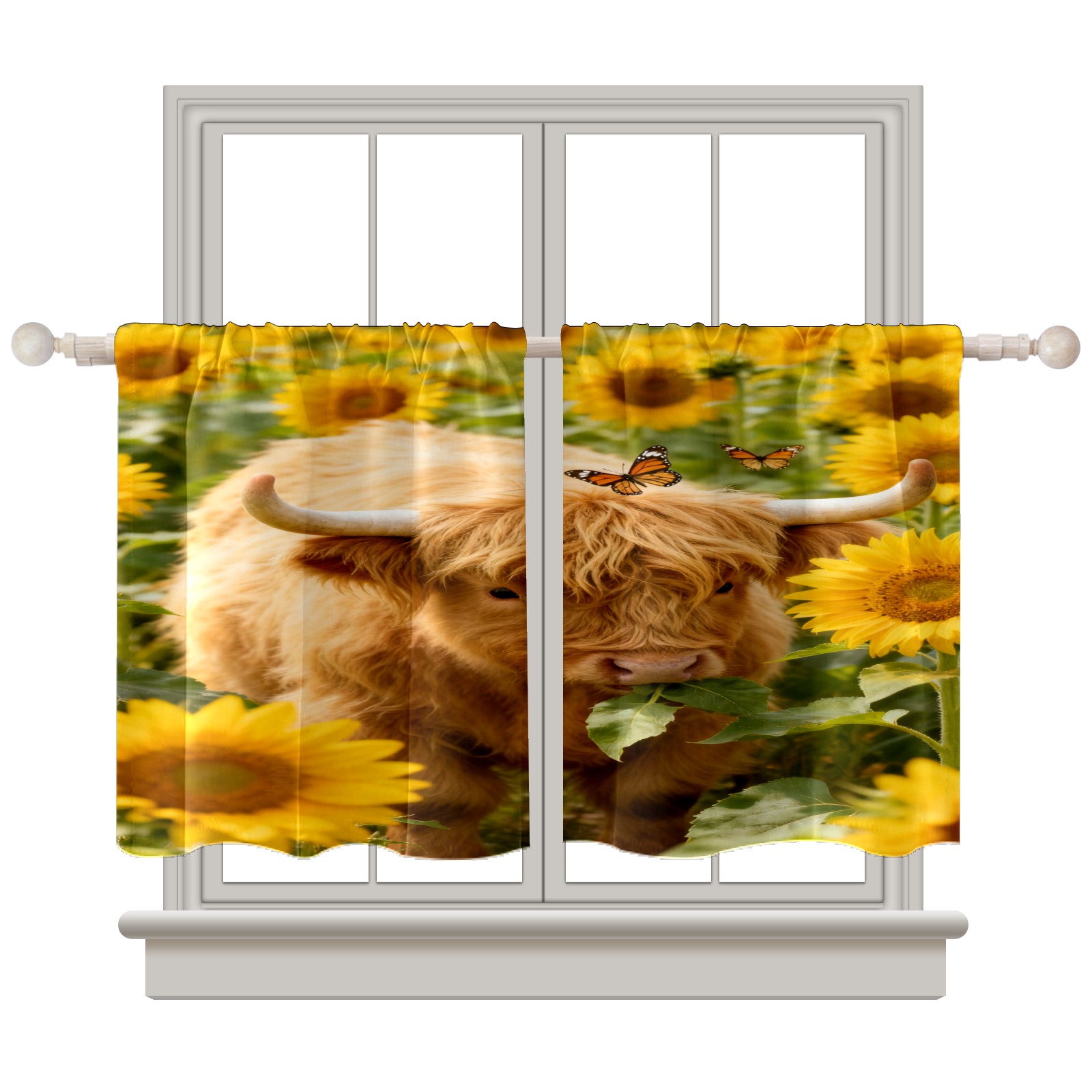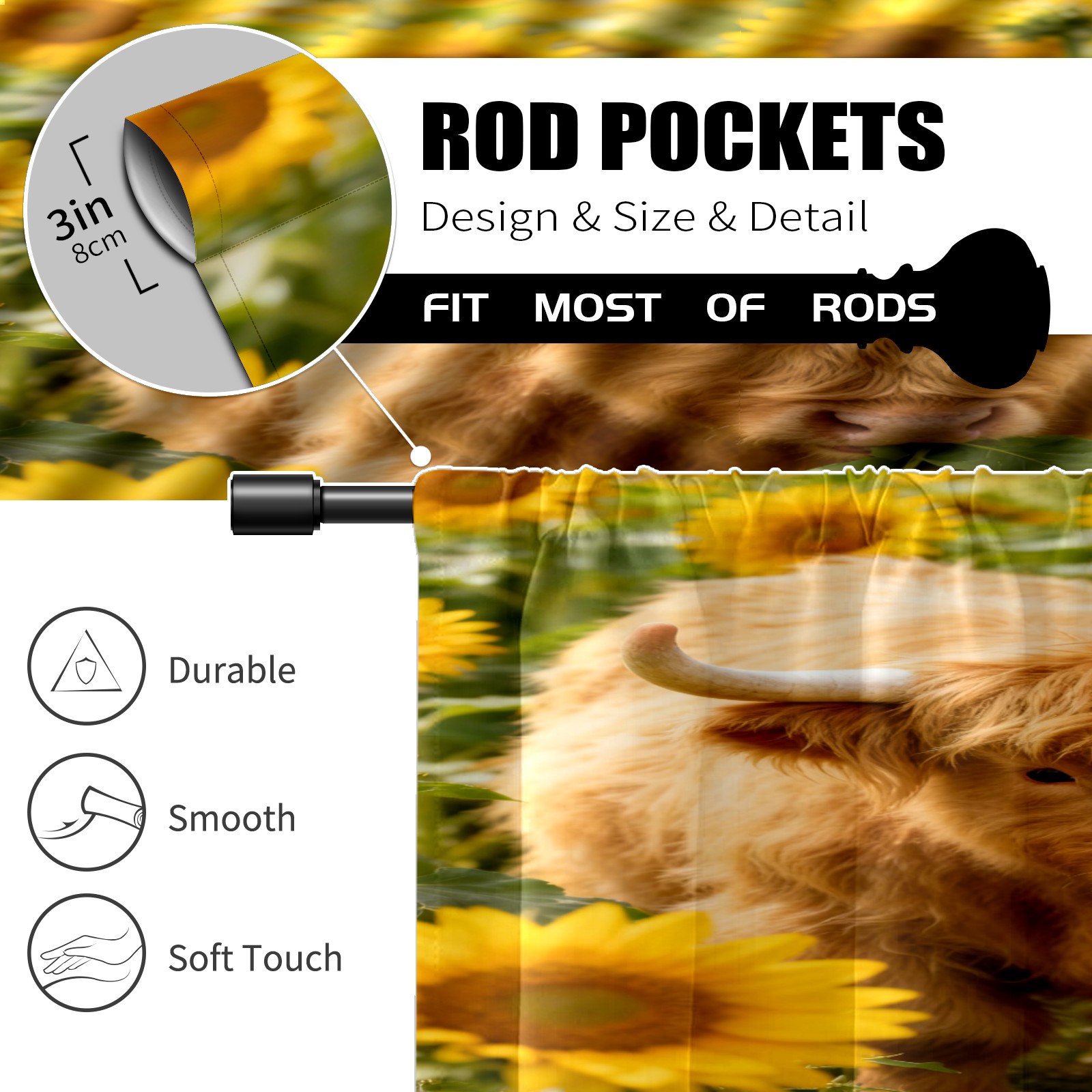 Шторы-панно для дома, декоративные драпировки для гостиной и спальни, легкие и прочные, Flower Field Highland Cattle