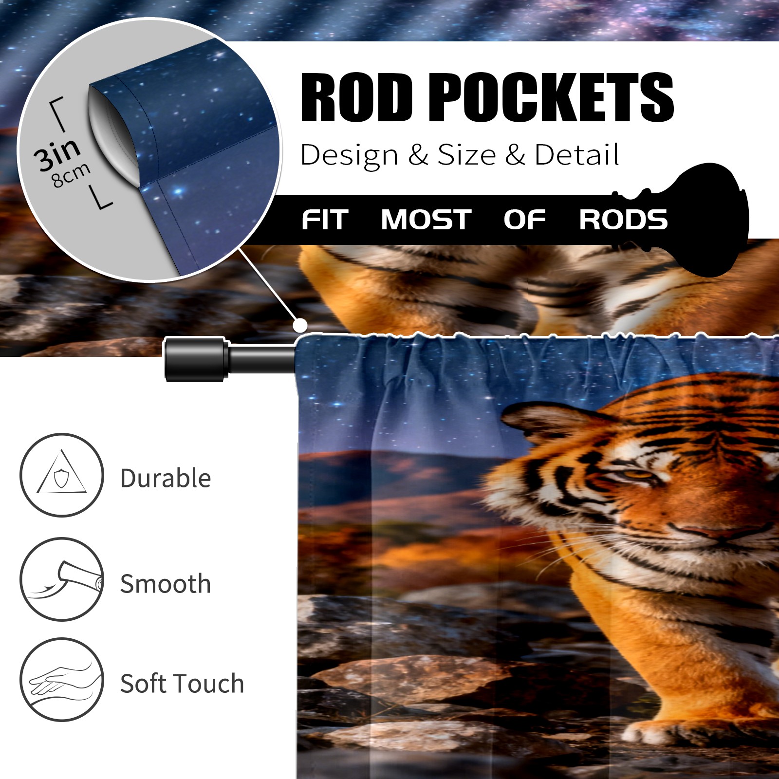 Шторы-панно для дома, декоративные драпировки для гостиной и спальни, легкие и прочные, Starry Sky Tiger 1