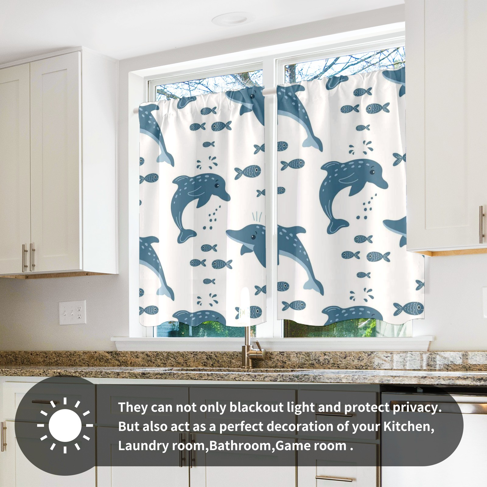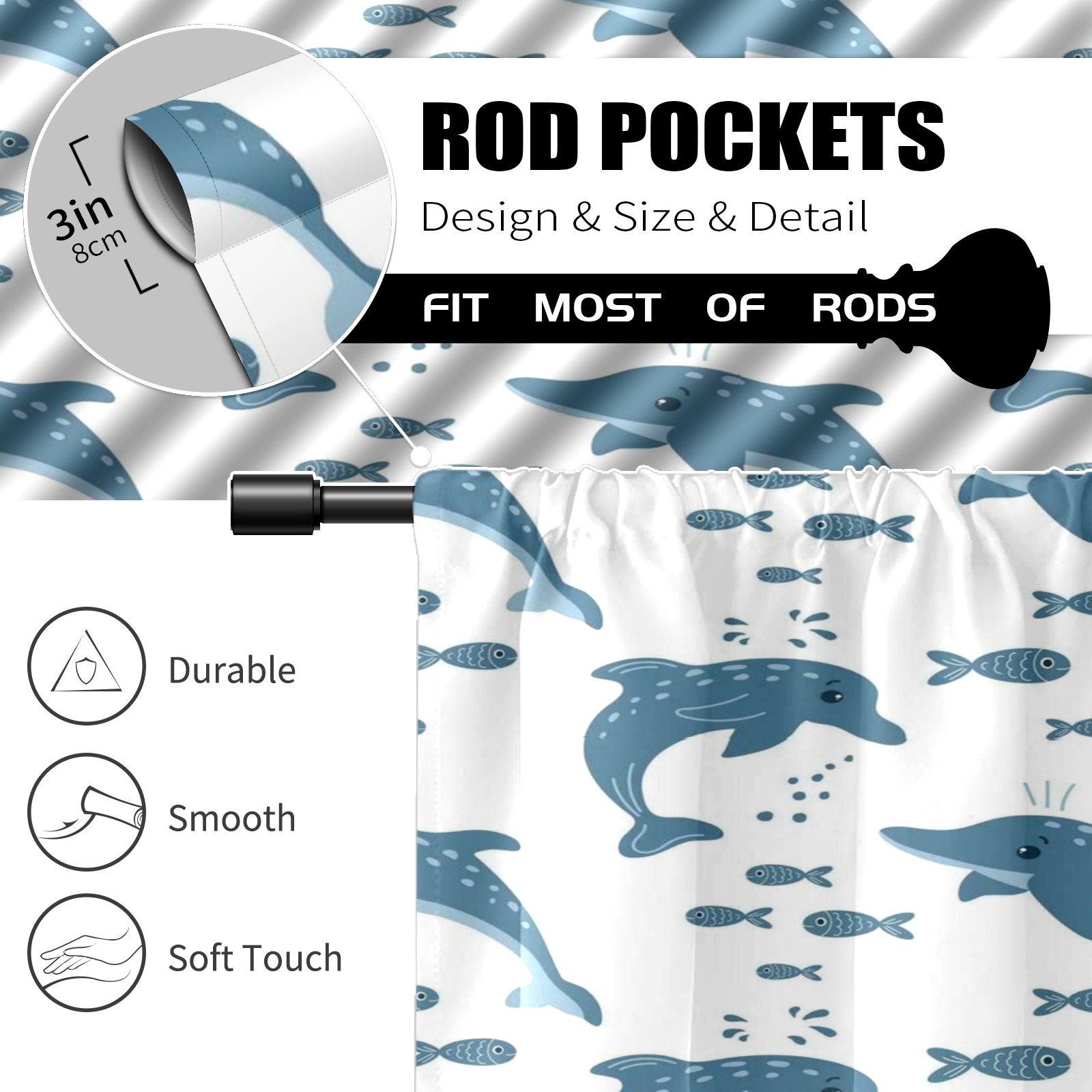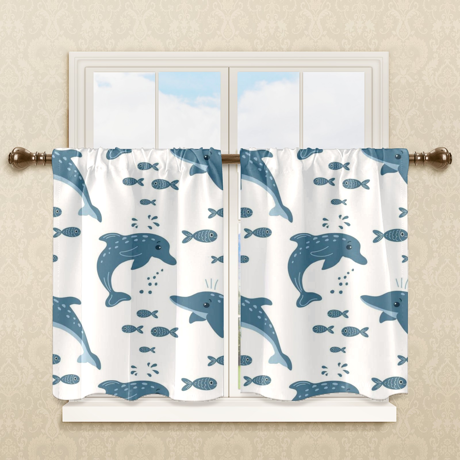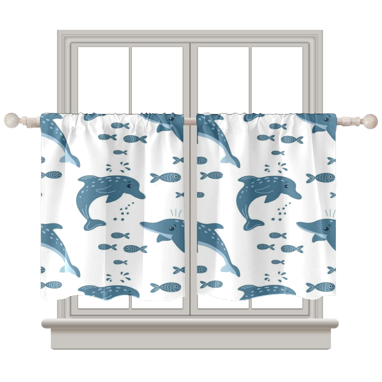 Шторы-панно для дома, декоративные драпировки для гостиной и спальни, легкие и прочные, Gray Dolphins Fish