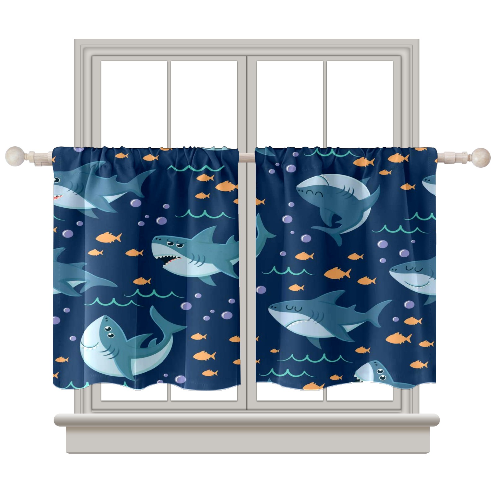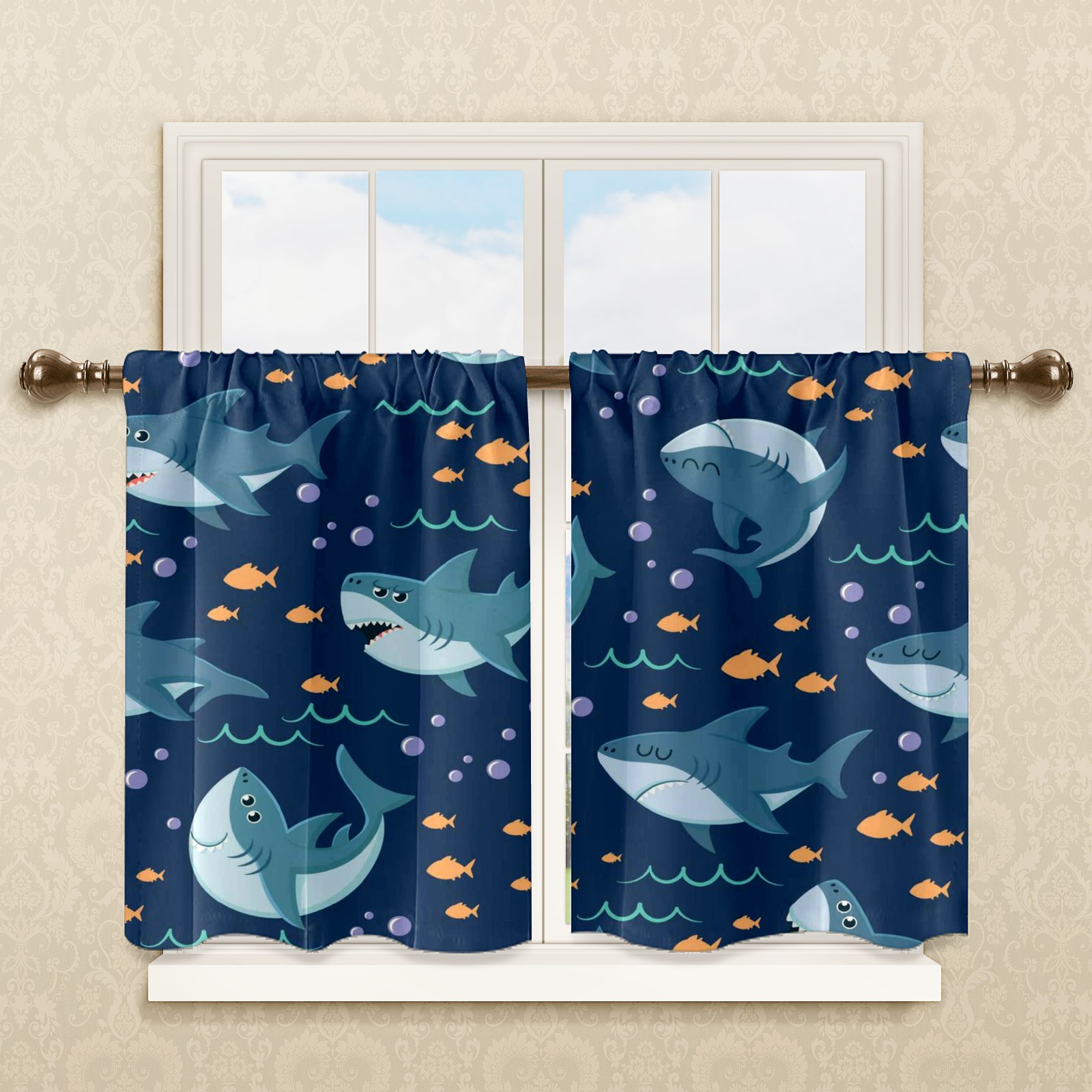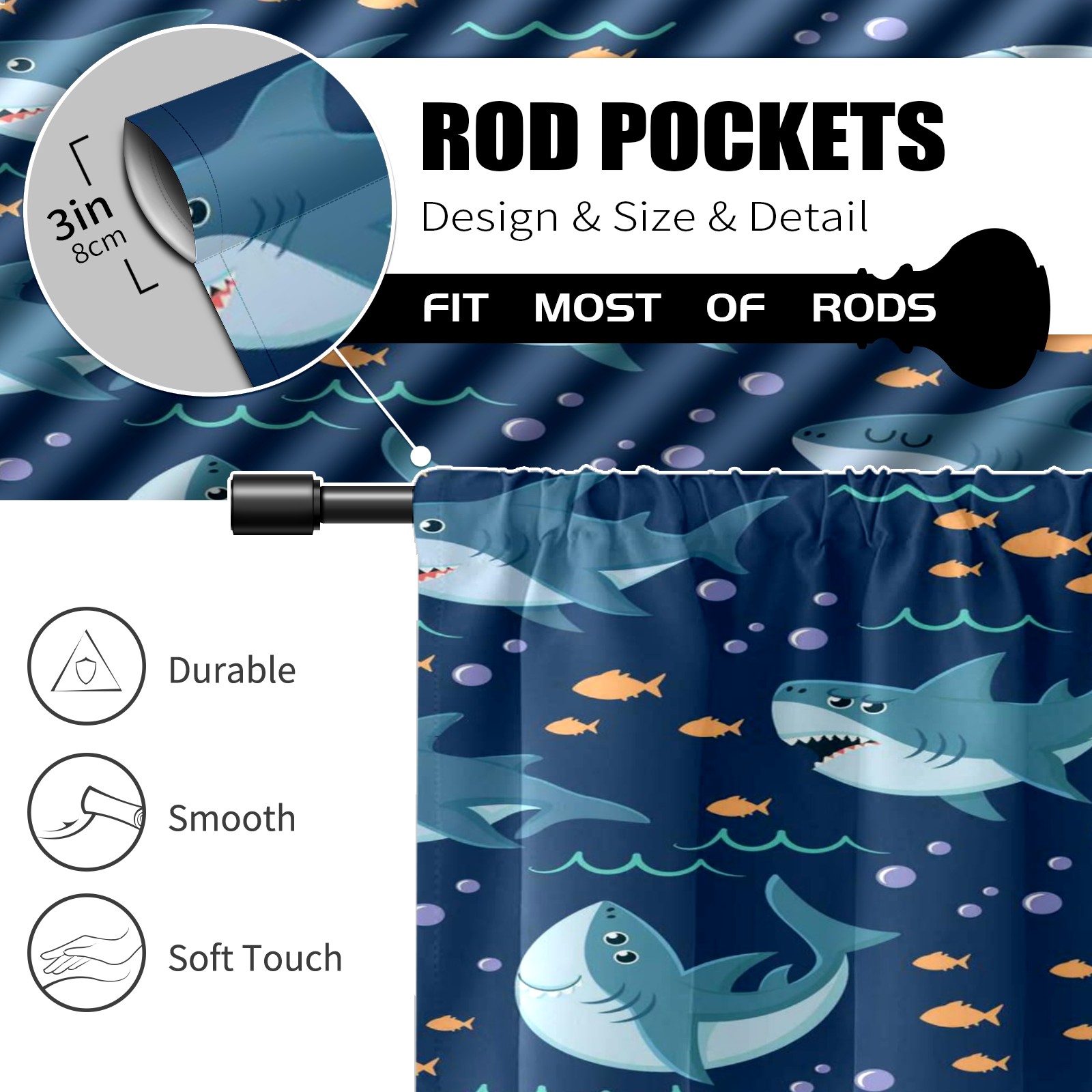 Шторы-панно для дома, декоративные драпировки для гостиной и спальни, легкие и прочные, Dark Blue Sharks Fishes