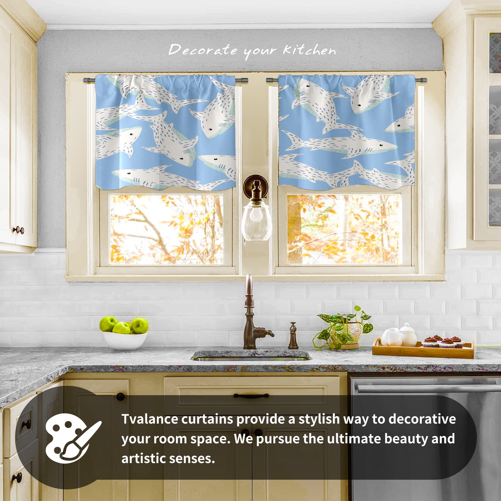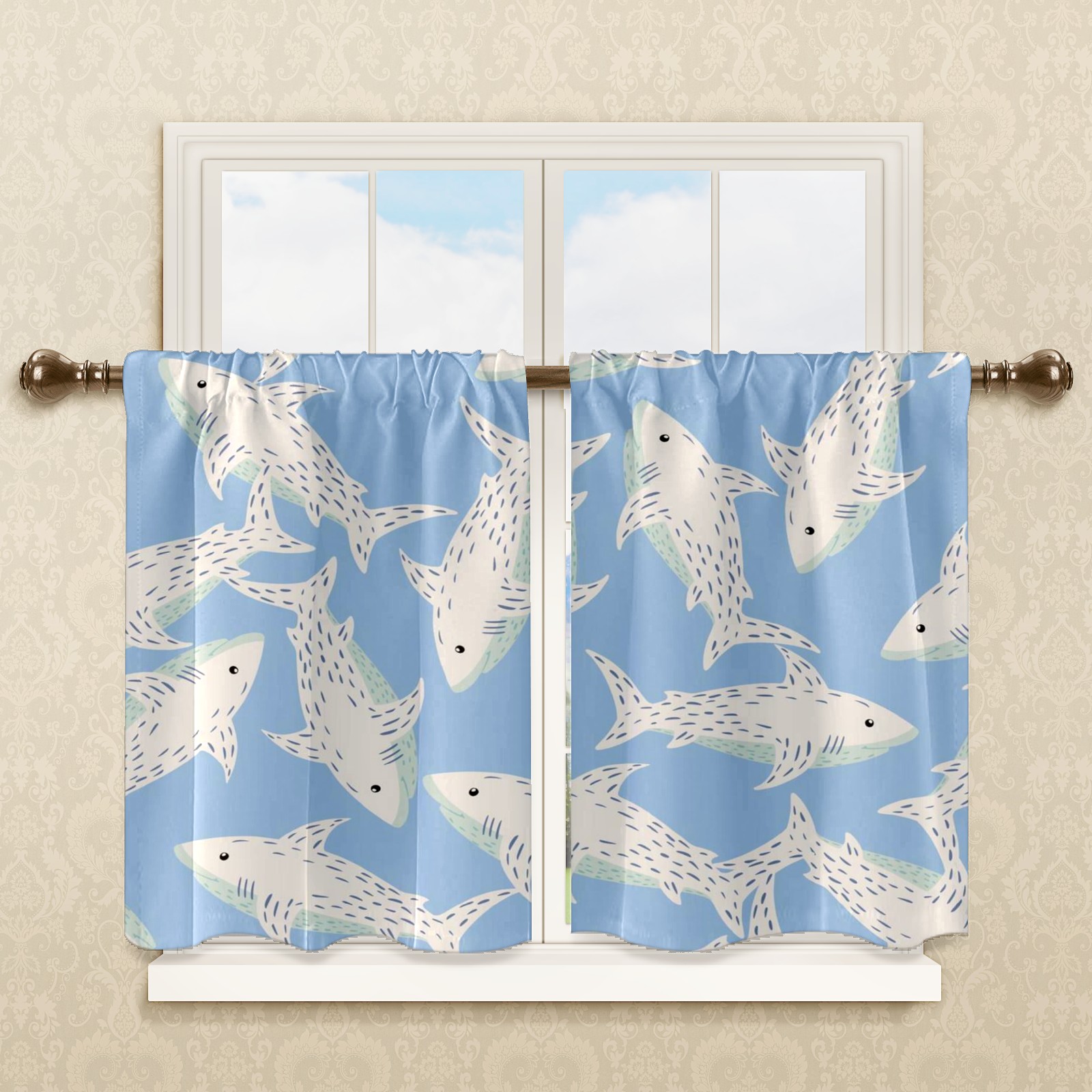 Шторы-панно для дома, декоративные драпировки для гостиной и спальни, легкие и прочные, Blue White Sharks