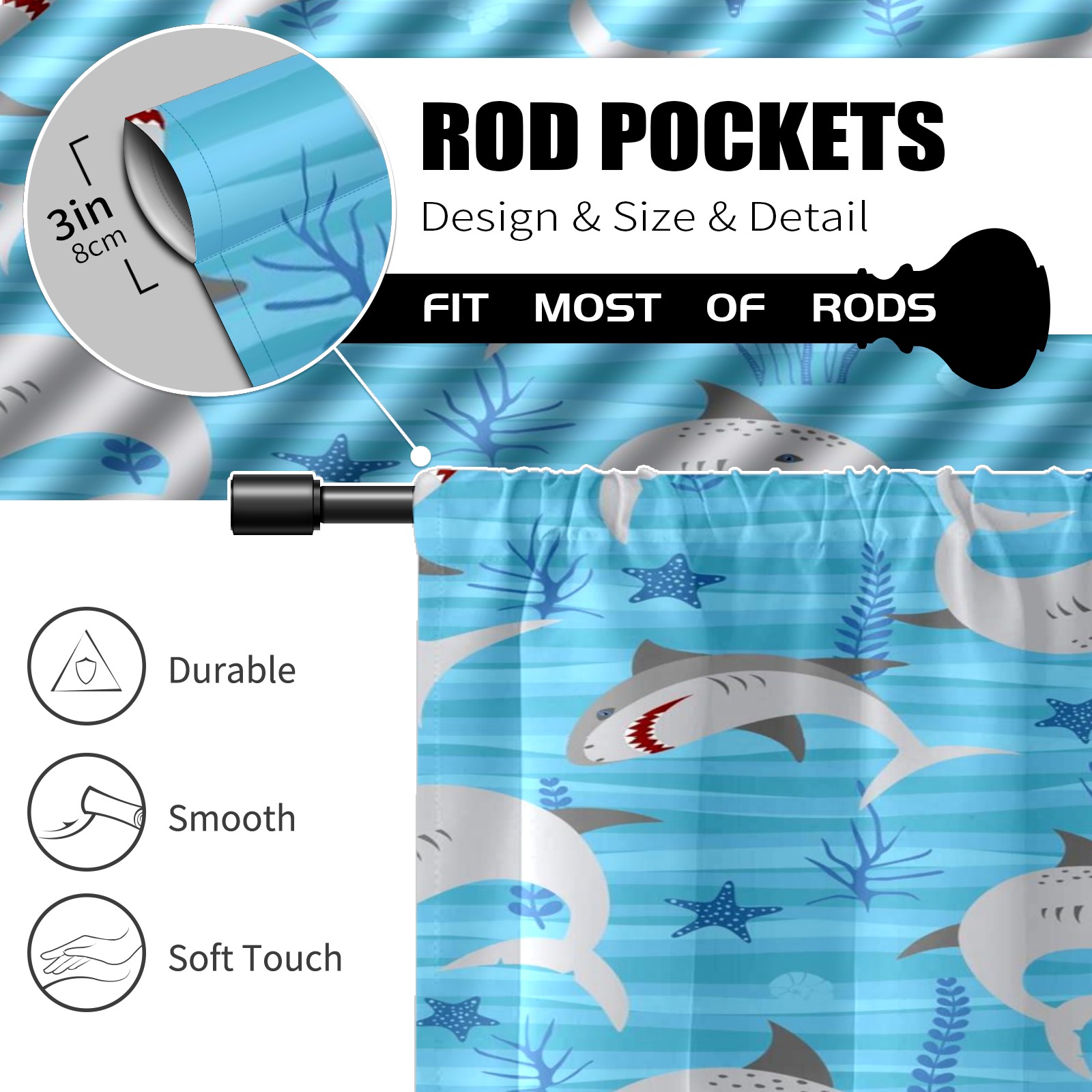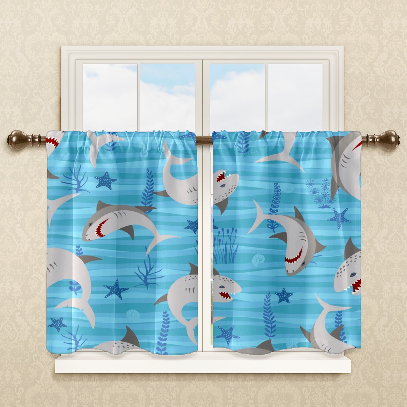 Шторы-панно для дома, декоративные драпировки для гостиной и спальни, легкие и прочные, Blue Gray Sharks