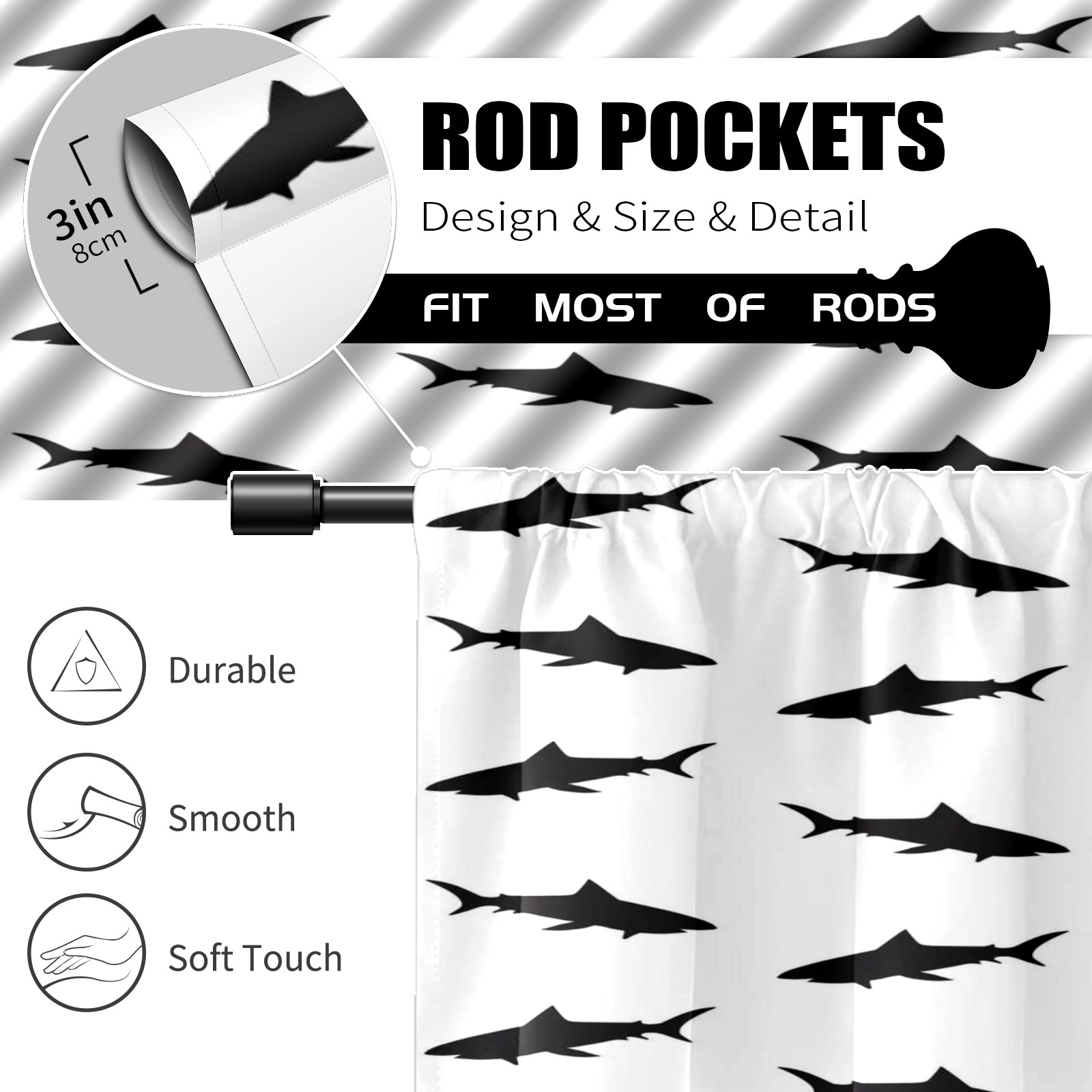 Шторы-панно для дома, декоративные драпировки для гостиной и спальни, легкие и прочные, Black Sharks