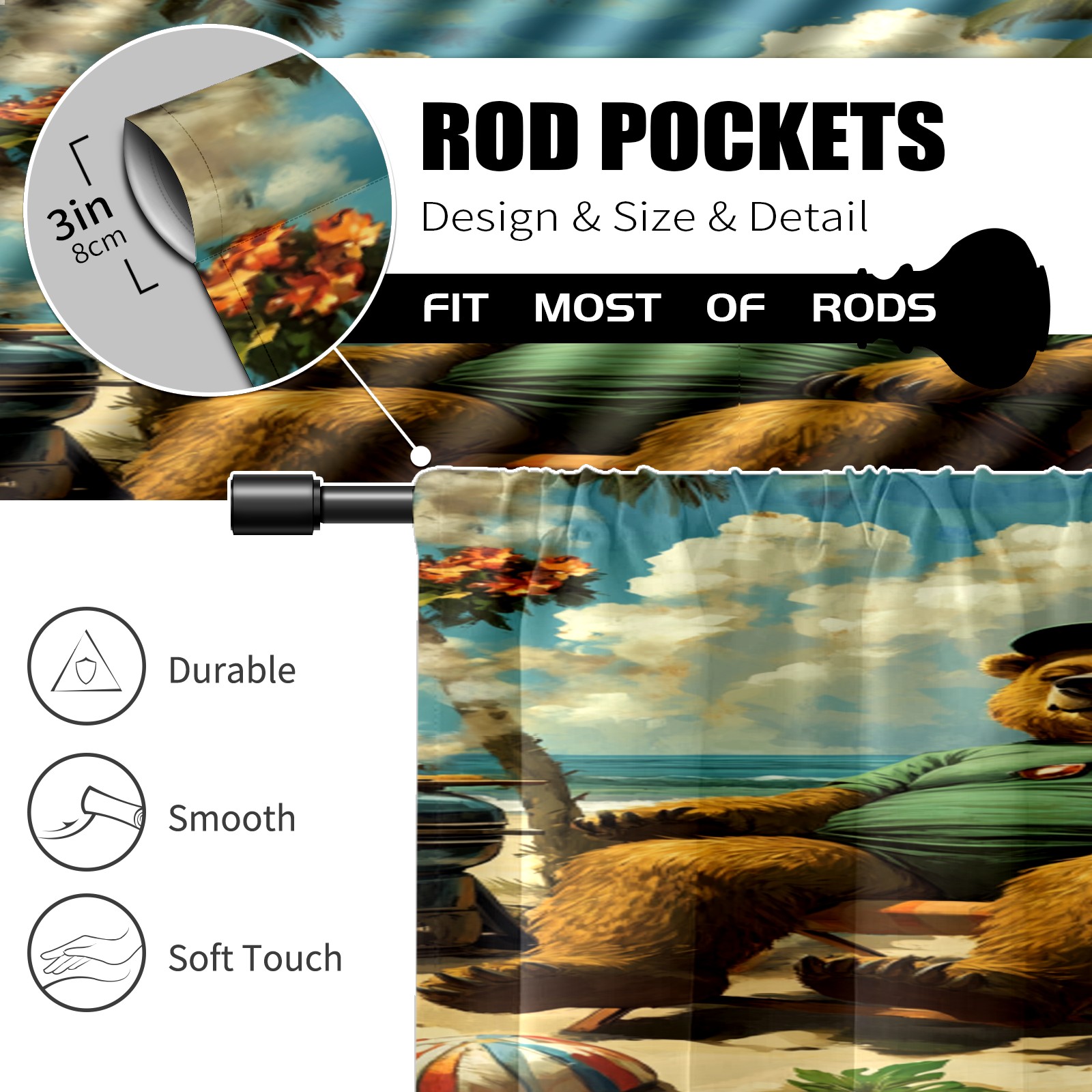 Шторы-панно для дома, декоративные драпировки для гостиной и спальни, легкие и прочные, Resting Bear Pattern